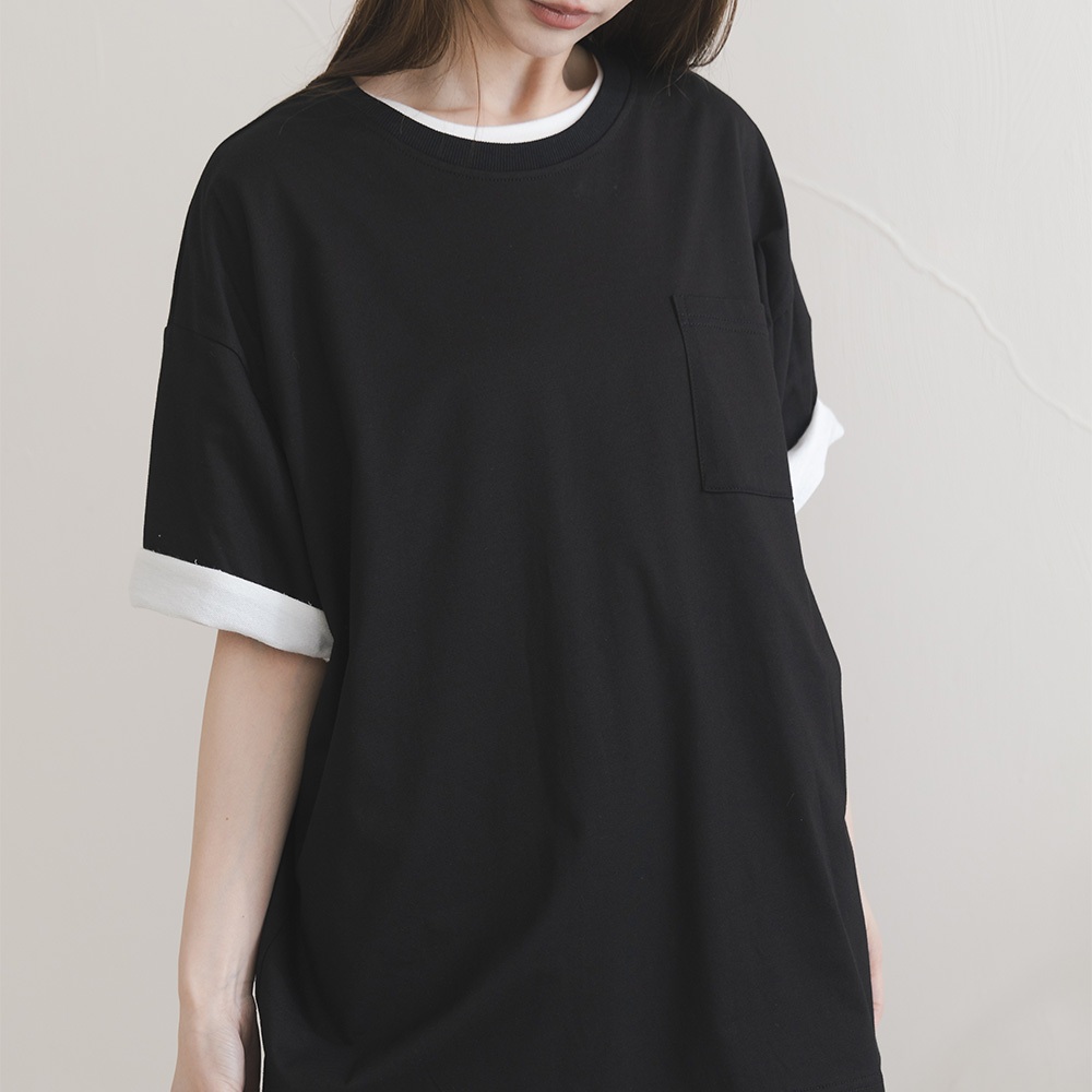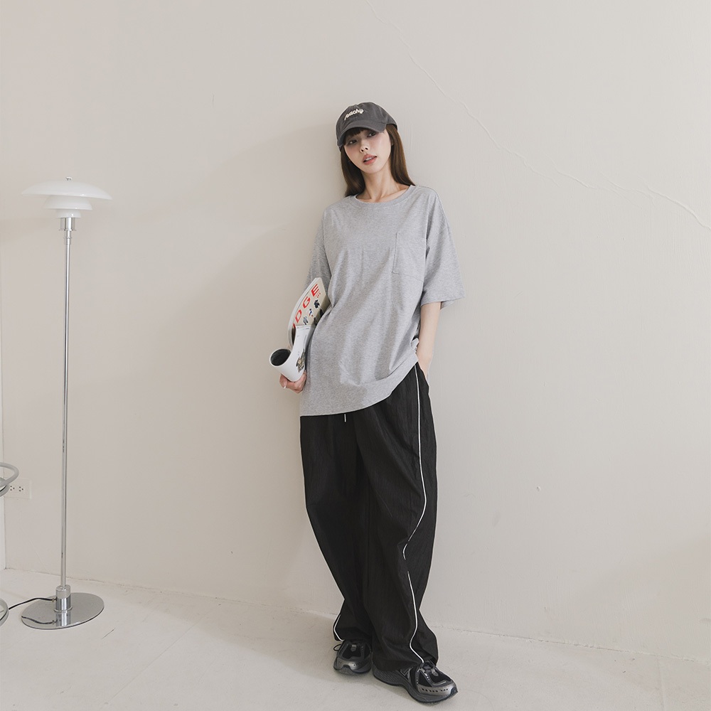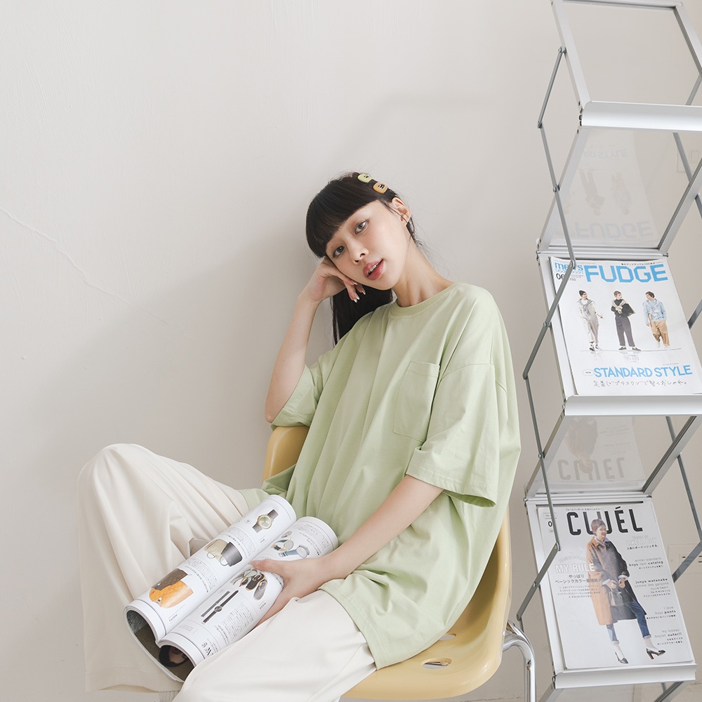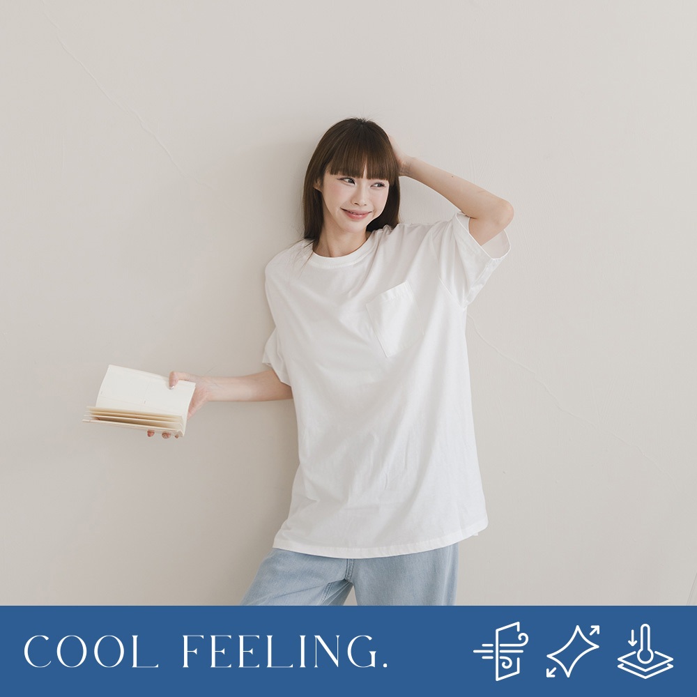 QUEENSHOP_ S 女裝 短袖 涼感素面前口袋落肩短袖上衣 五色售 現+預 【01190228】黑|白|綠|紫|花灰T-shirtsQUEENSHOP