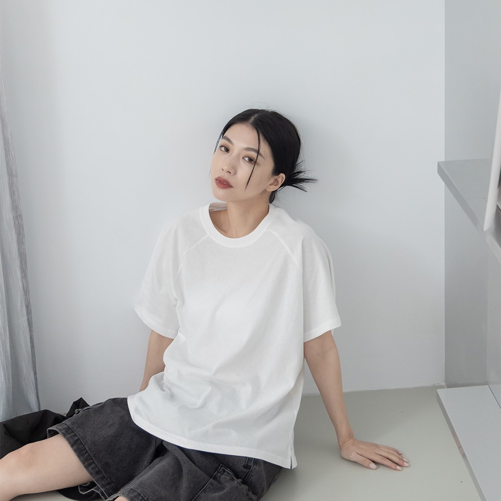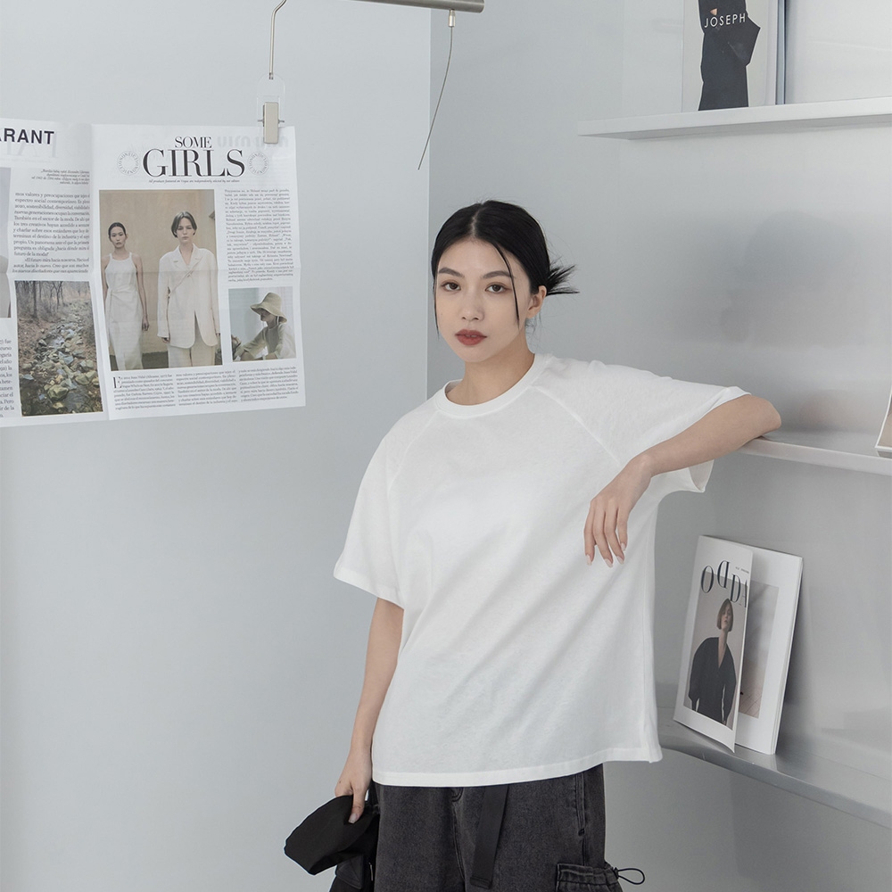 QUEENSHOP_ S 女裝 短袖 基礎素面插肩袖寬版短袖上衣 三色售 現+預 【01190205】黑|灰|白T-shirtsQUEENSHOP