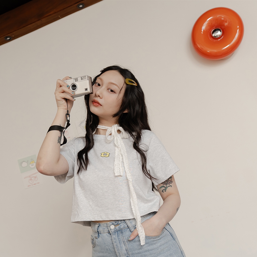 QUEENSHOP_ S 女裝 聯名 Second Morning 可愛繡圖短版上衣 三色售 現+預 【01190273黑|灰|米白T-shirtsQUEENSHOP