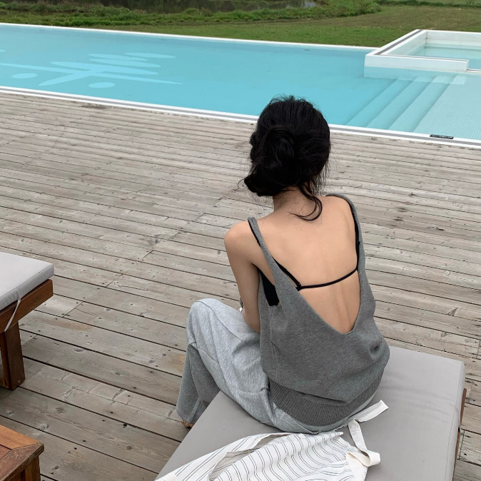 【ohi】露背針織小吊帶背心 寬鬆上衣 性感美背 女裝 女生 t恤女 無袖針織衫 夏天衣服 GVD5592灰色|粉色|黑色OthersOHI衣著