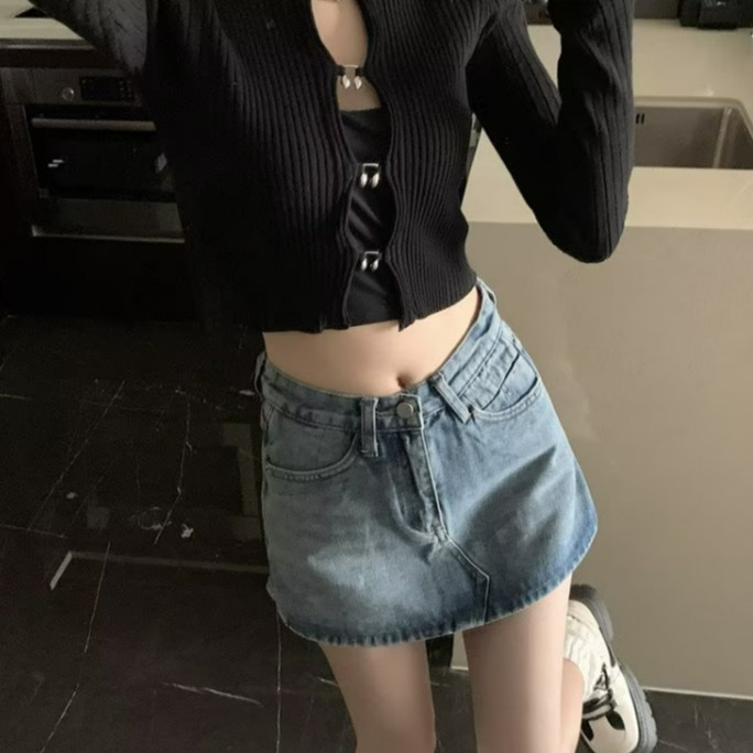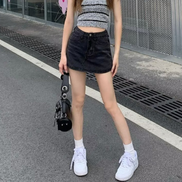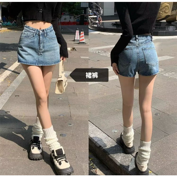 【ohi】裙褲 牛仔短褲 短褲裙 高腰 前裙後褲 内襯 a字裙裤 高腰短裙 女短褲牛仔 褲子女生(XGJL142)灰色,S|灰色,XL|藍色,S|藍色,M|藍色,L|藍色,XL|灰色,M|灰色,L|灰色,2XL|藍色,2XLSkortsOHI衣著