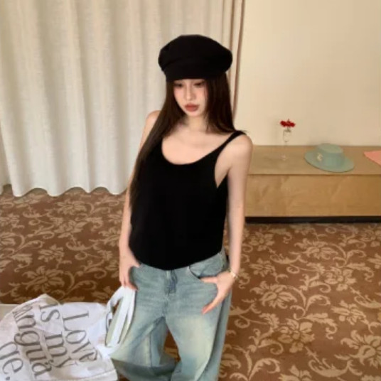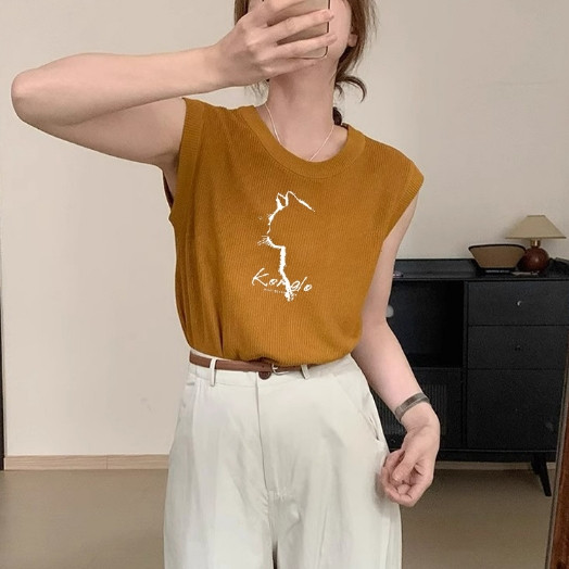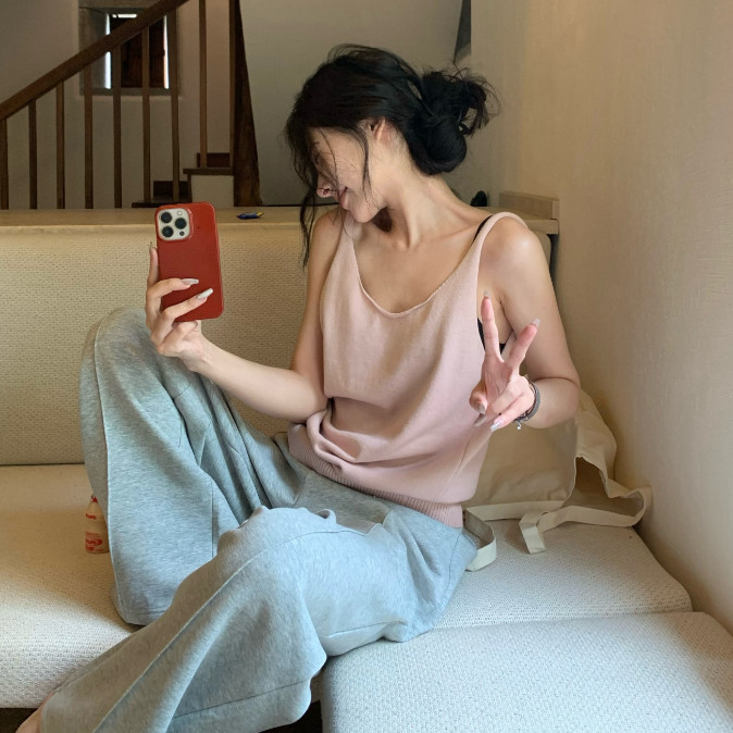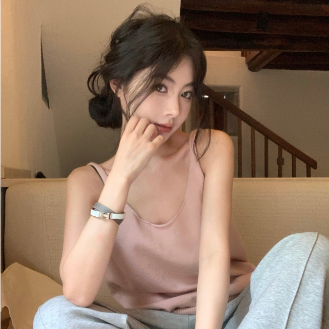 【ohi】無袖背心 冰絲針織衫正肩上衣 女生顯瘦百搭 吊帶背心 背心小可愛 女裝 背心女 女裝 GVD5767綠色,均碼-F(40-65KG可穿)|南瓜色,均碼-F(40-65KG可穿)Tanks & CamisolesOHI衣著