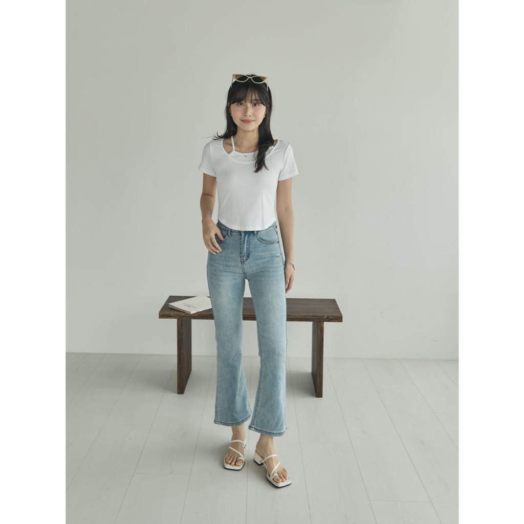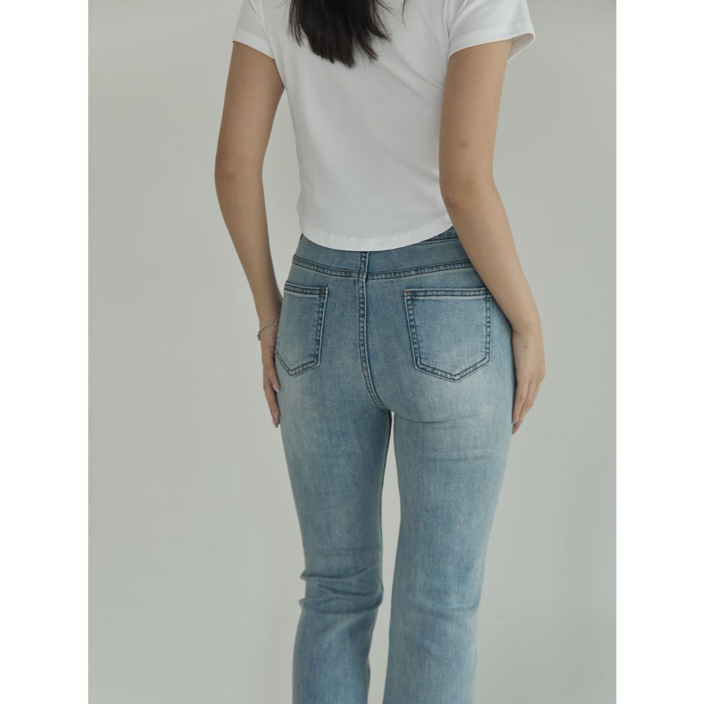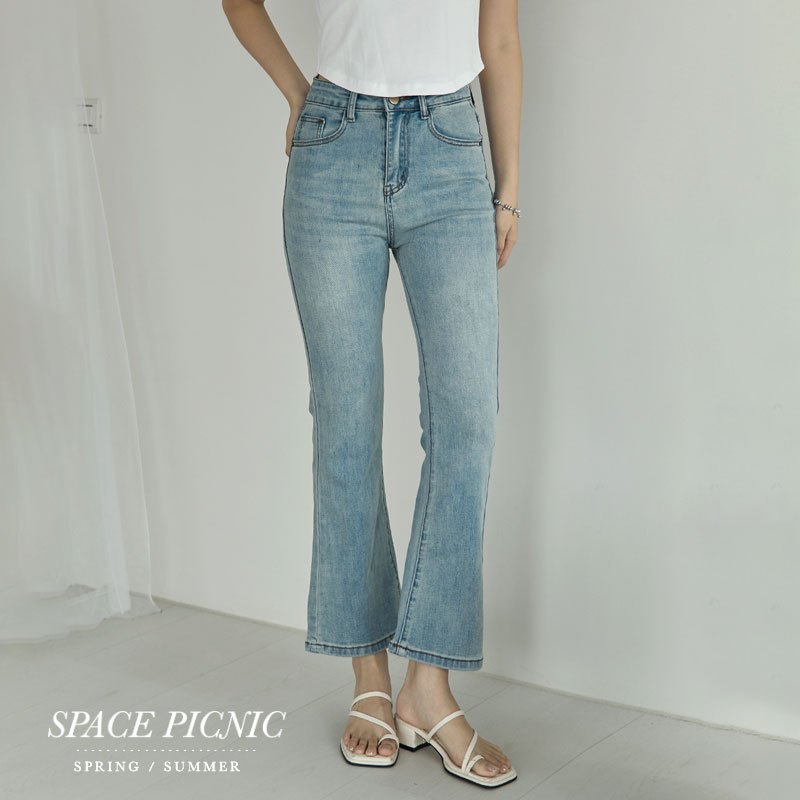 Space Picnic|彈性牛仔八分喇叭褲-1色【2506312】淺藍,S|淺藍,M|淺藍,L|淺藍,XLSpace Picnic