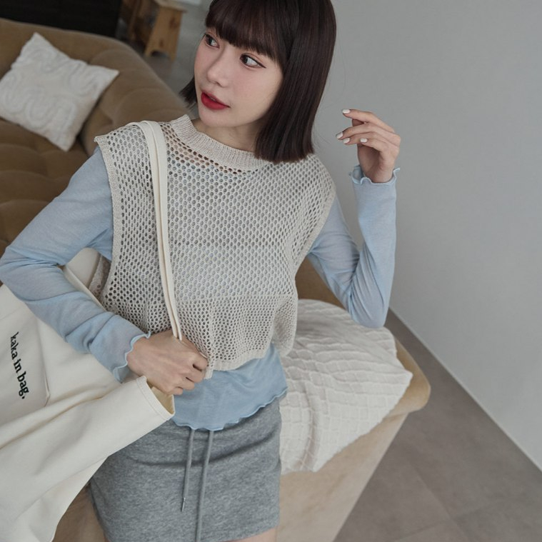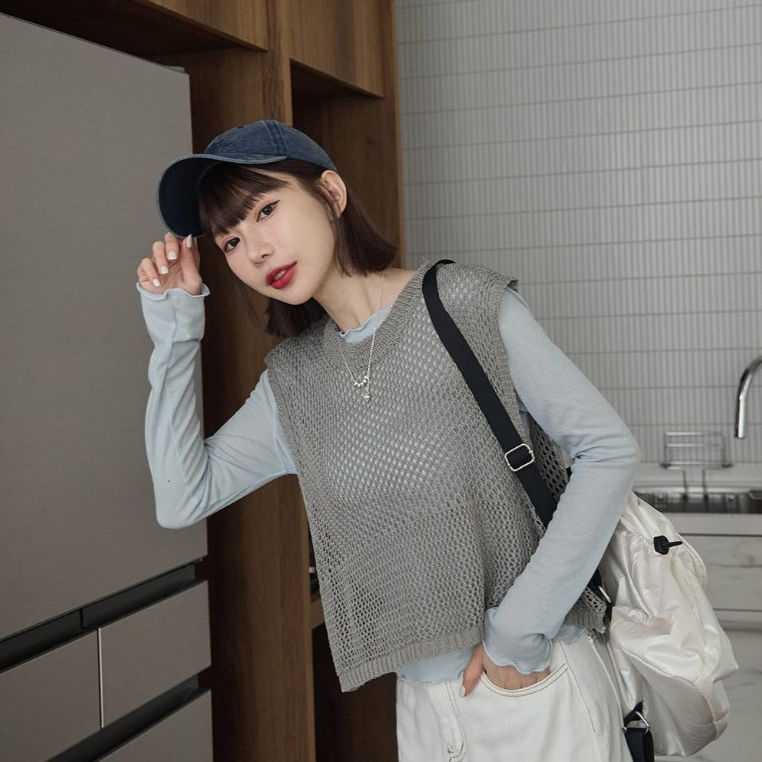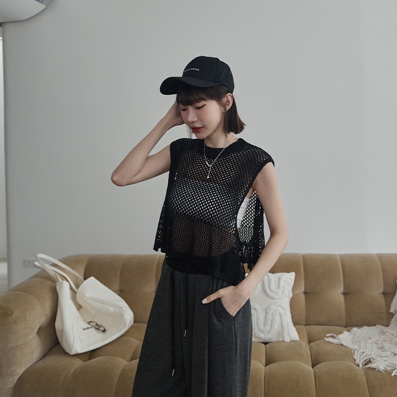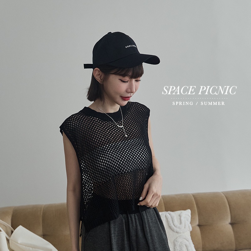 Space Picnic|洞洞感開岔背心-3色【2501165】黑|麻灰|燕麥Tanks & CamisolesSpace Picnic