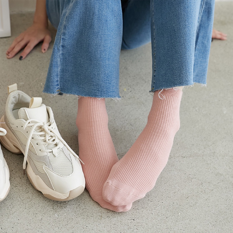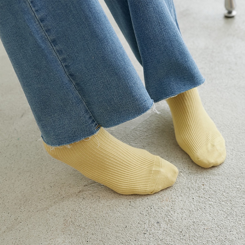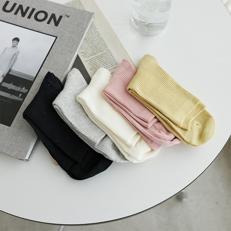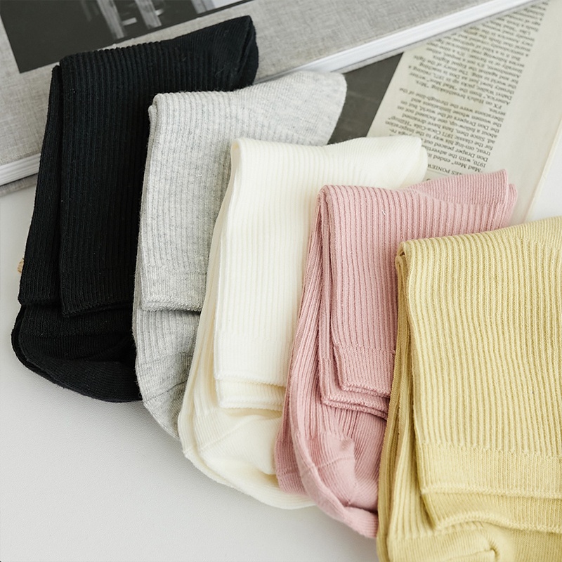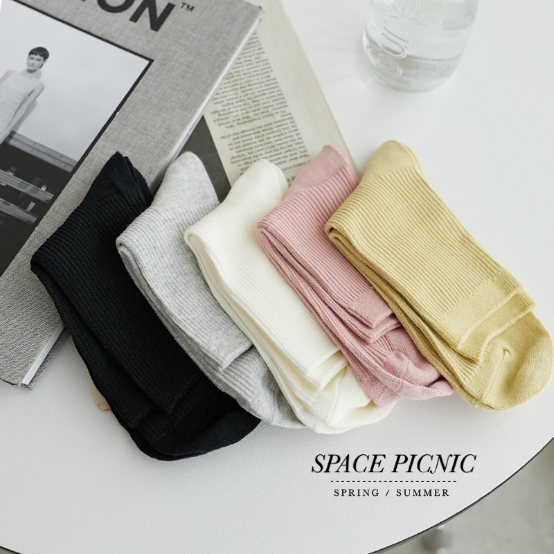 Space Picnic|坑條中筒襪-5色【C22042011】黑|黃|淺灰|米白|粉SocksSpace Picnic