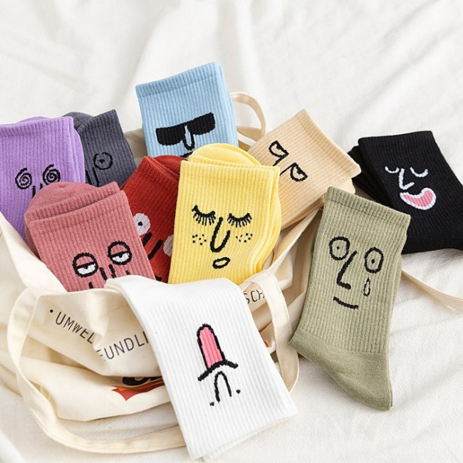 【ohi】『熱銷中』搞怪表情長襪 中筒襪 韓妞必備 男襪女襪 棉襪 韓襪可愛 交換禮物 (ZH068)橘紅|米黃|白色|黃色|淺藍|草綠|豆沙|紫色|灰色|黑色SocksOHI衣著