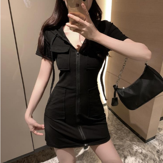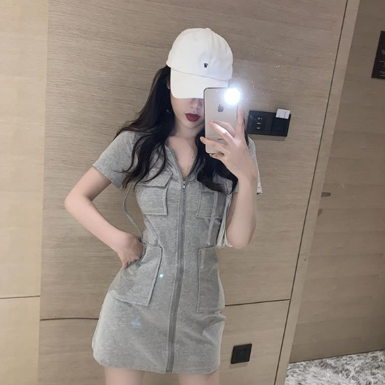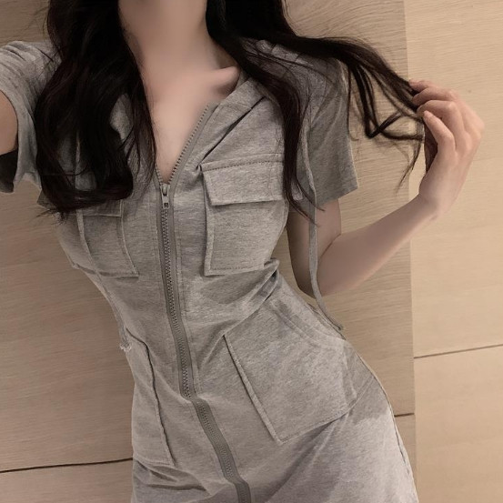 【ohi】連帽拉鍊短袖連衣裙 新款韓版韓系女裝 裙子 女休閒裙子 修身顯瘦 可甜可鹽 女裝 連衣裙 GKN906灰色,S|灰色,M|灰色,L|灰色,XL|灰色,2XL|黑色,S|黑色,M|黑色,L|黑色,XL|黑色,2XL|白色,S|白色,M|白色,L|白色,XL|白色,2XLOHI衣著
