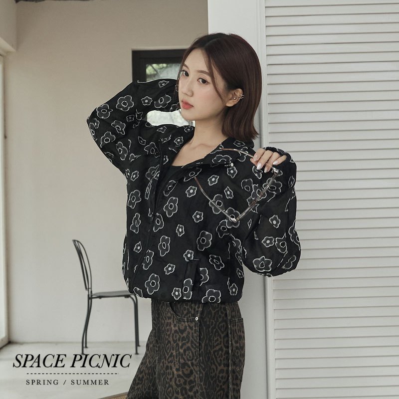 Space Picnic|微透花朵立領外套-2色【2507119】白|黑OthersSpace Picnic