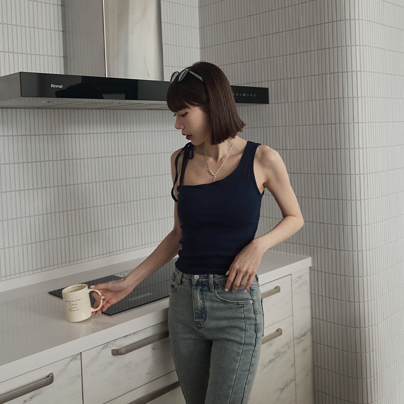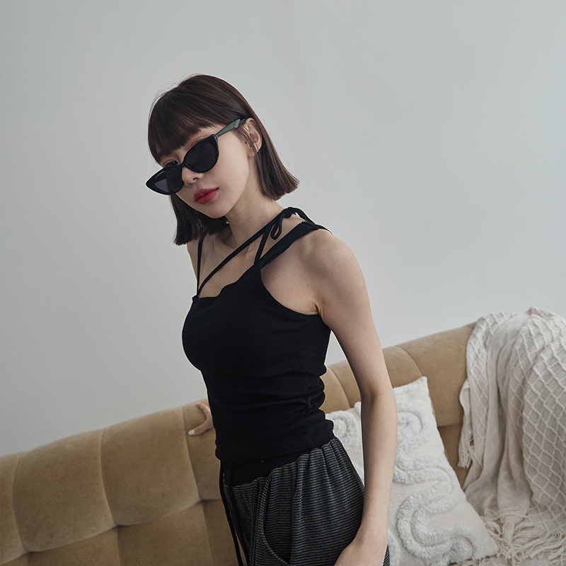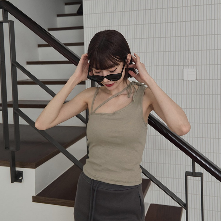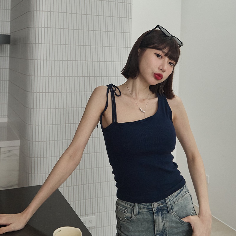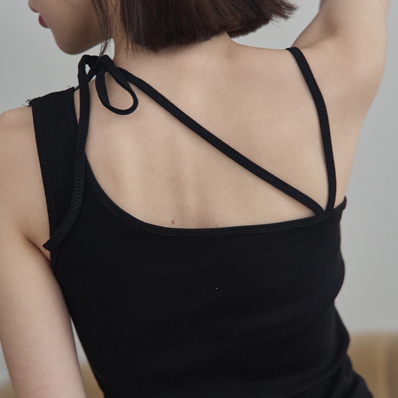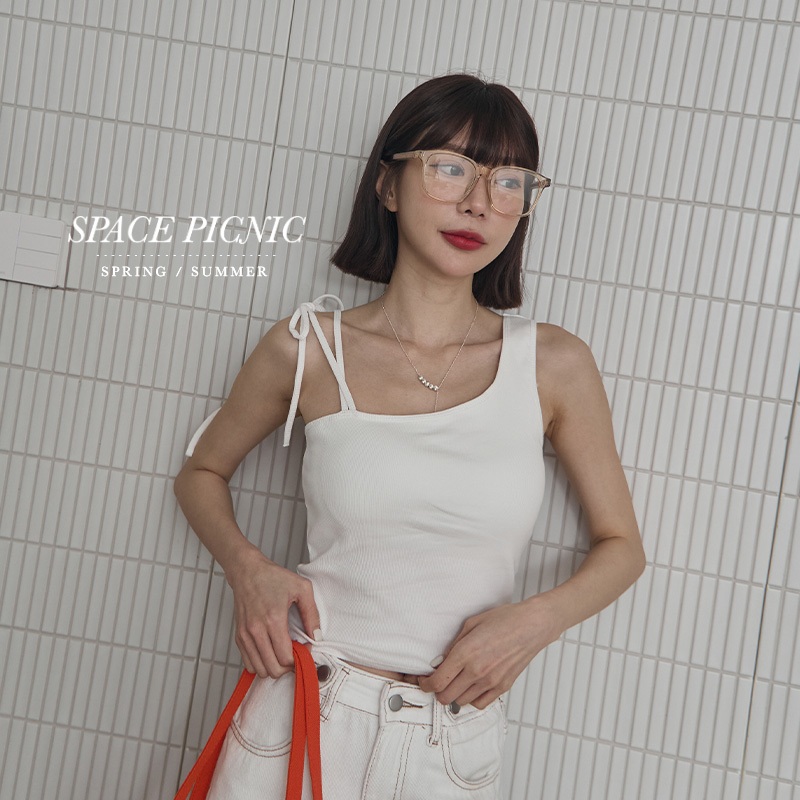 Space Picnic|綁帶不對稱胸墊背心-4色【2501168】白|黑|灰綠|深藍Tanks & CamisolesSpace Picnic