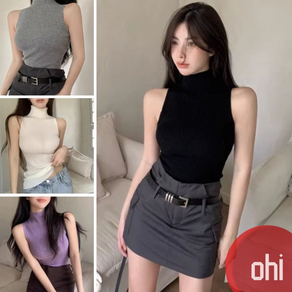 【ohi】辣妹高領針織吊帶背心 內搭上衣 無袖上衣 女生上衣 針織上衣 女裝 顯瘦上衣 韓版上衣 GWHD76黑色,F碼(均碼40-55KG可穿)|白色,F碼(均碼40-55KG可穿)|灰色,F碼(均碼40-55KG可穿)|紫色,F碼(均碼40-55KG可穿)OthersOHI衣著