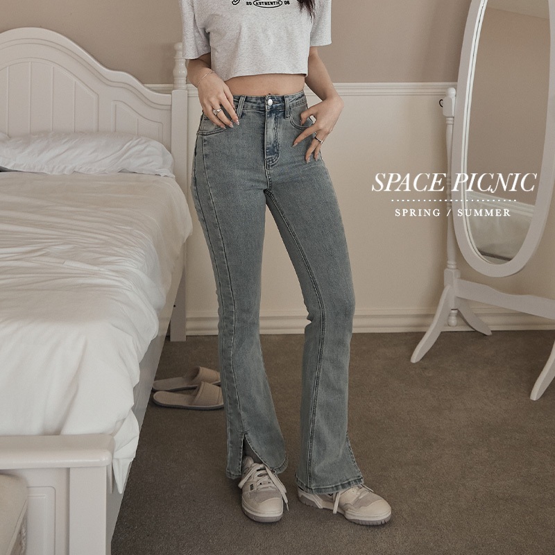 Space Picnic|側開岔牛仔小喇叭褲-2色【2502128】黑,L|黑,M|黑,S|黑,XL|淺藍,L|淺藍,M|淺藍,S|淺藍,XLSpace Picnic