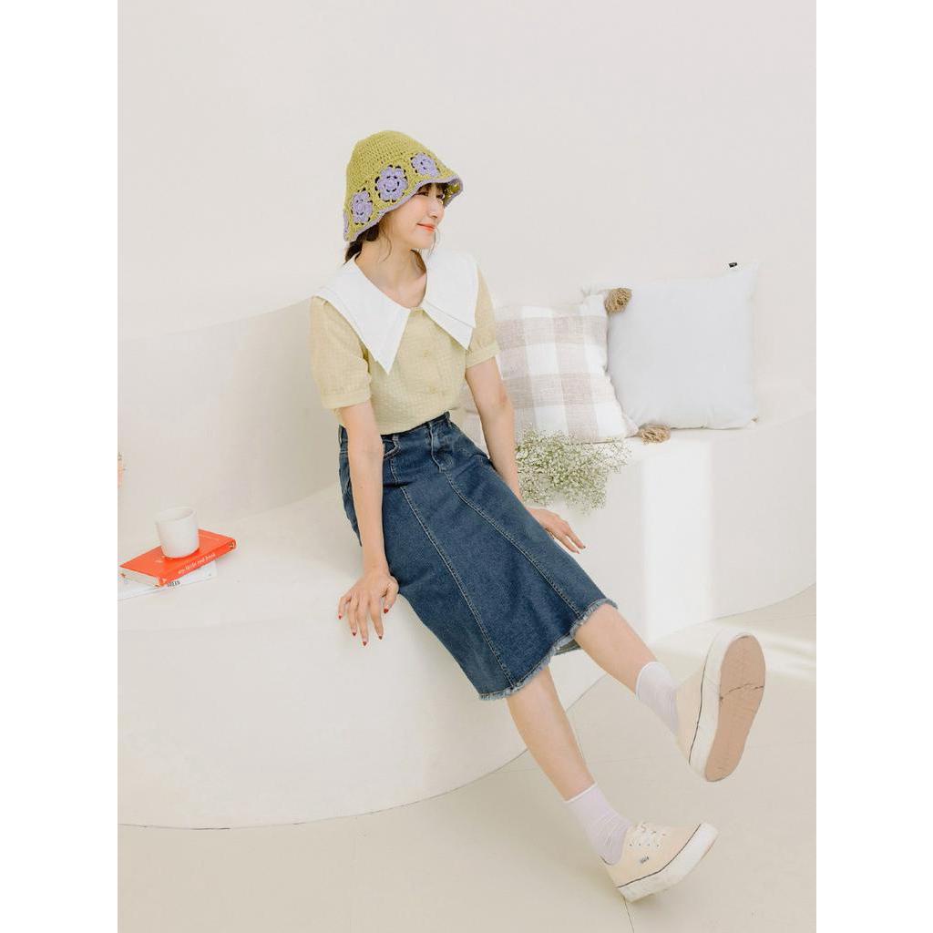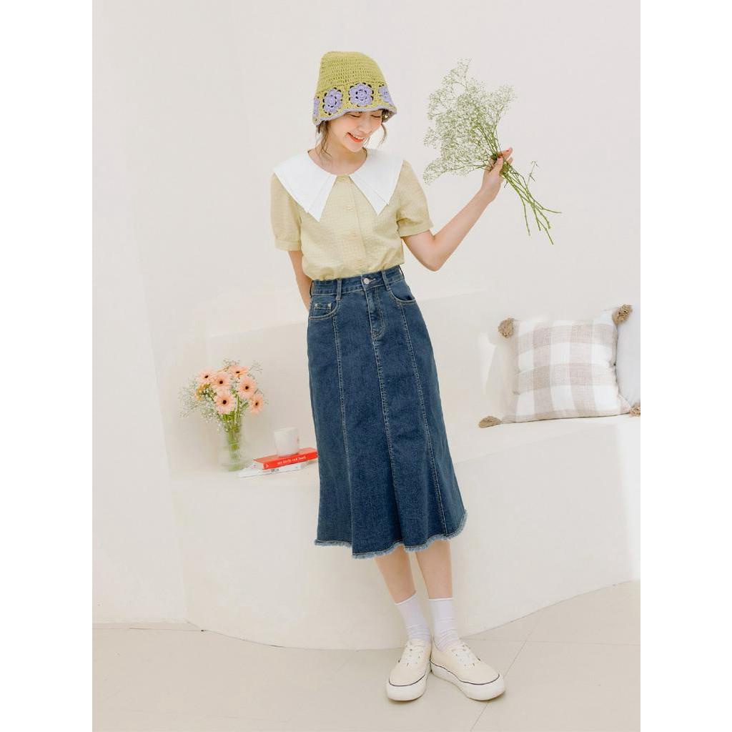 OB嚴選 開衩剪接A-Line短裙 《CA2900》現貨/女裝霧藍,S|霧藍,M|霧藍,L|霧藍,XL|橙黃,S|橙黃,M|橙黃,L|橙黃,XLOB嚴選官方旗艦店