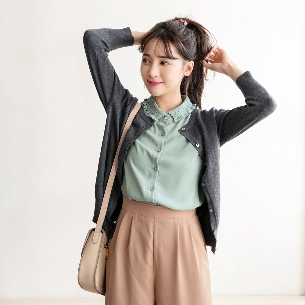 OB嚴選 多色圓領七分袖細針織罩衫/小外套 《FA1968》(深花灰/寶藍) 大尺碼/現貨/女裝