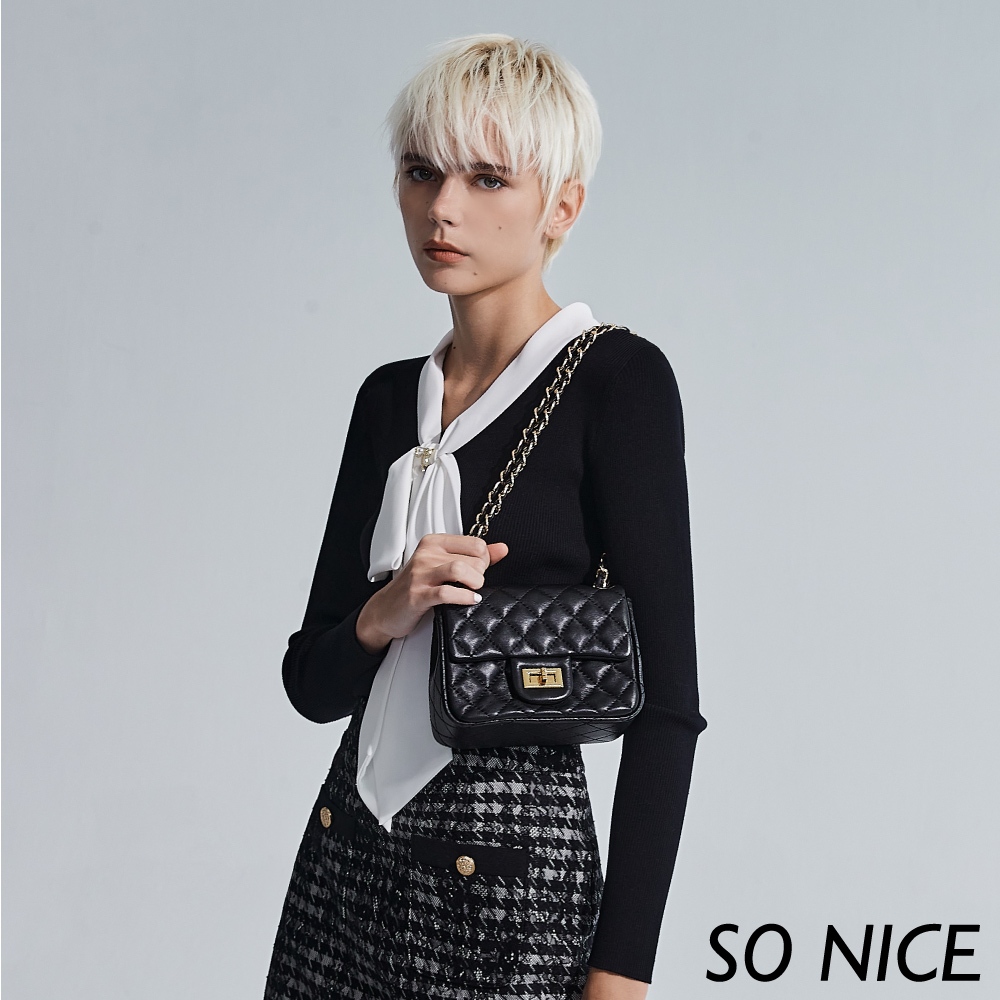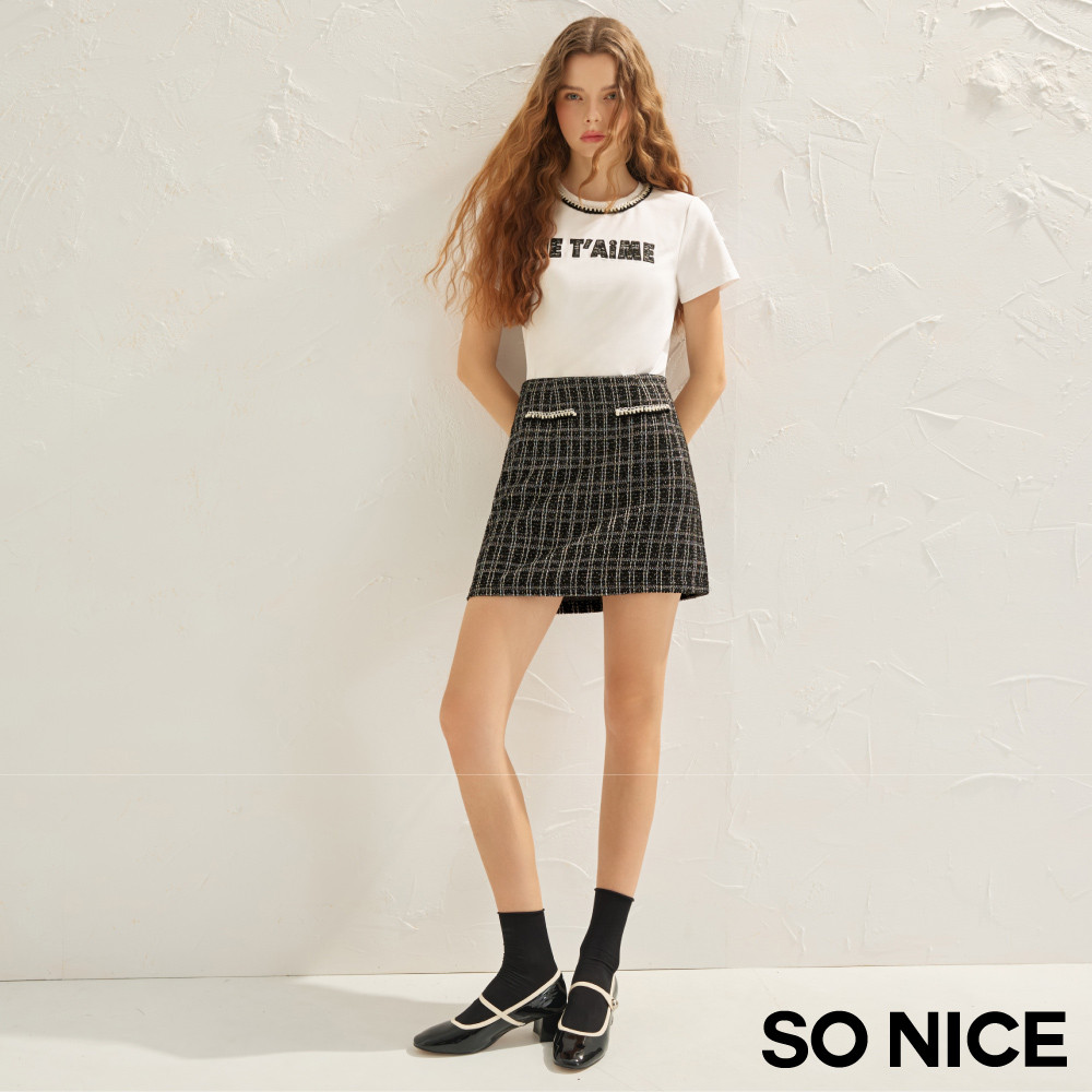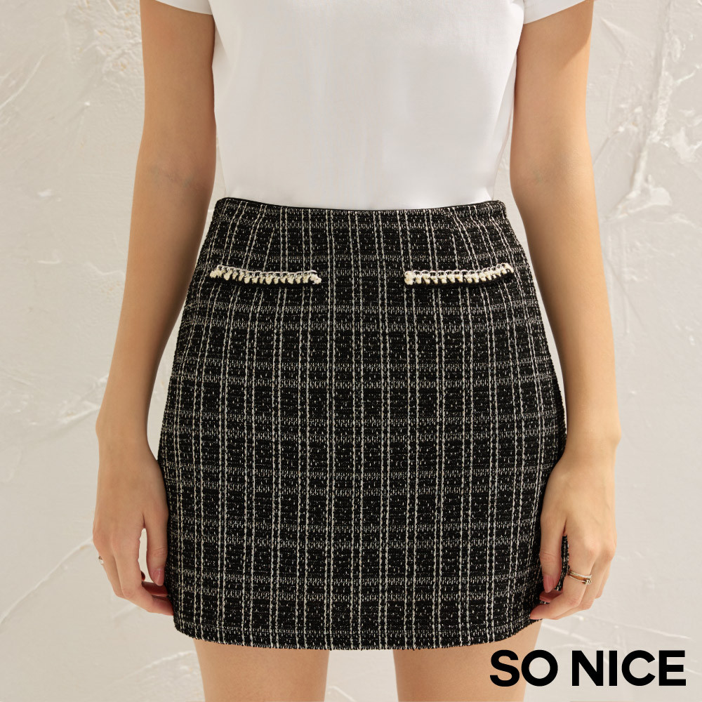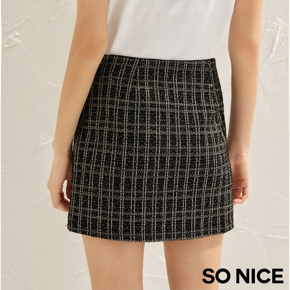 SO NICE 小香風鍊條格紋花呢短裙|都會時尚女裝【58543001】黑,42(XL)|黑,34(XS)|黑,36(S)|黑,38(M)|黑,40(L)ShortsSO NICE 官方旗艦店