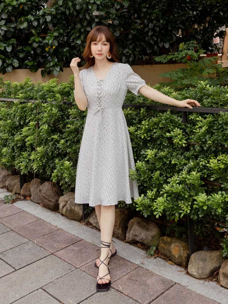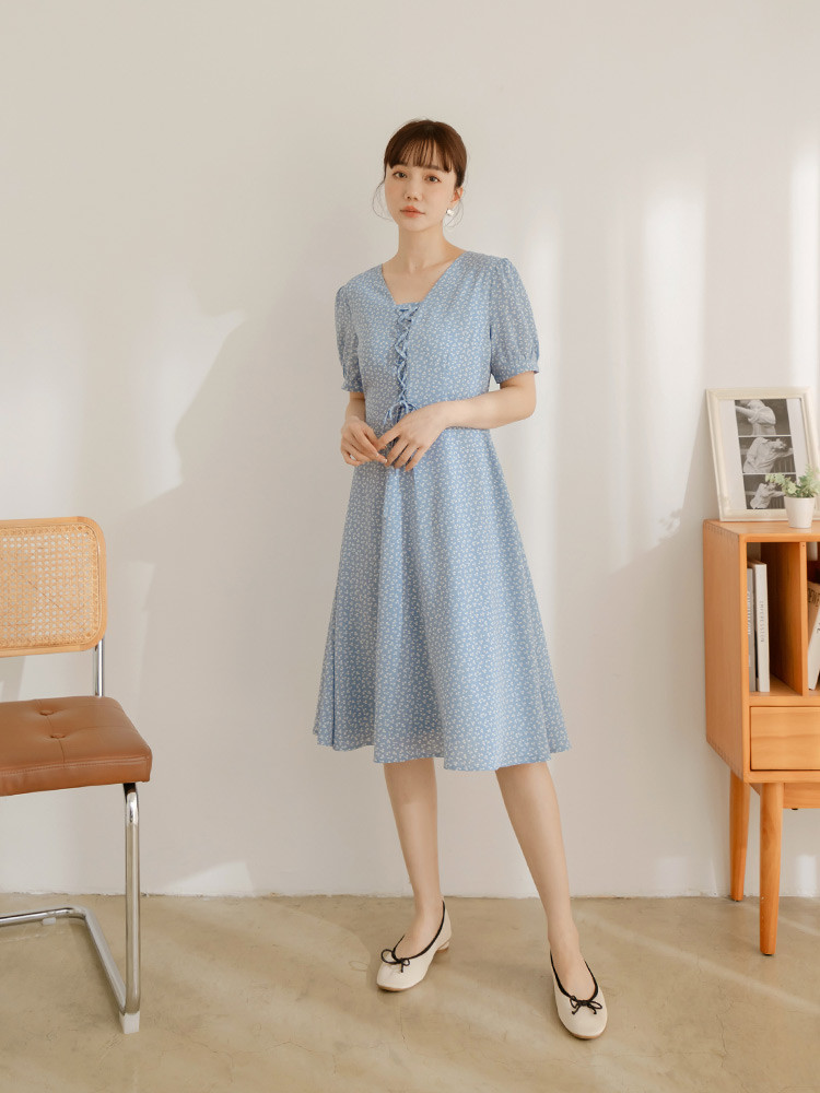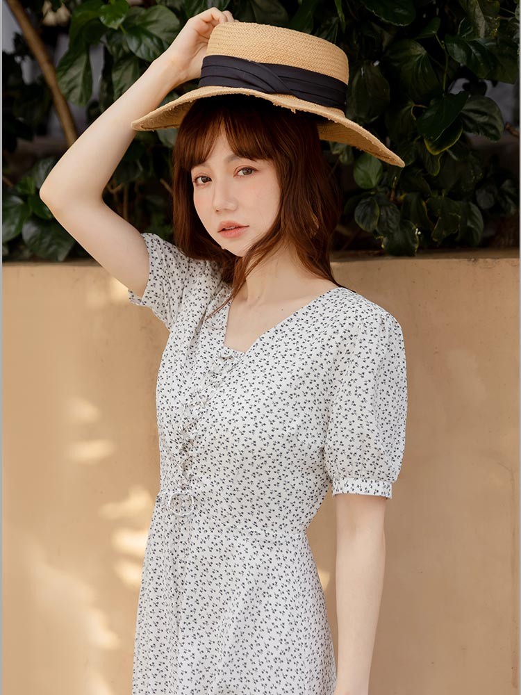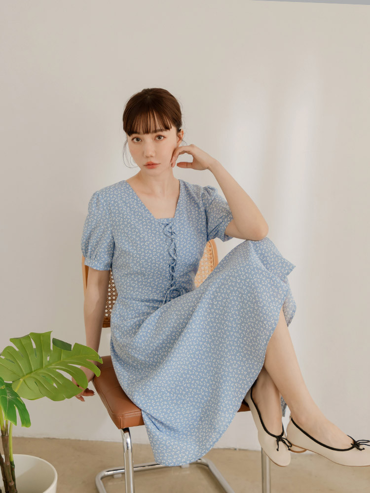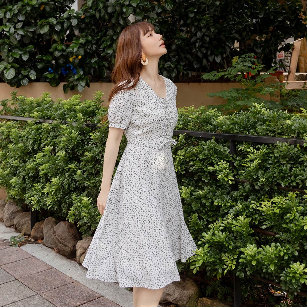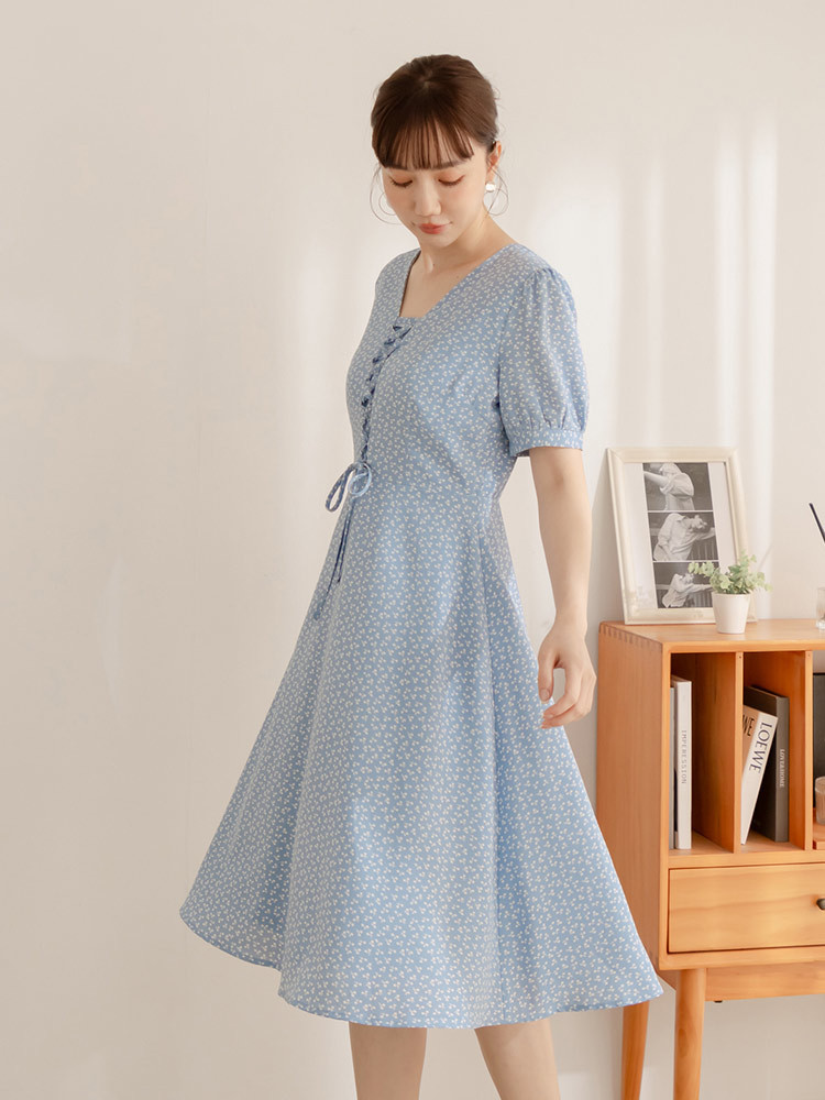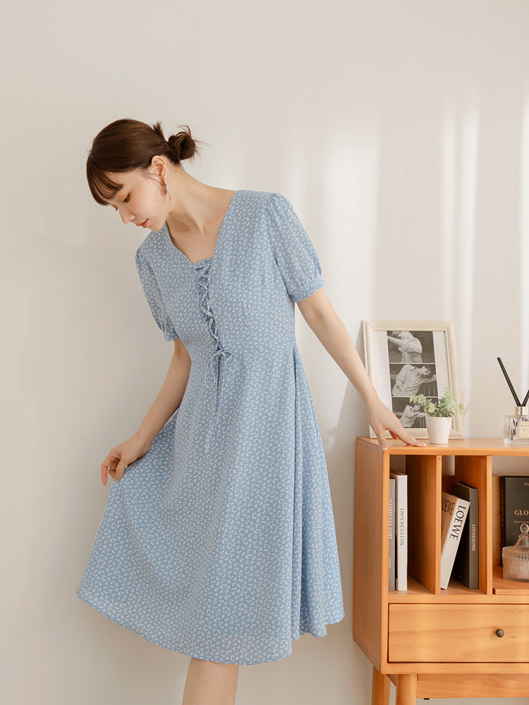 OB嚴選 碎花綁繩造型小澎袖洋裝 《DA10416》白,S|白,M|白,L|白,XL|白,2L|白,3L|淺水藍,S|淺水藍,M|淺水藍,L|淺水藍,XL|淺水藍,2L|淺水藍,3LOB嚴選官方旗艦店