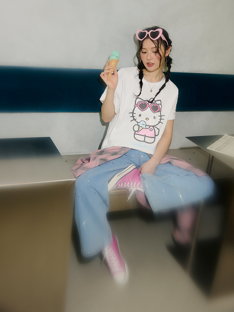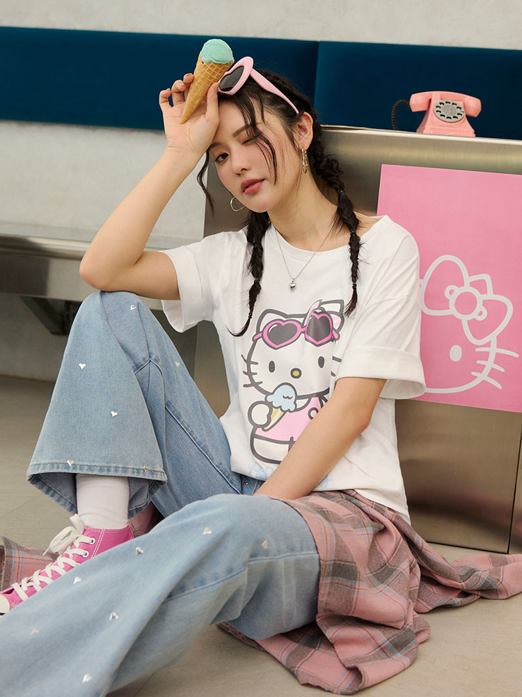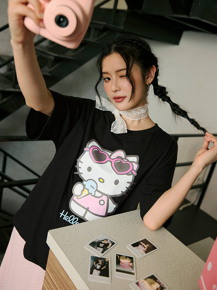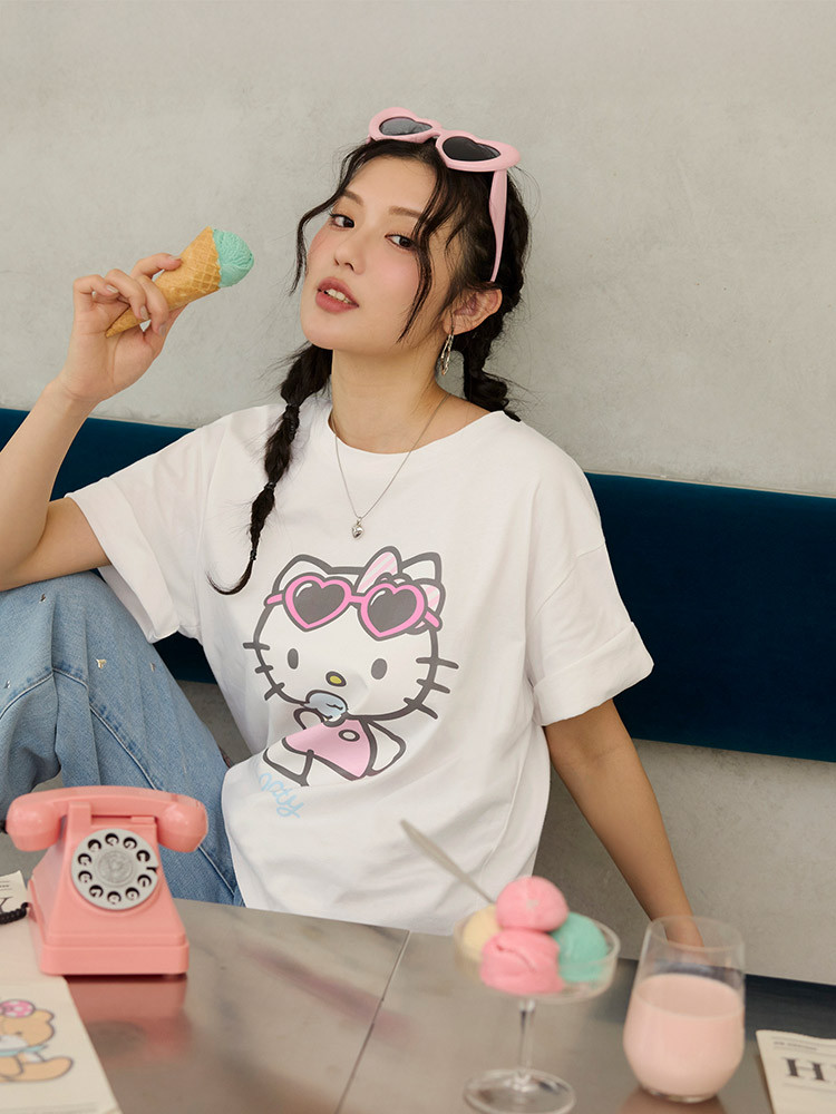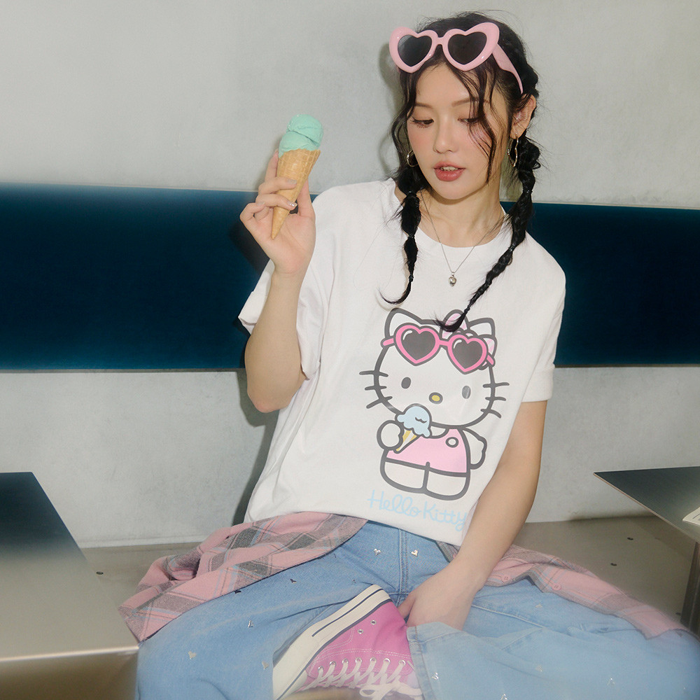 OB嚴選 KITTY 經典再現.時髦大圖案印花寬鬆短袖TEE 《IK0062》白,F|白,XL|白,2L|白,3L|黑,F|黑,XL|黑,2L|黑,3LT-shirtsOB嚴選官方旗艦店