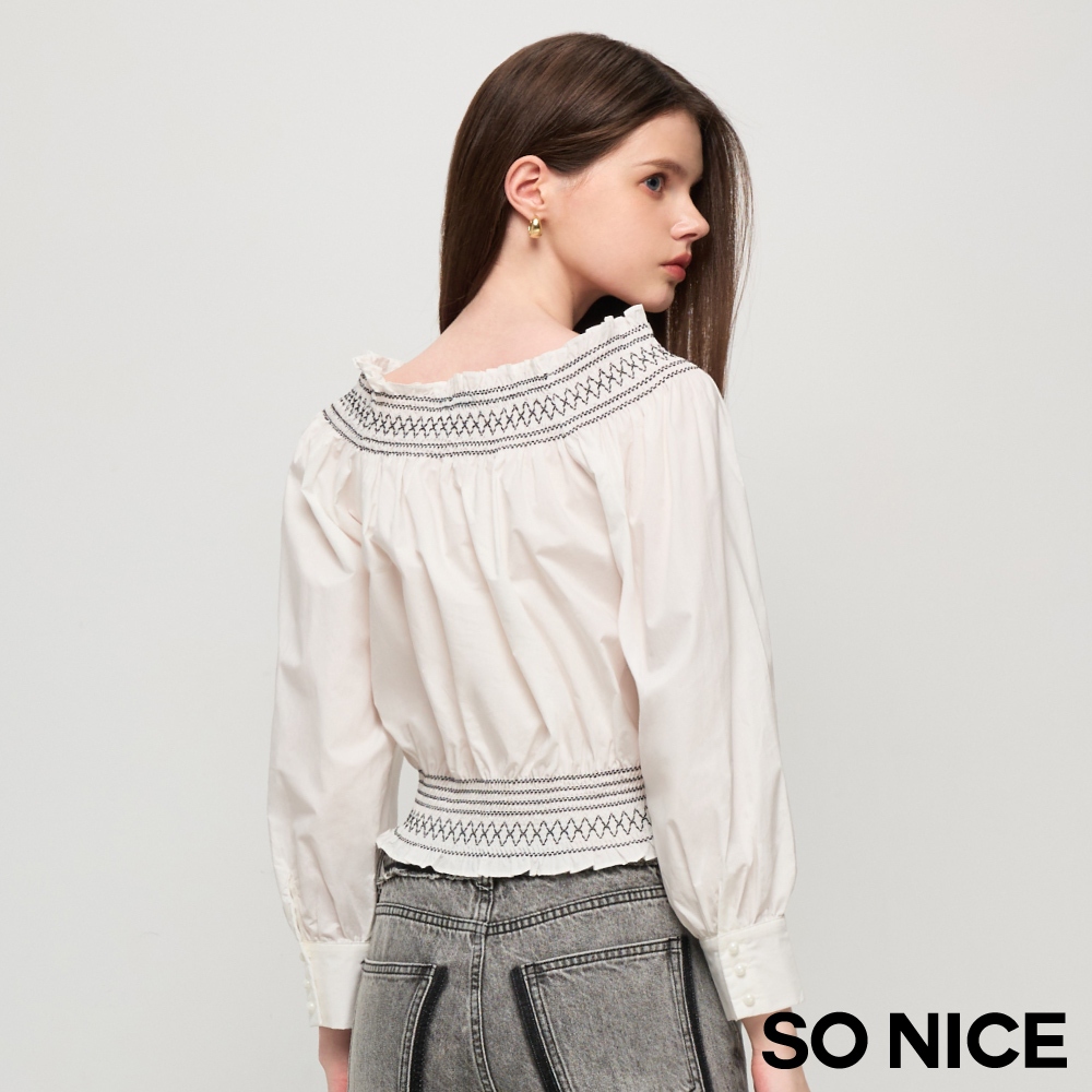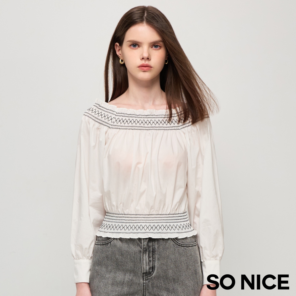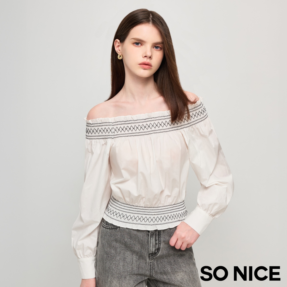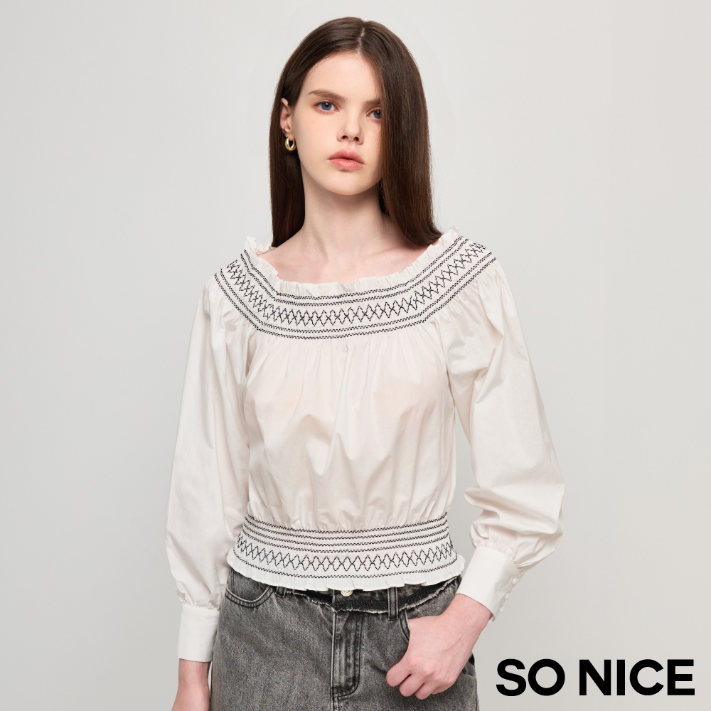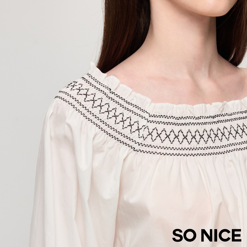 SO NICE【特惠】一字領短袖 荷葉上衣 白色 [一字領荷葉顯瘦澎澎袖襯衫棉布上衣]【58441012】白,34(XS)|白,36(S)|白,38(M)|白,40(L)T-shirtsSO NICE 官方旗艦店