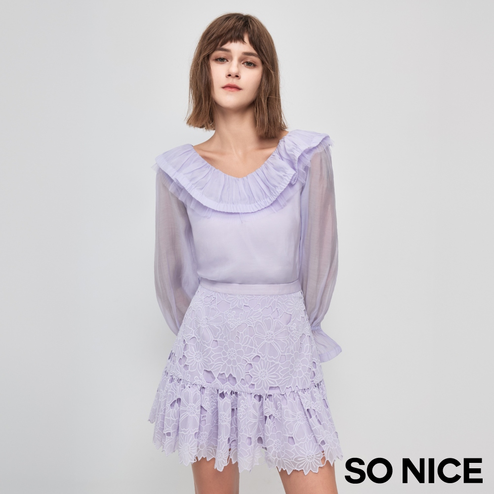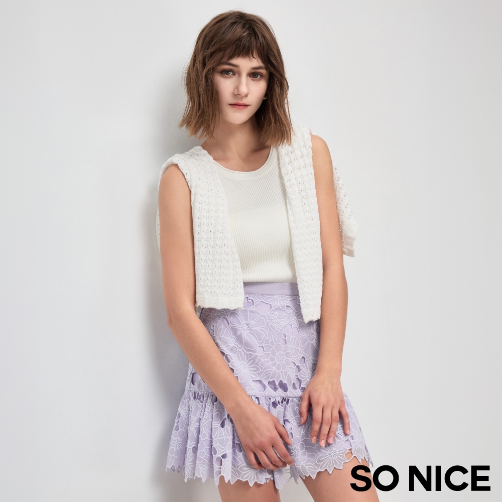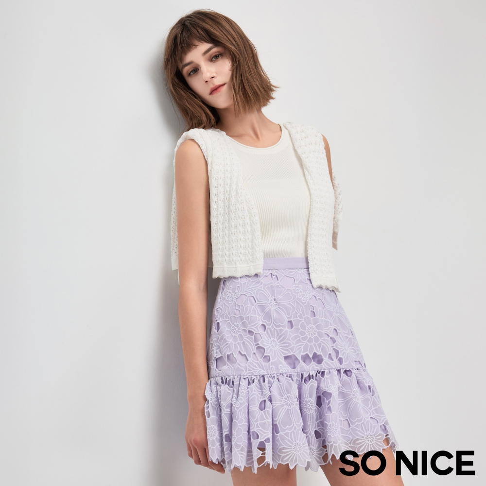SO NICE【特惠】鏤空短裙 短裙 淺紫色 [丁香紫花朵鏤空短裙]【75443010】淺紫,40(L)|淺紫,34(XS)|淺紫,36(S)|淺紫,38(M)SO NICE 官方旗艦店