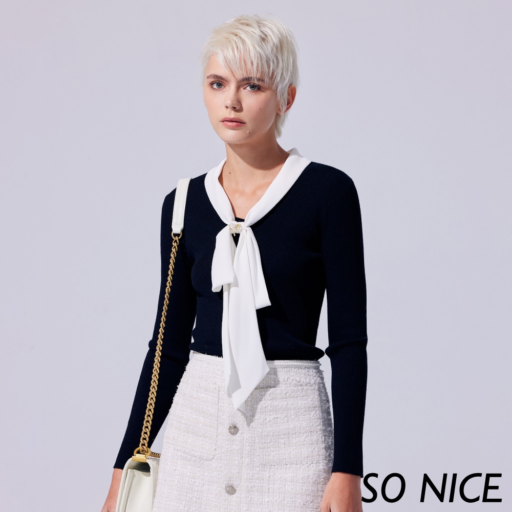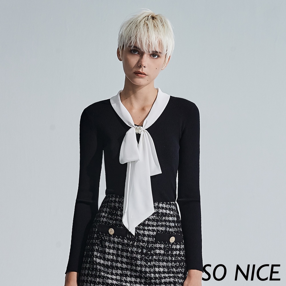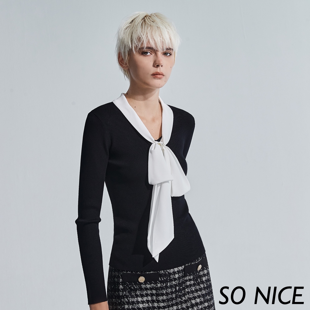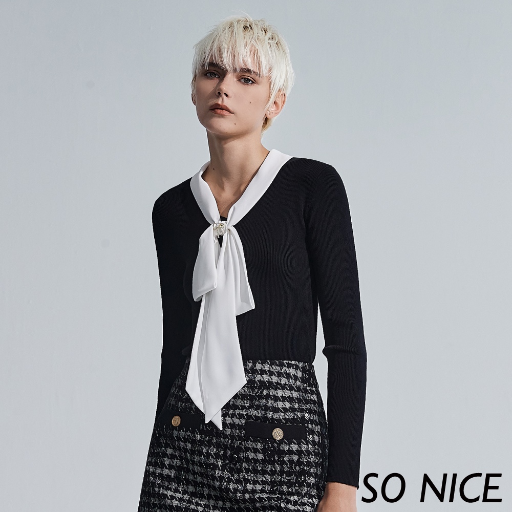 SO NICE【特惠】優雅蝴蝶領結針織上衣|都會時尚女裝 【58340039】黑,42(XL)|黑,34(XS)|黑,36(S)|黑,38(M)|黑,40(L)SO NICE 官方旗艦店