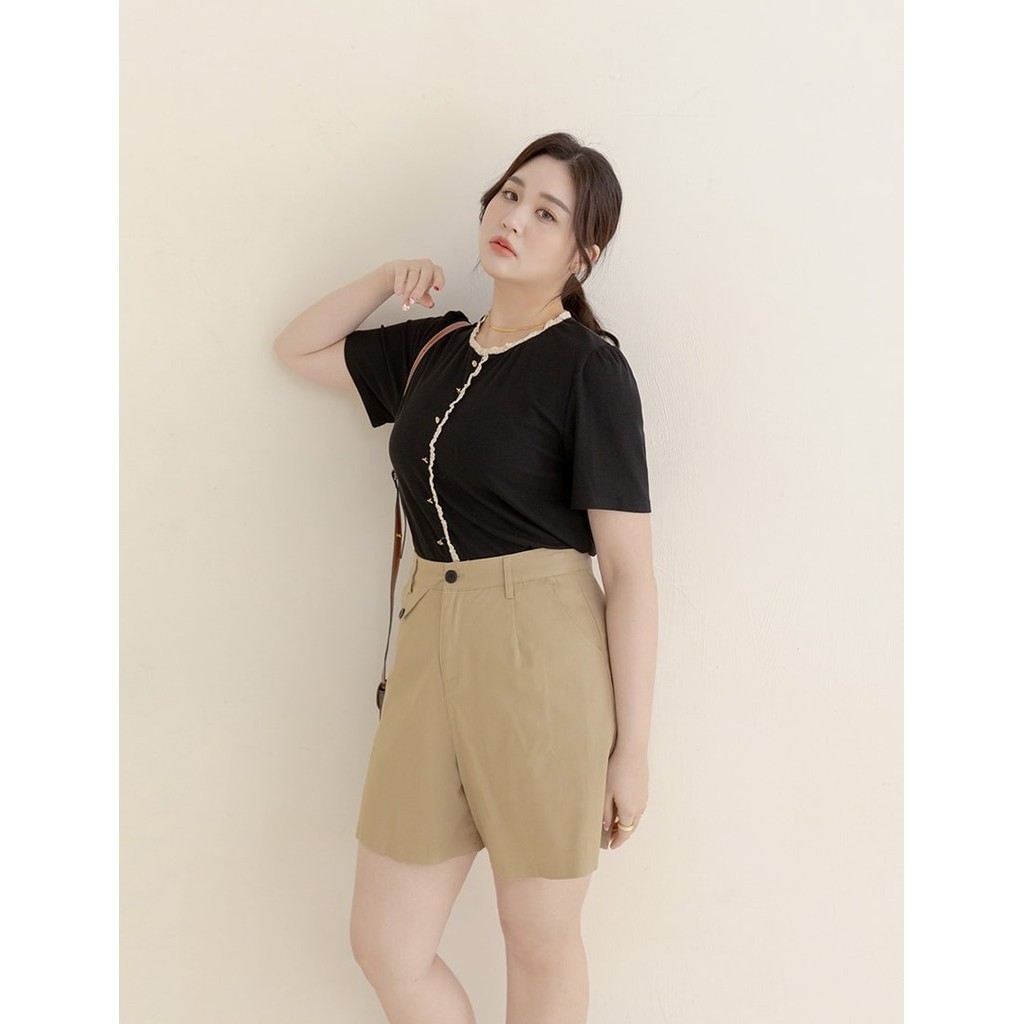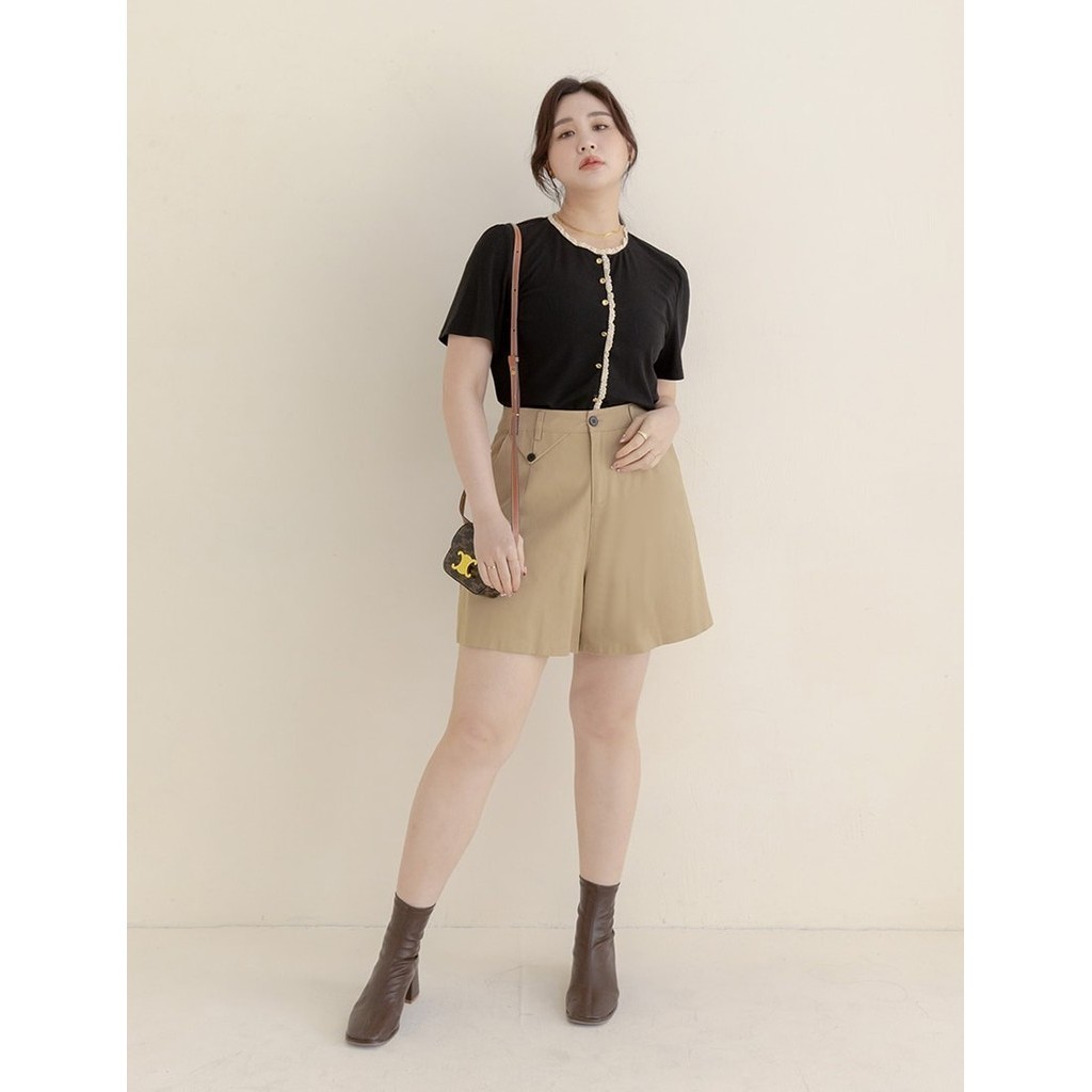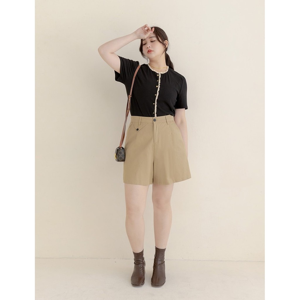 【PolyLulu】 MISS.韓系質感造型袋蓋A字短褲 中大尺碼褲子 卡其色L|XL|2XL|3XLShortsPOLY LULU丨BEAUTY HAS NO SIZE 中大尺碼女裝