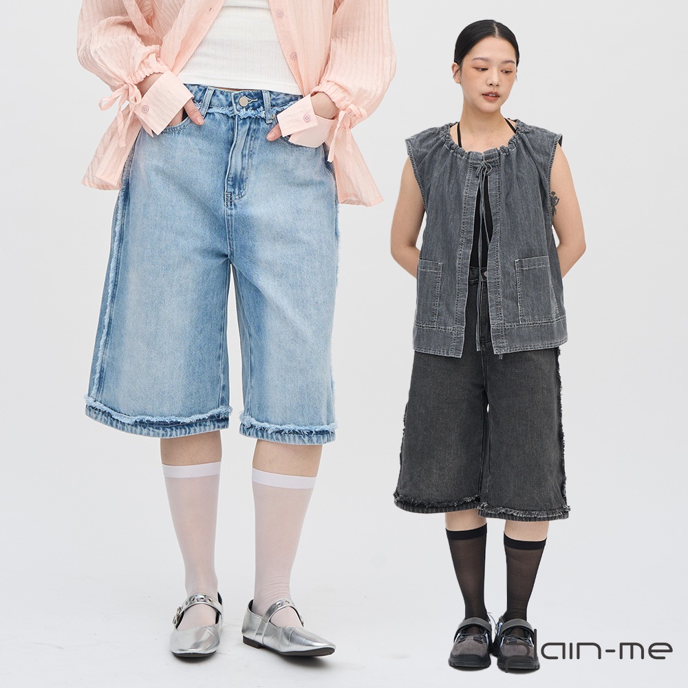 plain-me [SAAKO 不收邊] 丹寧 七分褲 短褲 牛仔短褲 [SAA1706-251]淺藍,S|淺藍,M|淺藍,L|黑,S|黑,M|黑,Lplain-me 官方旗艦店