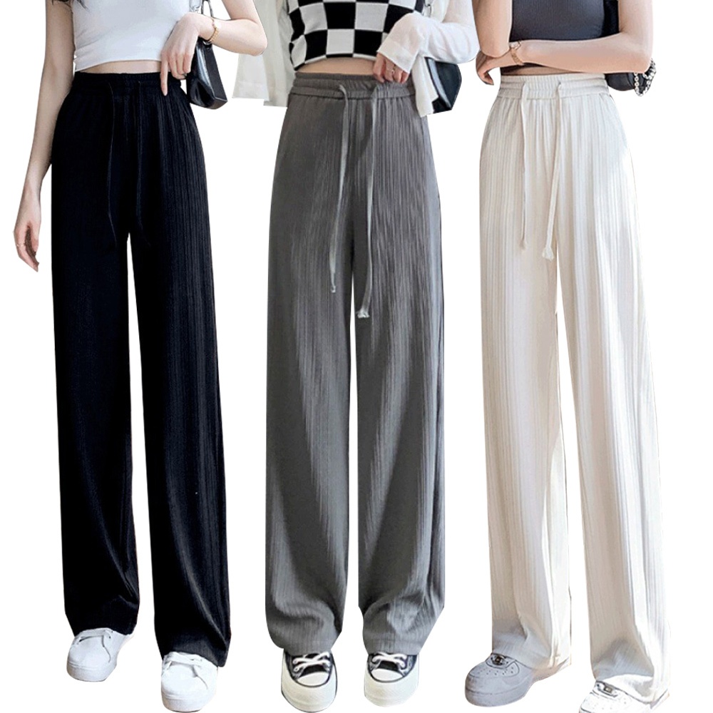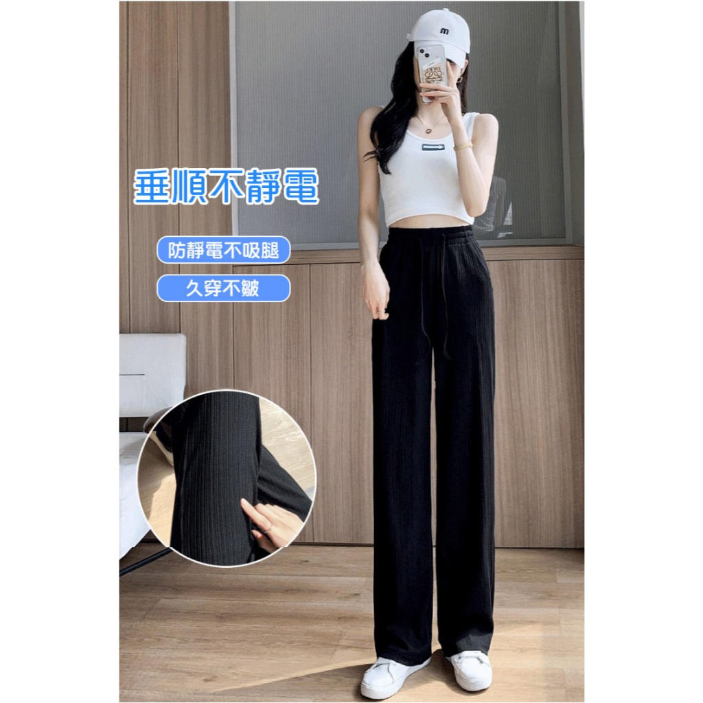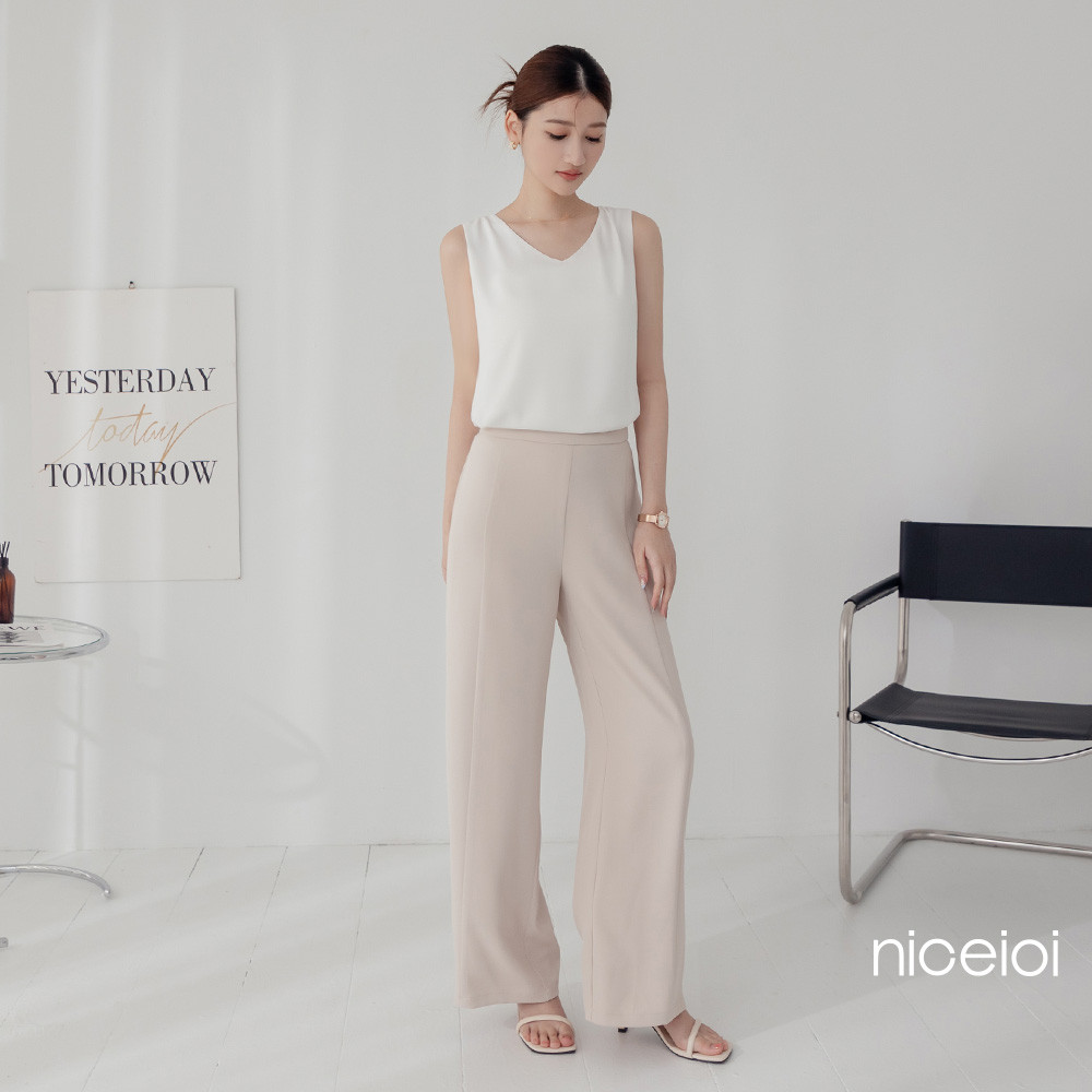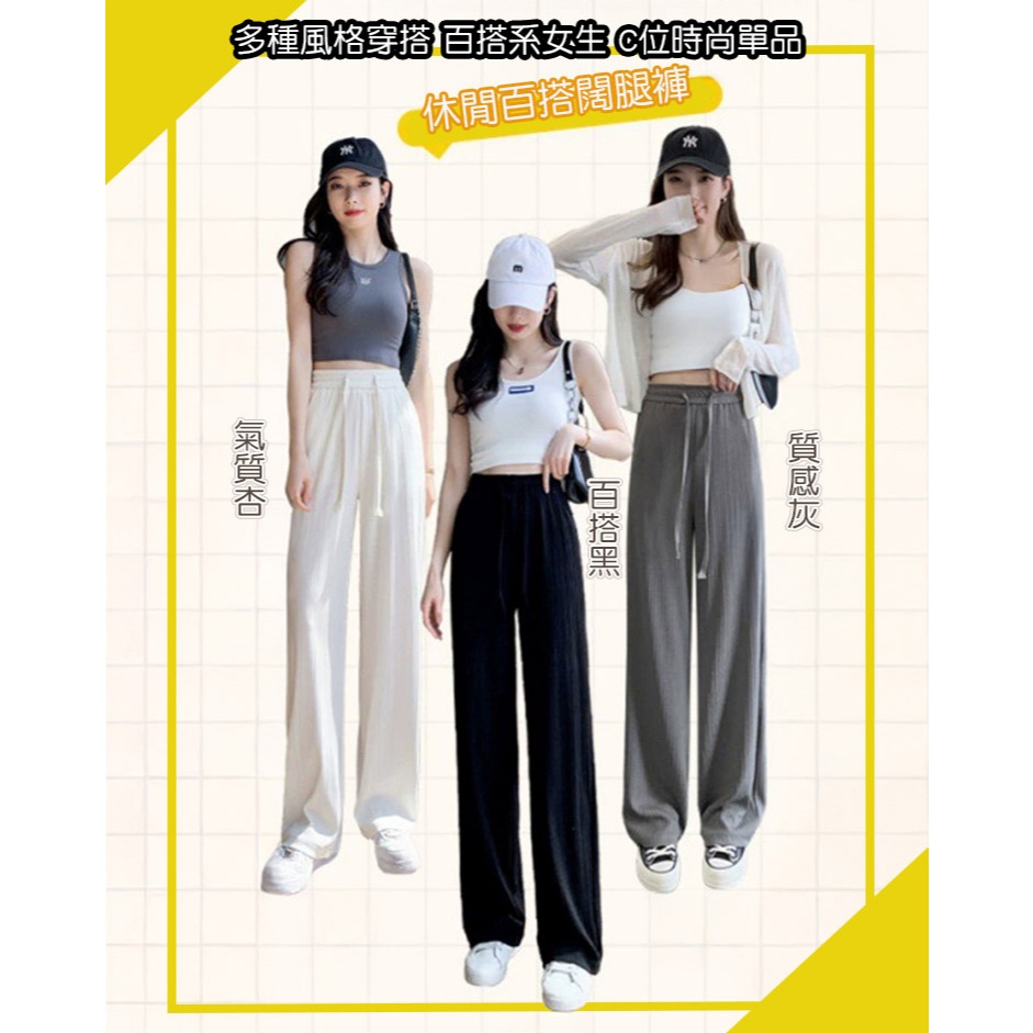 QIDINA 時尚百搭親膚涼爽顯瘦垂順闊腿褲-H氣質杏|百搭黑|質感灰PantsQIDINA