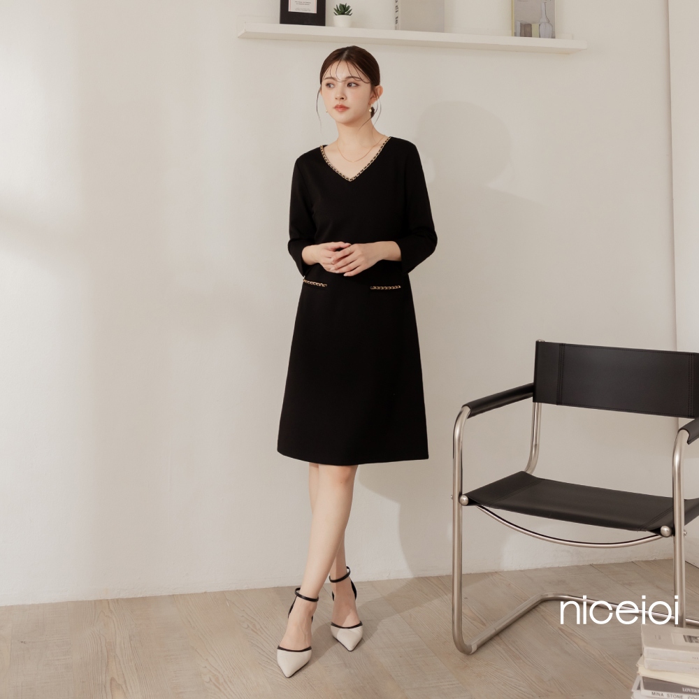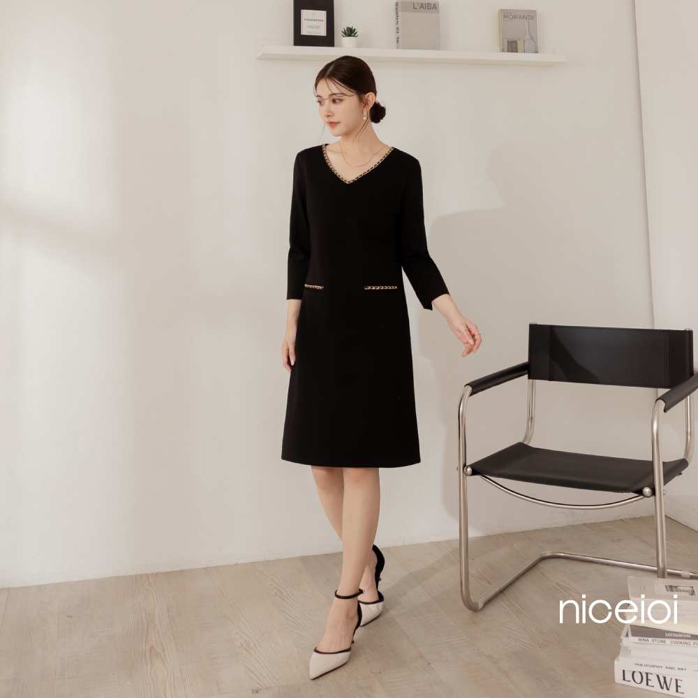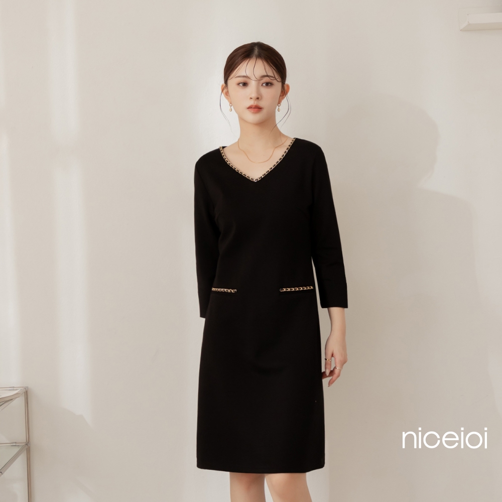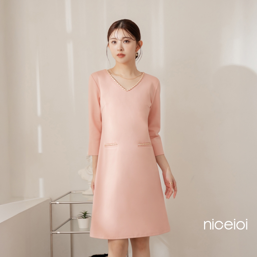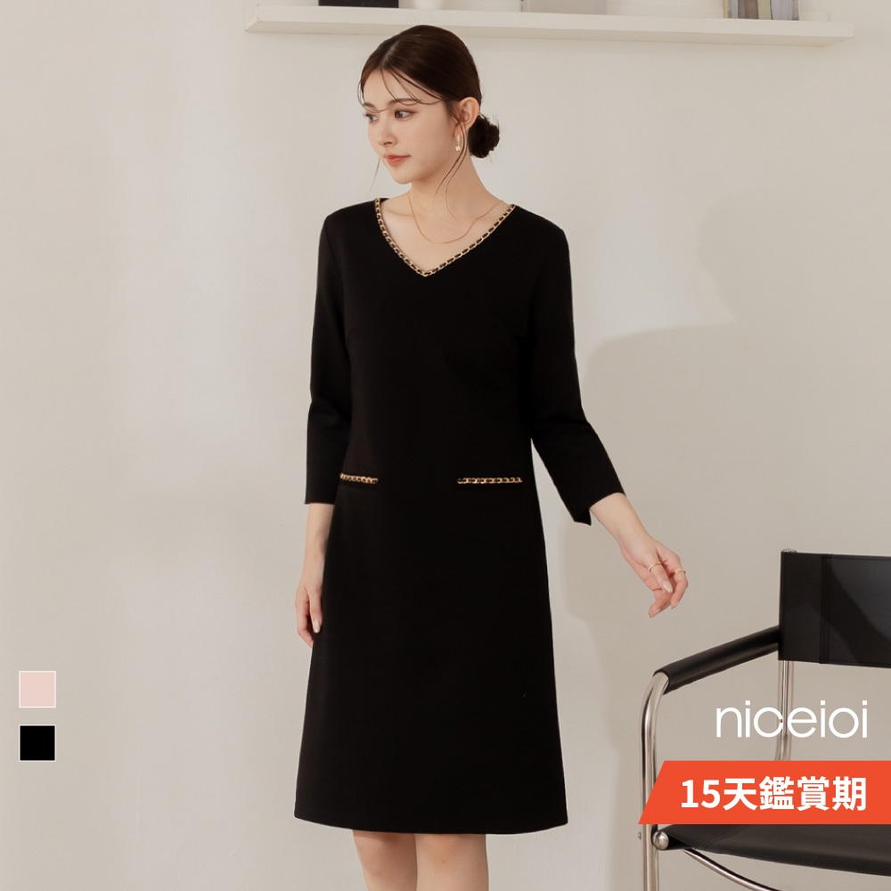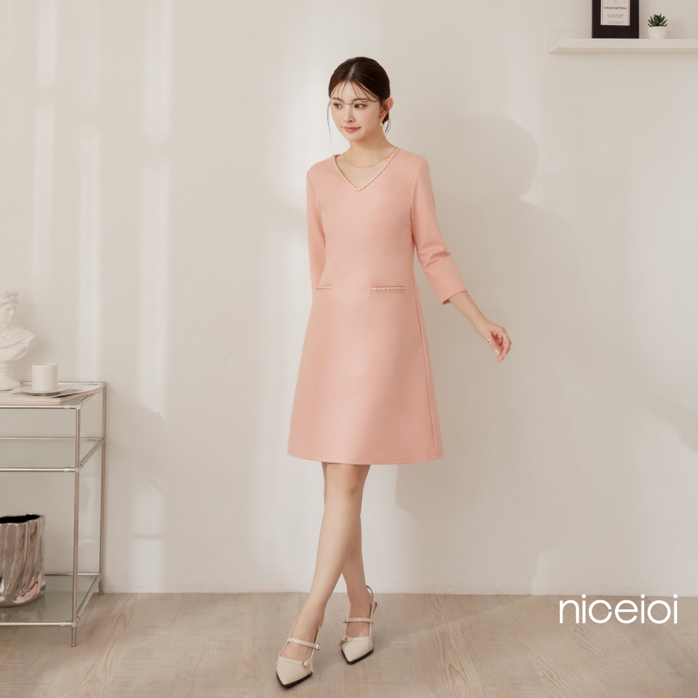 niceioi【特惠】端莊小香羅馬布七分袖洋裝 (共2色) 女裝粉,L|粉,XL|黑,S|黑,M|黑,L|黑,XL|粉,S|粉,Mniceioi 官方旗艦店