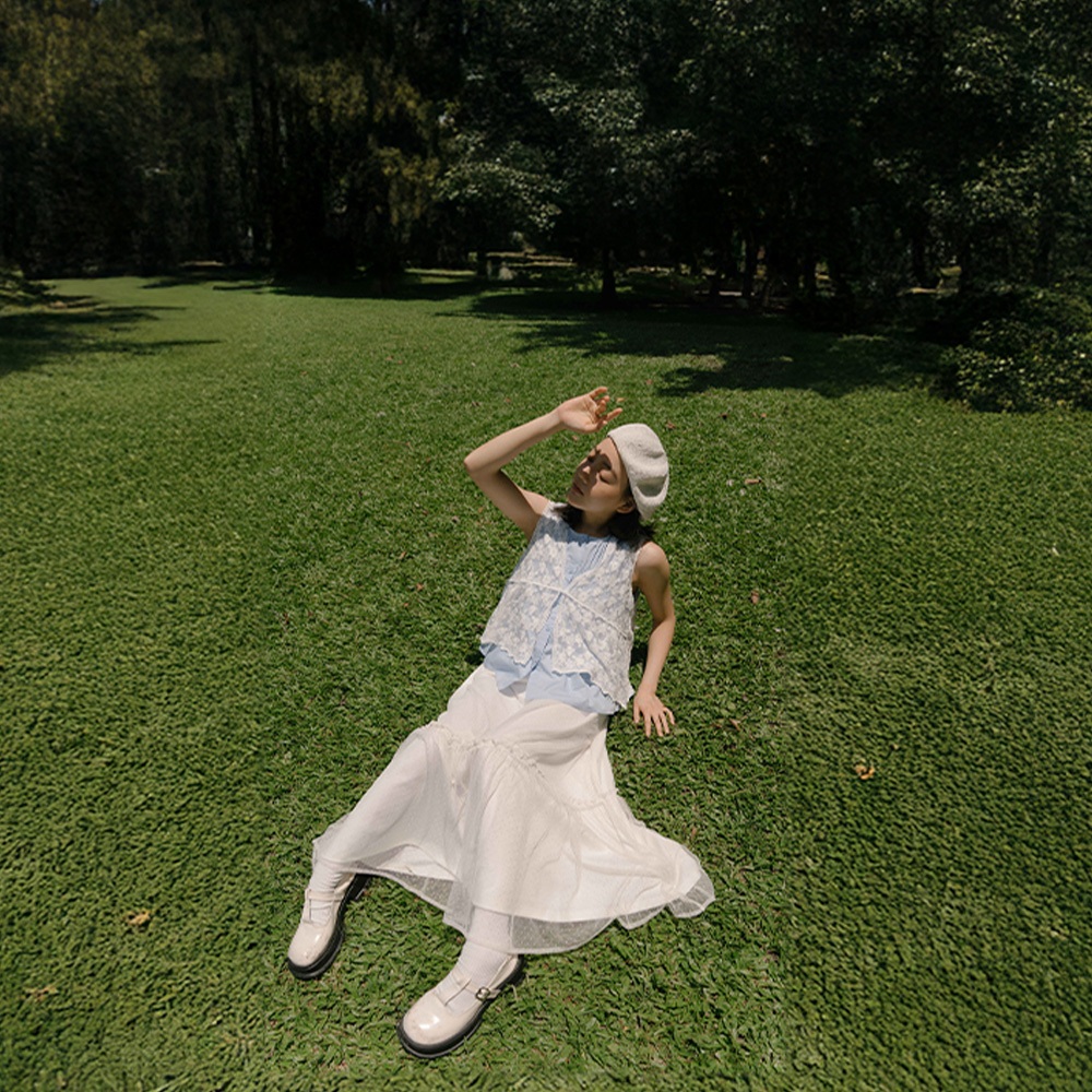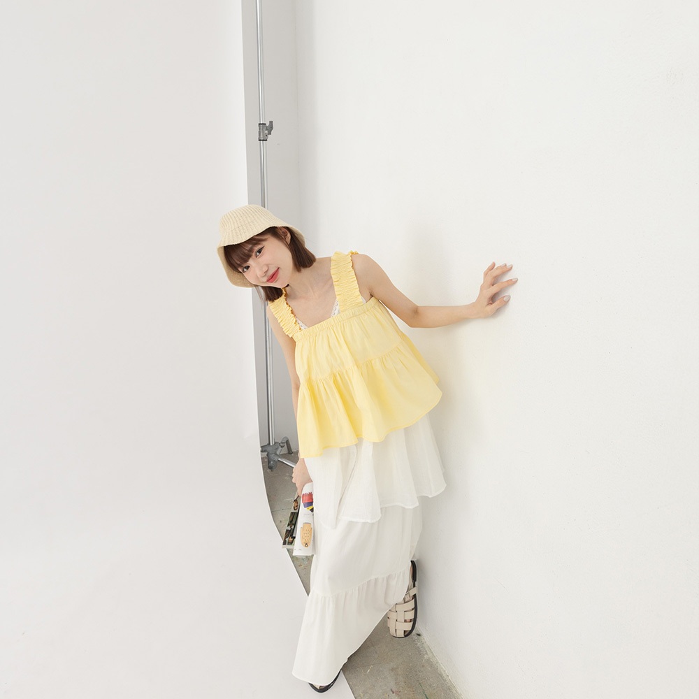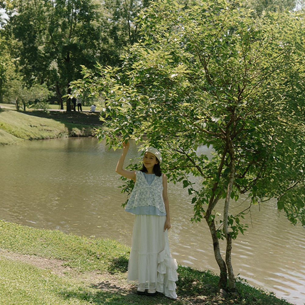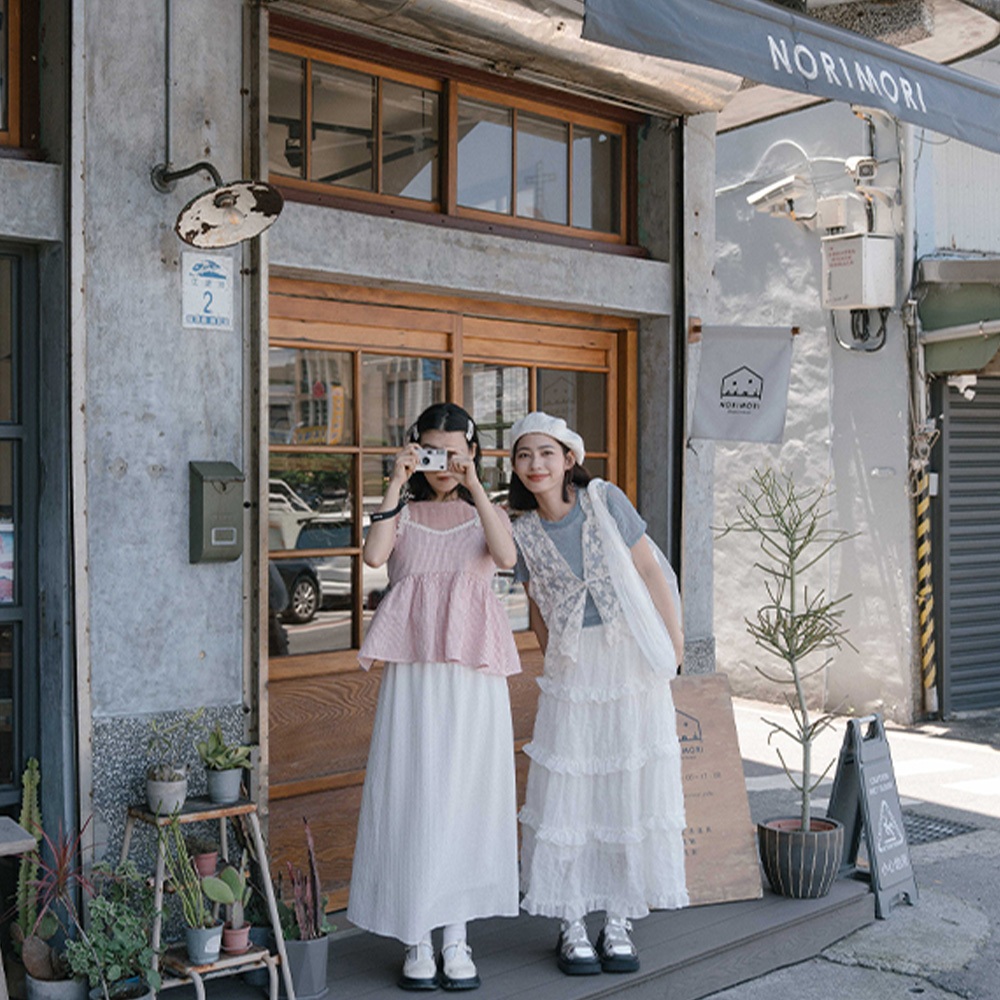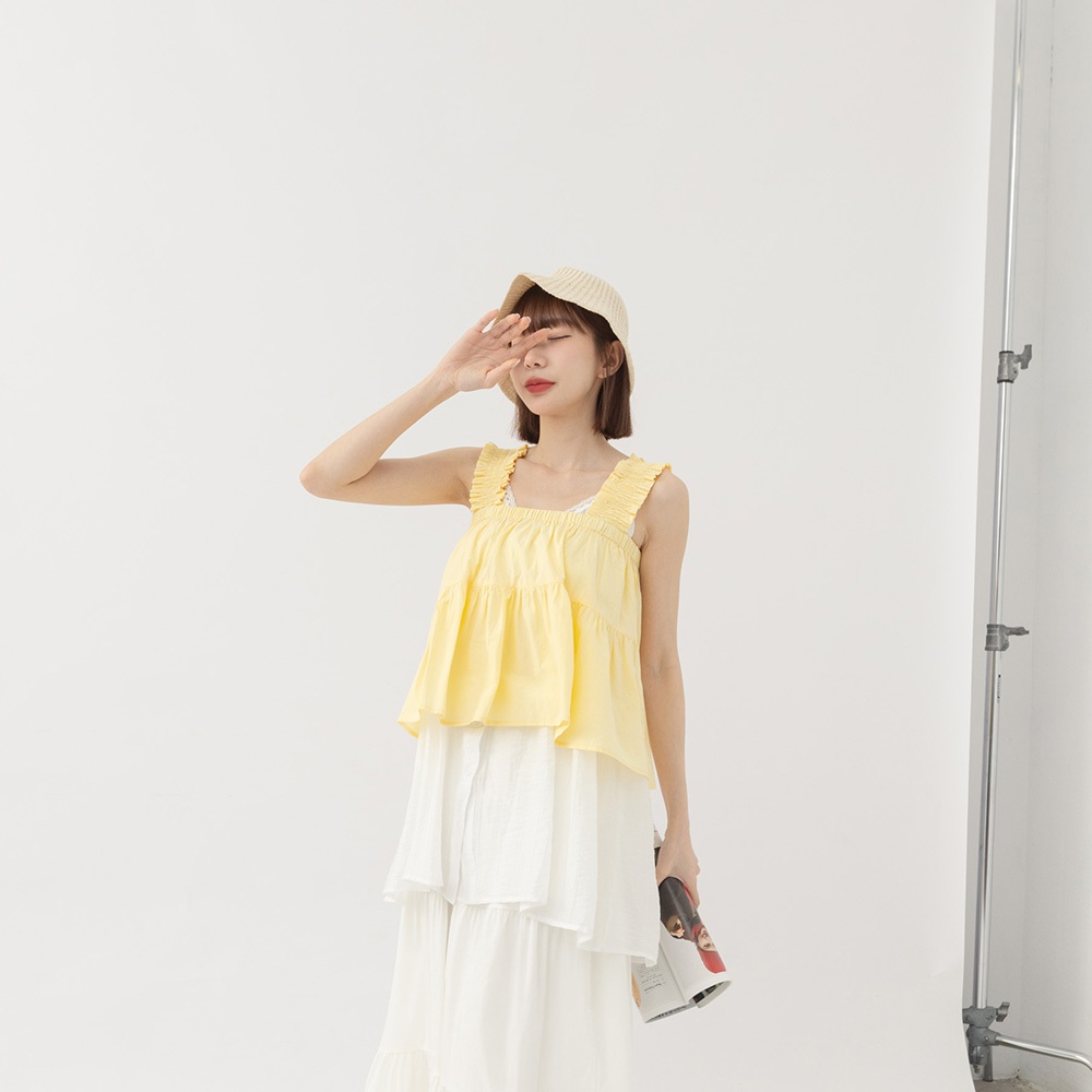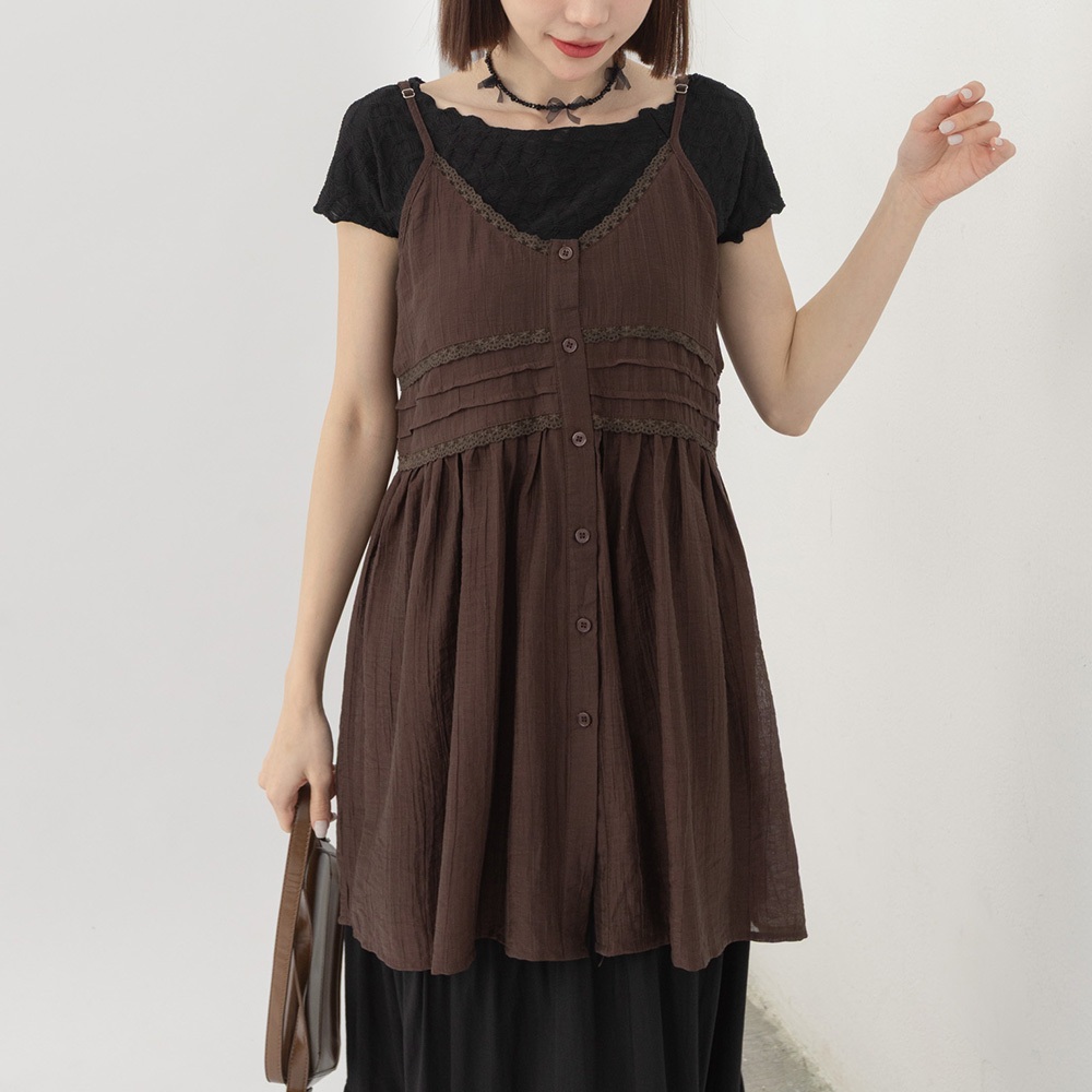 QUEENSHOP_ S 女裝 單釦蕾絲緹花傘擺罩衫背心 兩色售 現+預 【01099020】白|杏Tanks & CamisolesQUEENSHOP