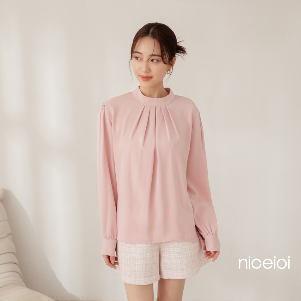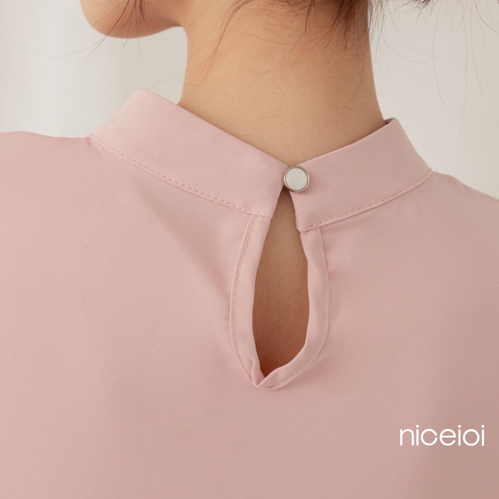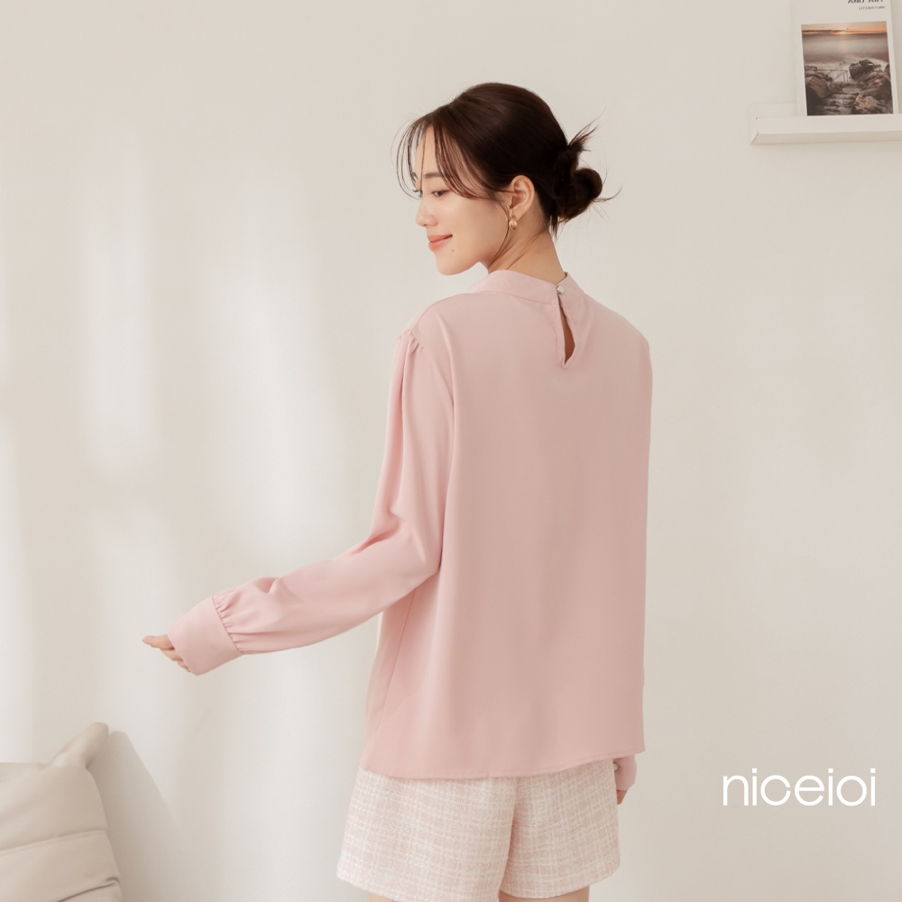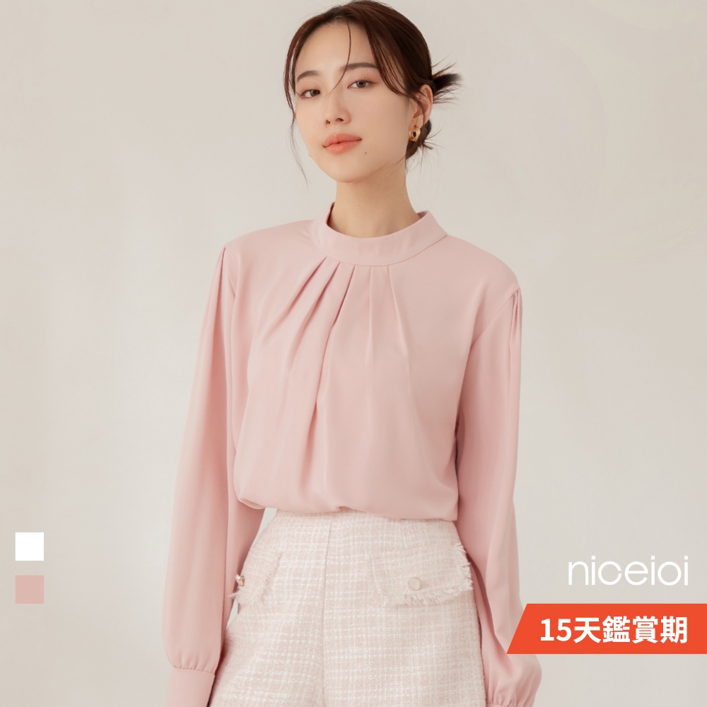 niceioi【特惠】端莊女伶打褶後鏤空珍珠上衣 (共2色) 女裝粉,F|白,FShirts & Blousesniceioi 官方旗艦店