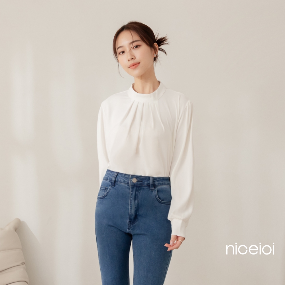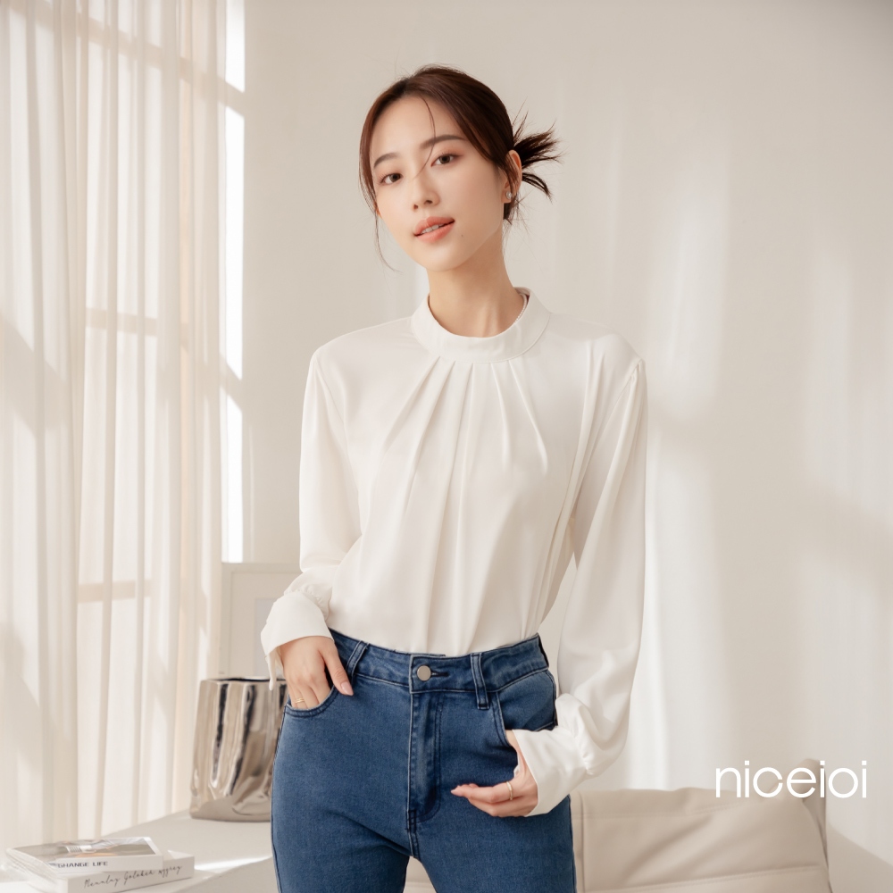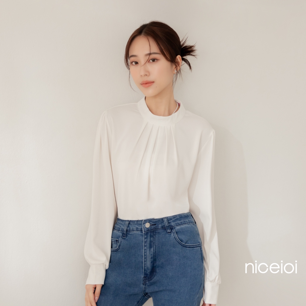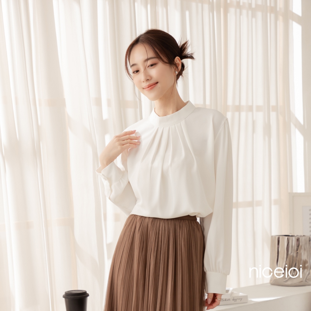 niceioi【特惠】端莊女伶打褶後鏤空珍珠上衣 (共2色) 女裝粉,F|白,FShirts & Blousesniceioi 官方旗艦店