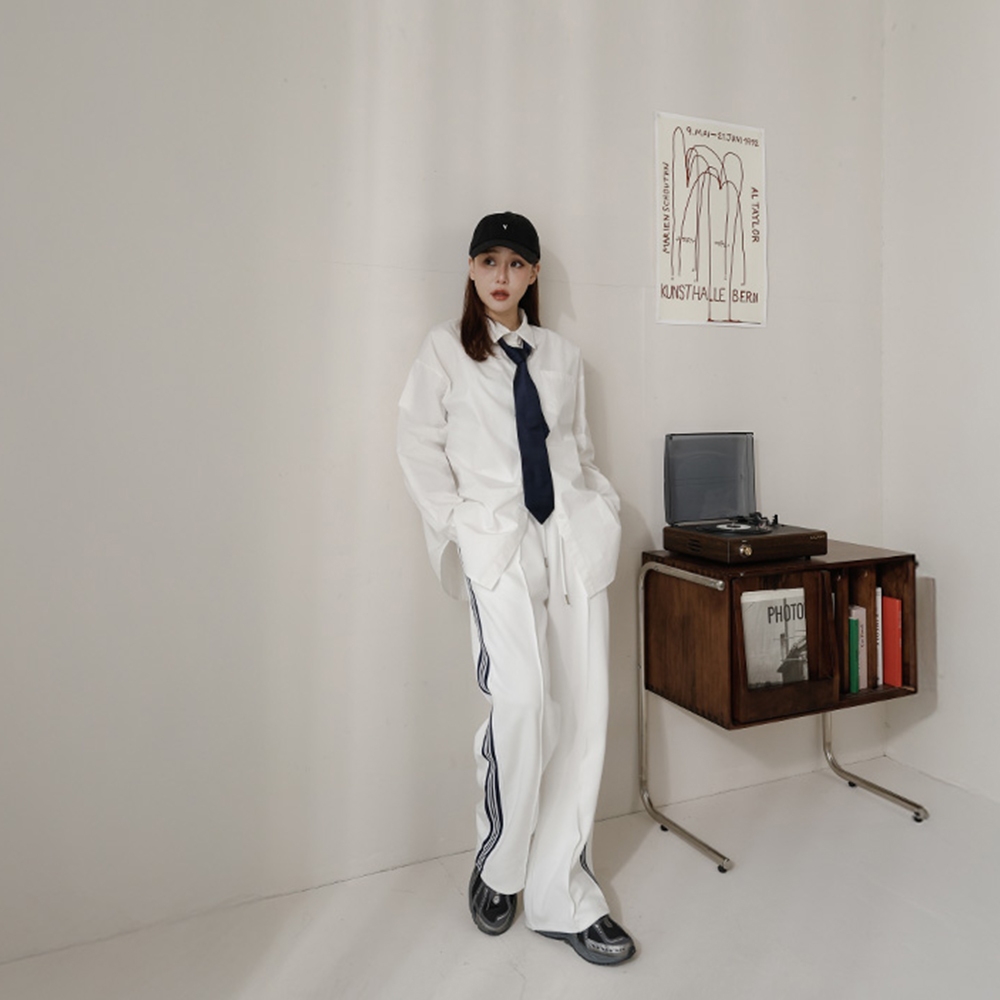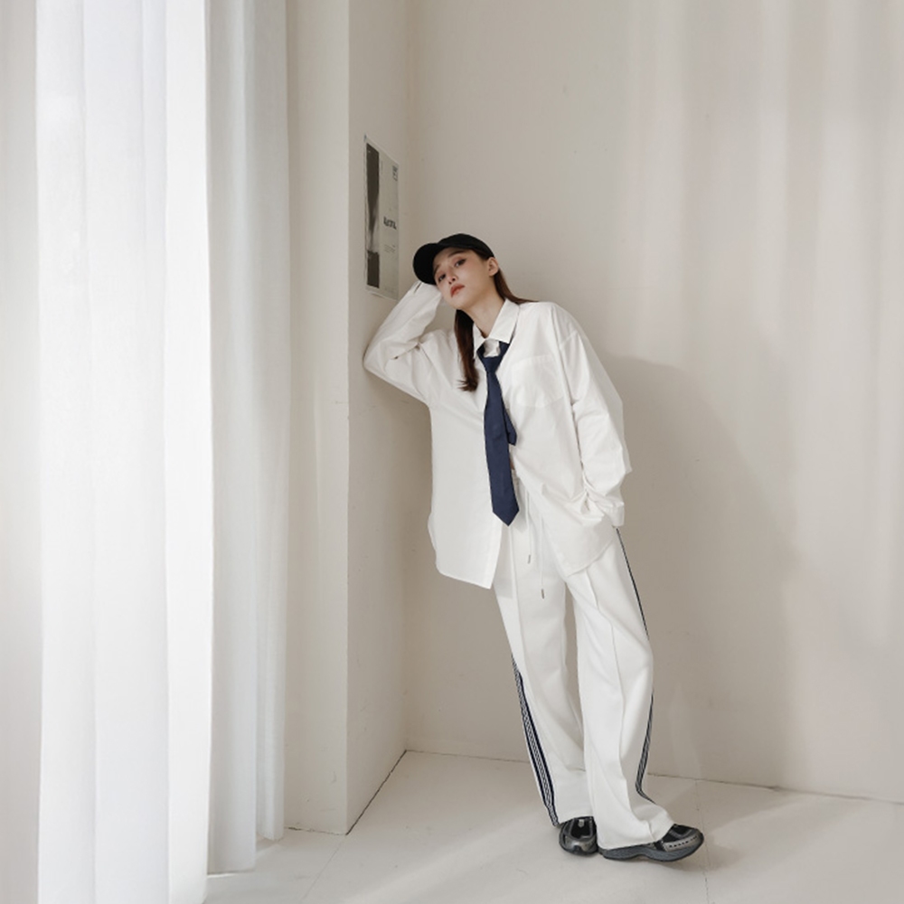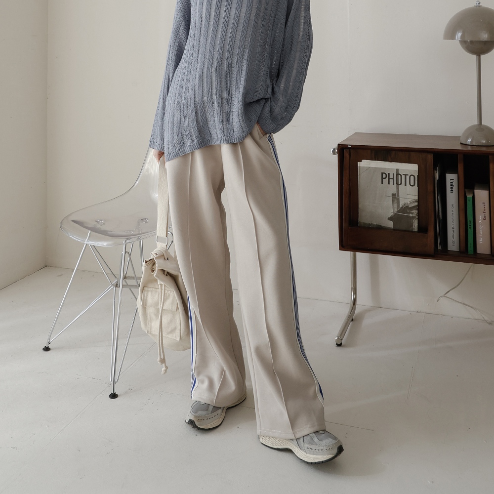 QUEENSHOP_ S 女裝 休閒側撞色織帶棉質長褲 兩色售 現+預 【04101926】卡其PantsQUEENSHOP