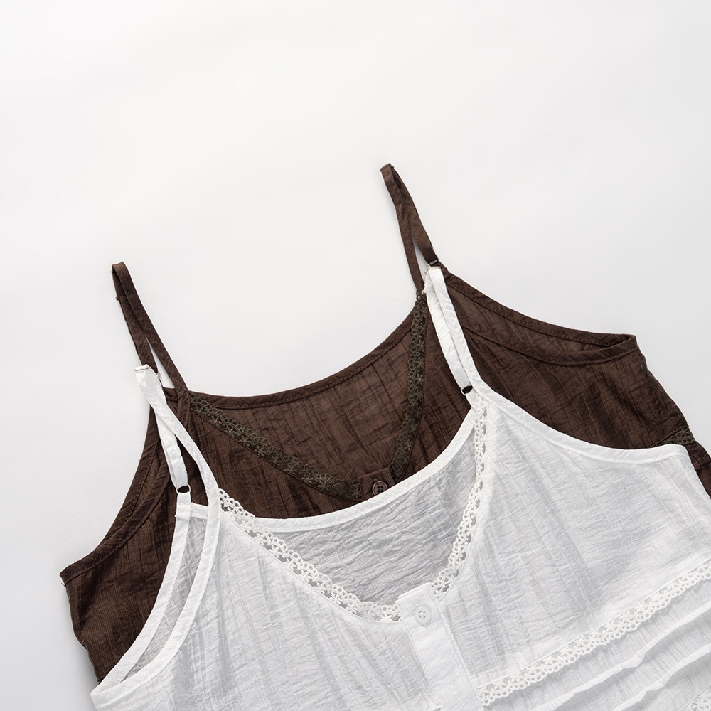QUEENSHOP_ S 女裝 蕾絲花邊透膚細肩罩衫背心 兩色售 現+預 【01099048】白|咖啡Tanks & CamisolesQUEENSHOP