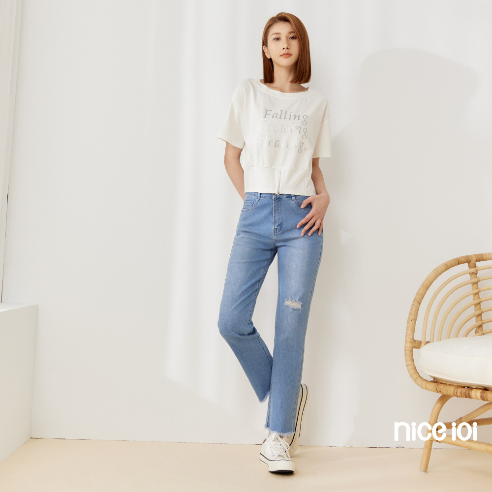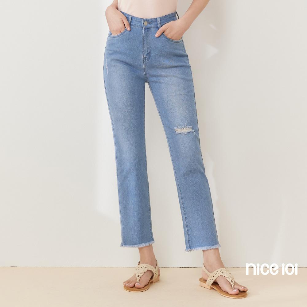 niceioi【特惠】潮流刷破抽鬚九分牛仔褲 (共2色) 丹寧褲 牛仔褲 九分褲 長褲 刷破褲 女裝白,M|白,L|藍,S|藍,XXL|白,S|白,XL|白,XXL|藍,M|藍,L|藍,XLniceioi 官方旗艦店