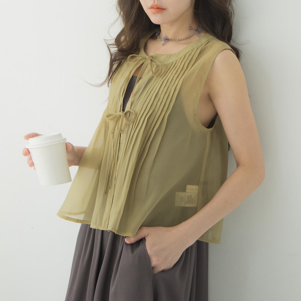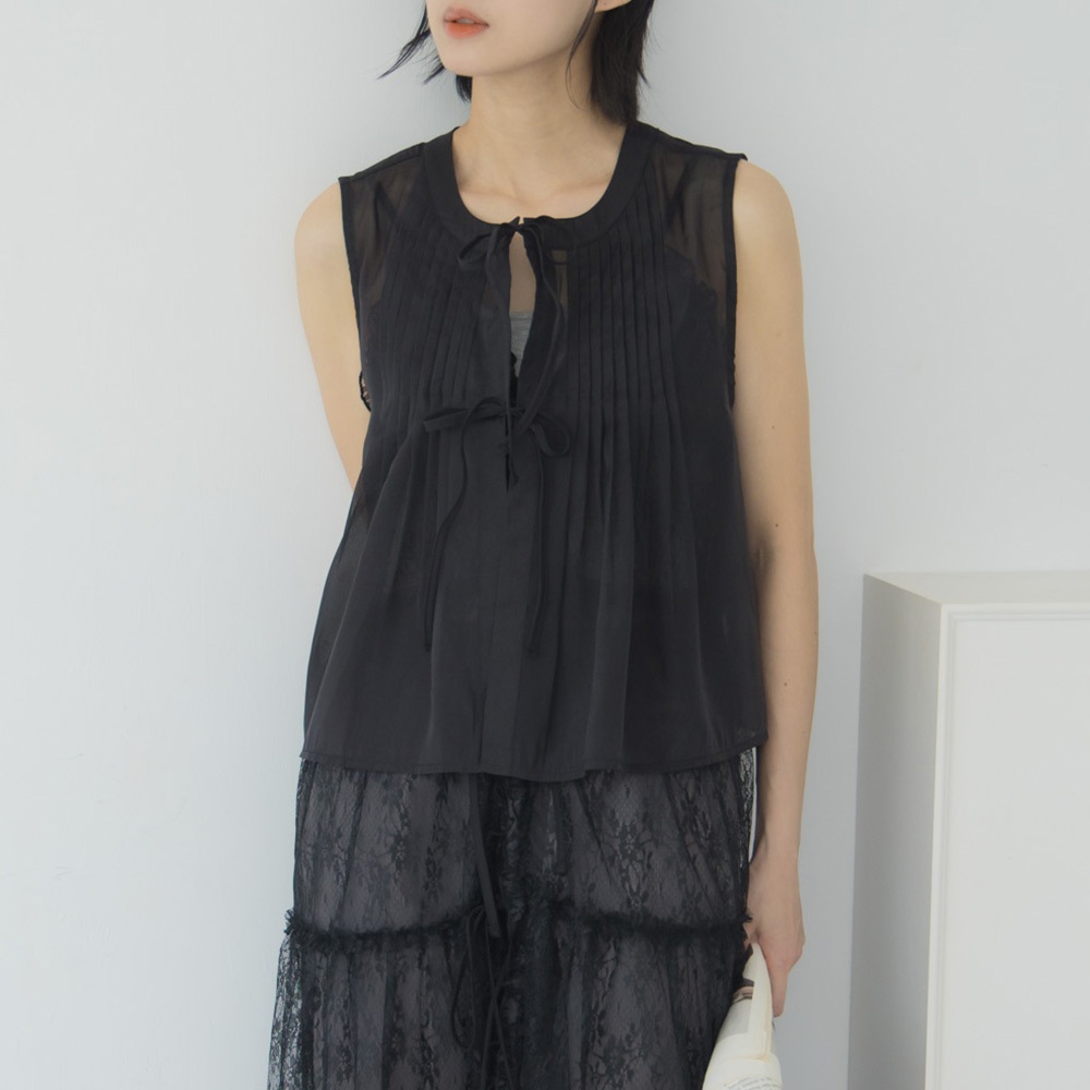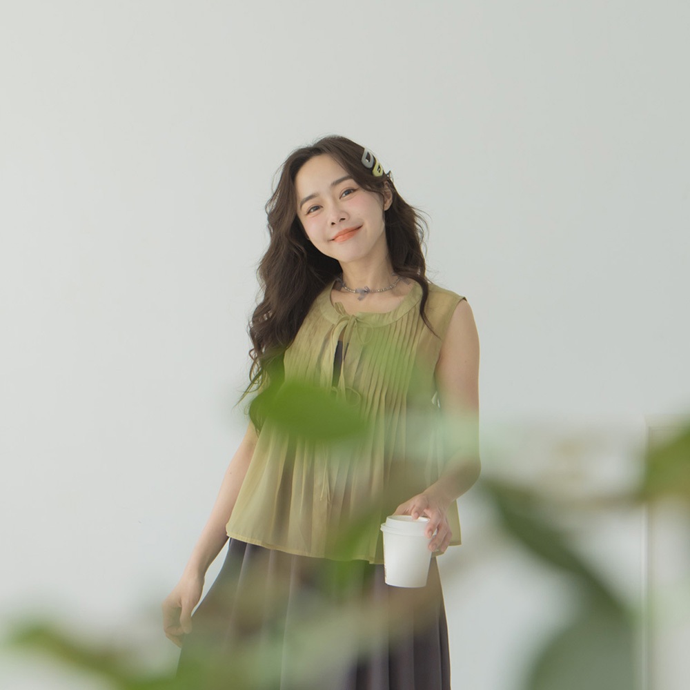 QUEENSHOP_ S 女裝 壓褶雙綁帶無袖透膚罩衫上衣 三色售 現+預 【01098996】黑|綠|橘Tanks & CamisolesQUEENSHOP