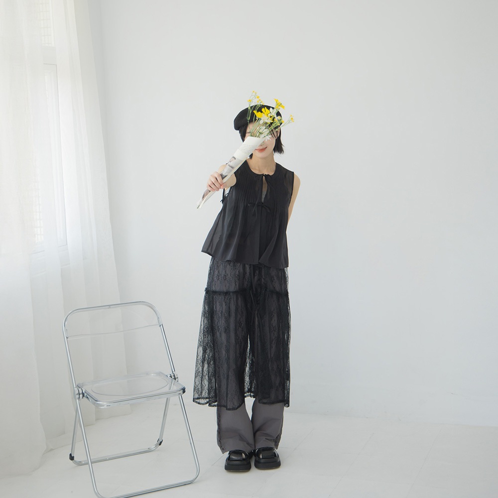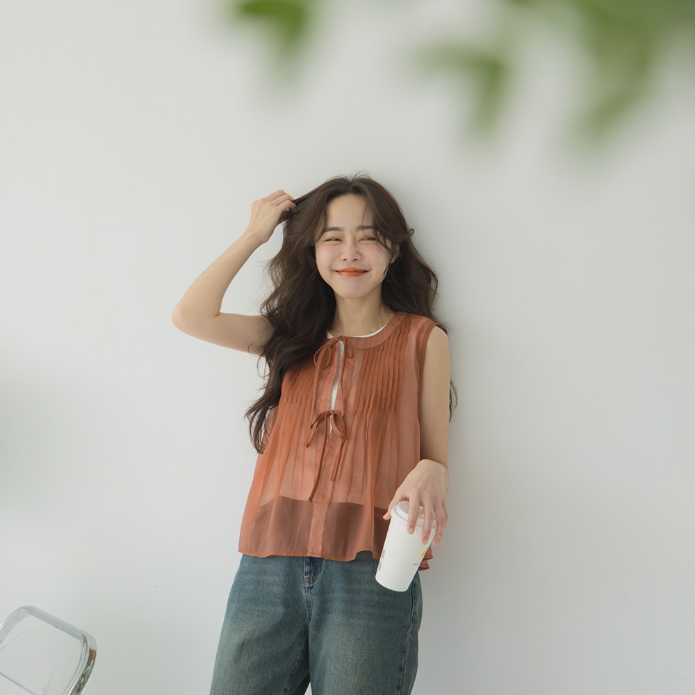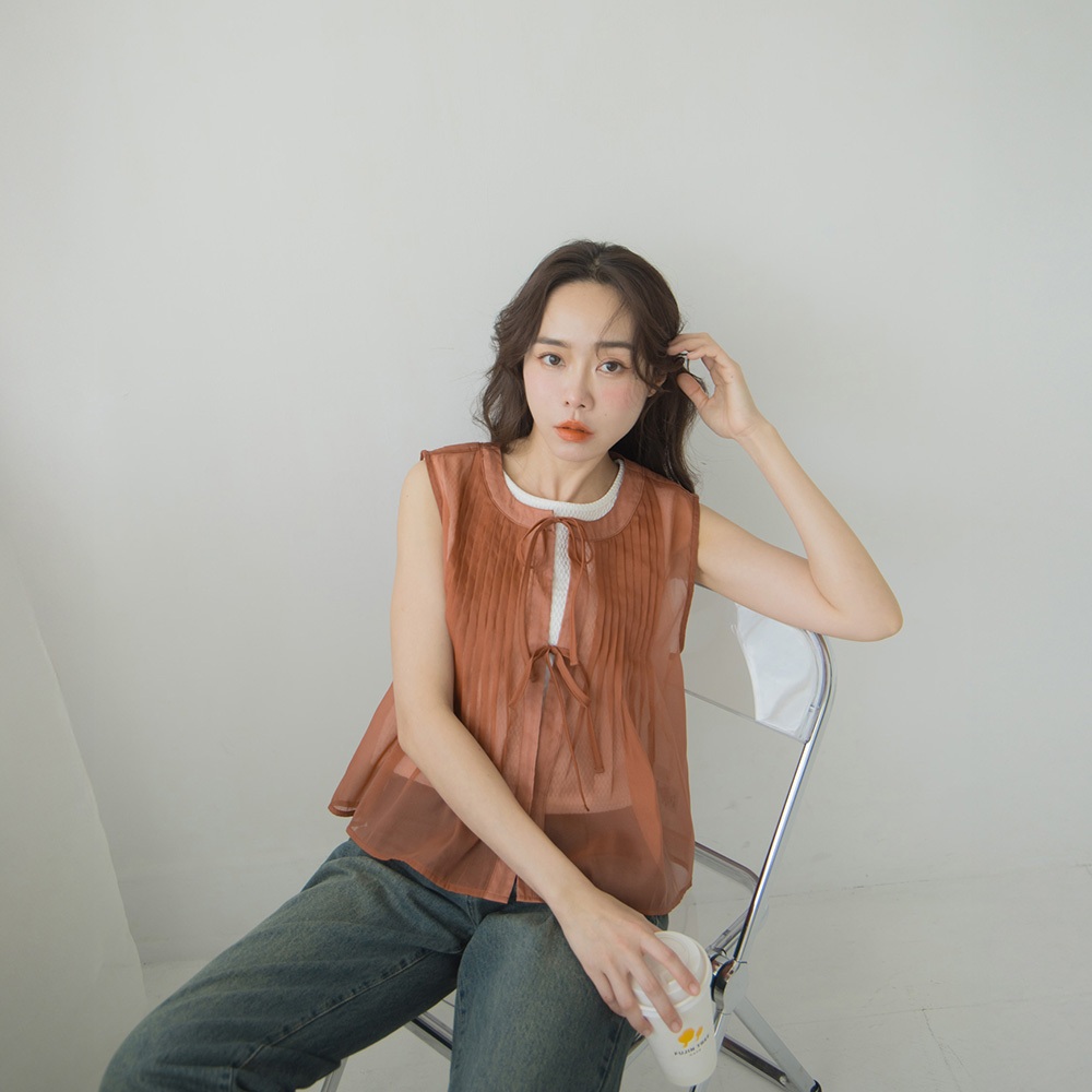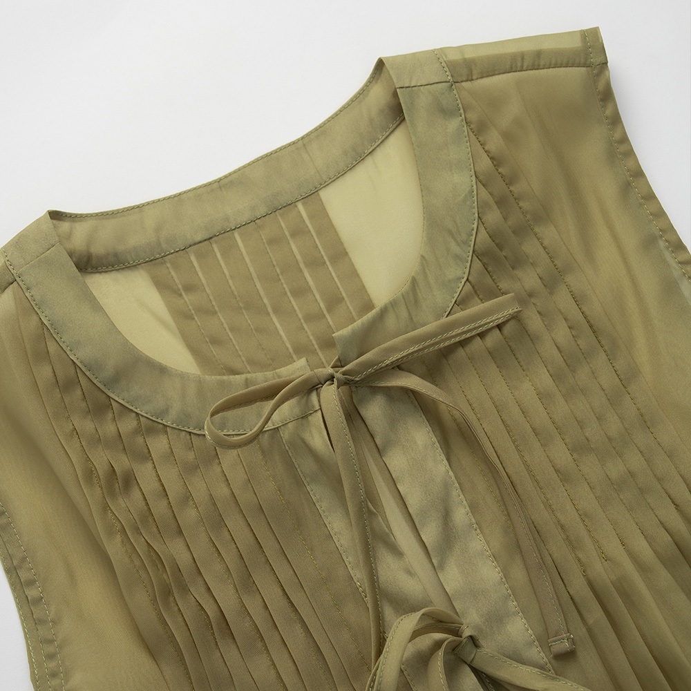QUEENSHOP_ S 女裝 壓褶雙綁帶無袖透膚罩衫上衣 三色售 現+預 【01098996】黑|綠|橘Tanks & CamisolesQUEENSHOP