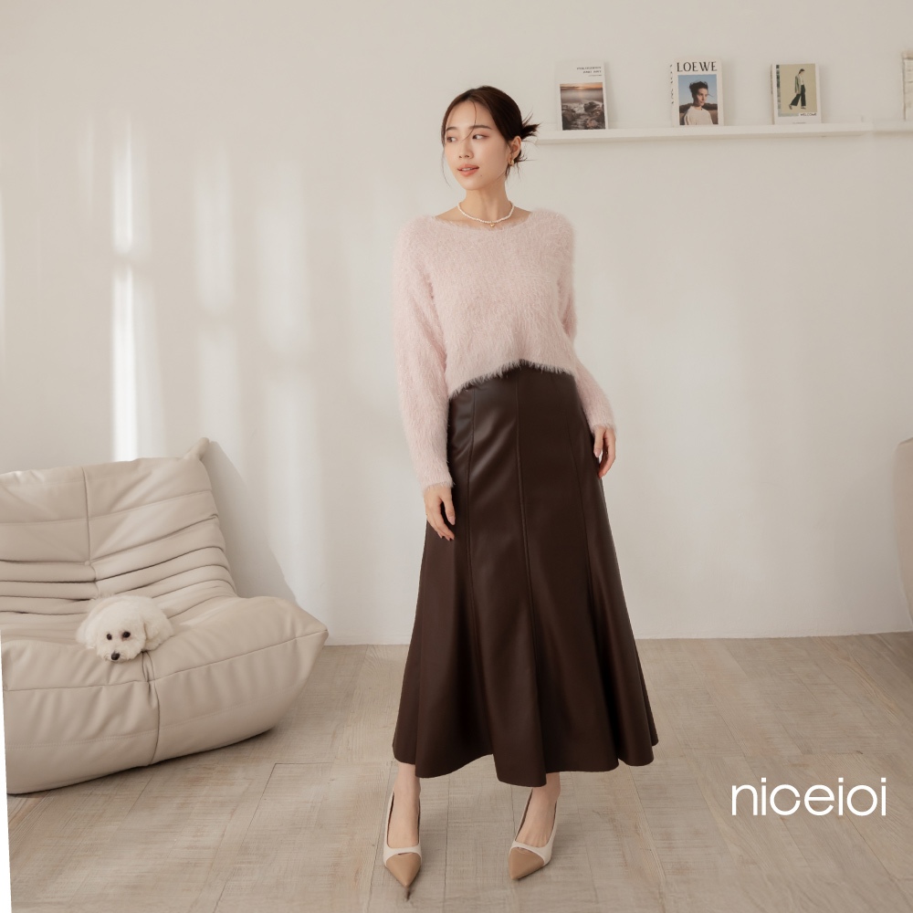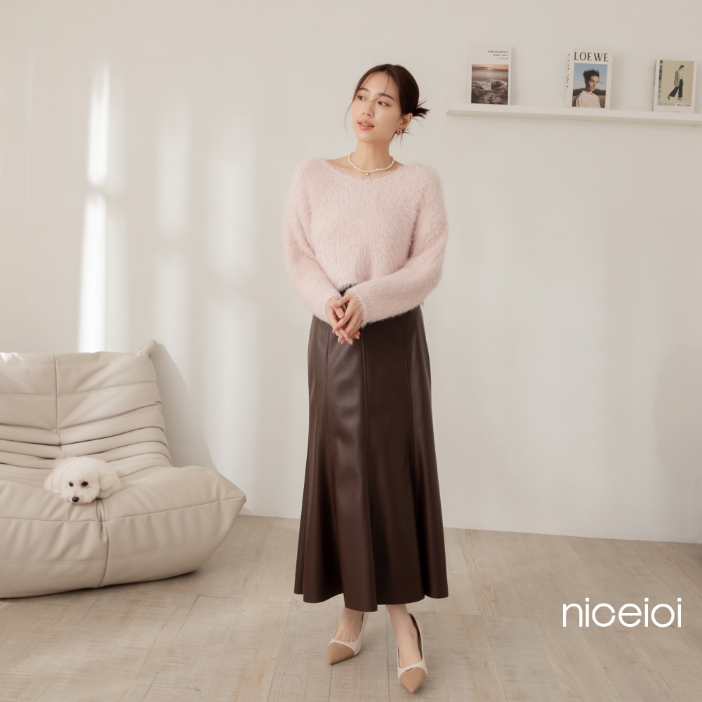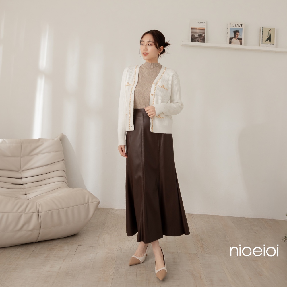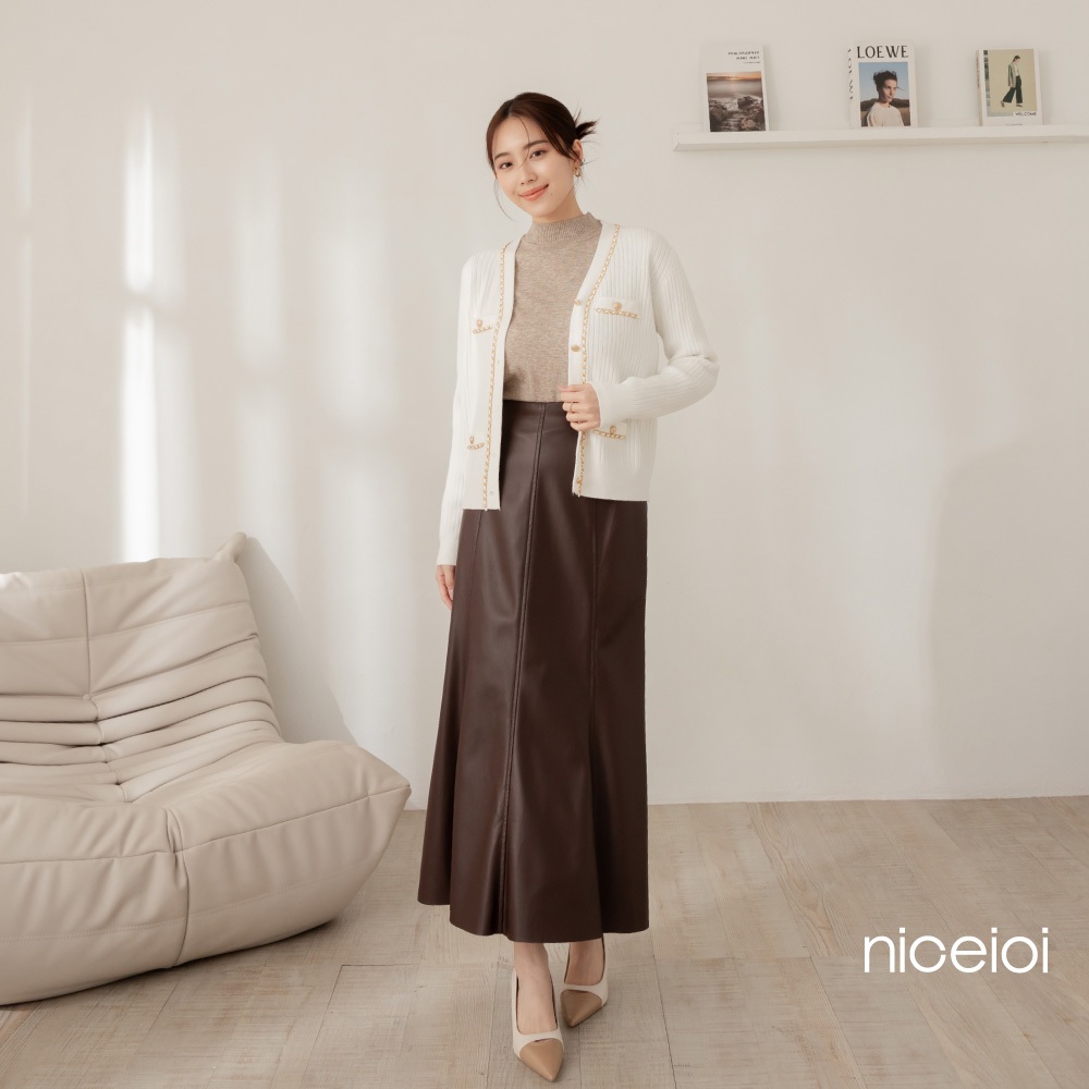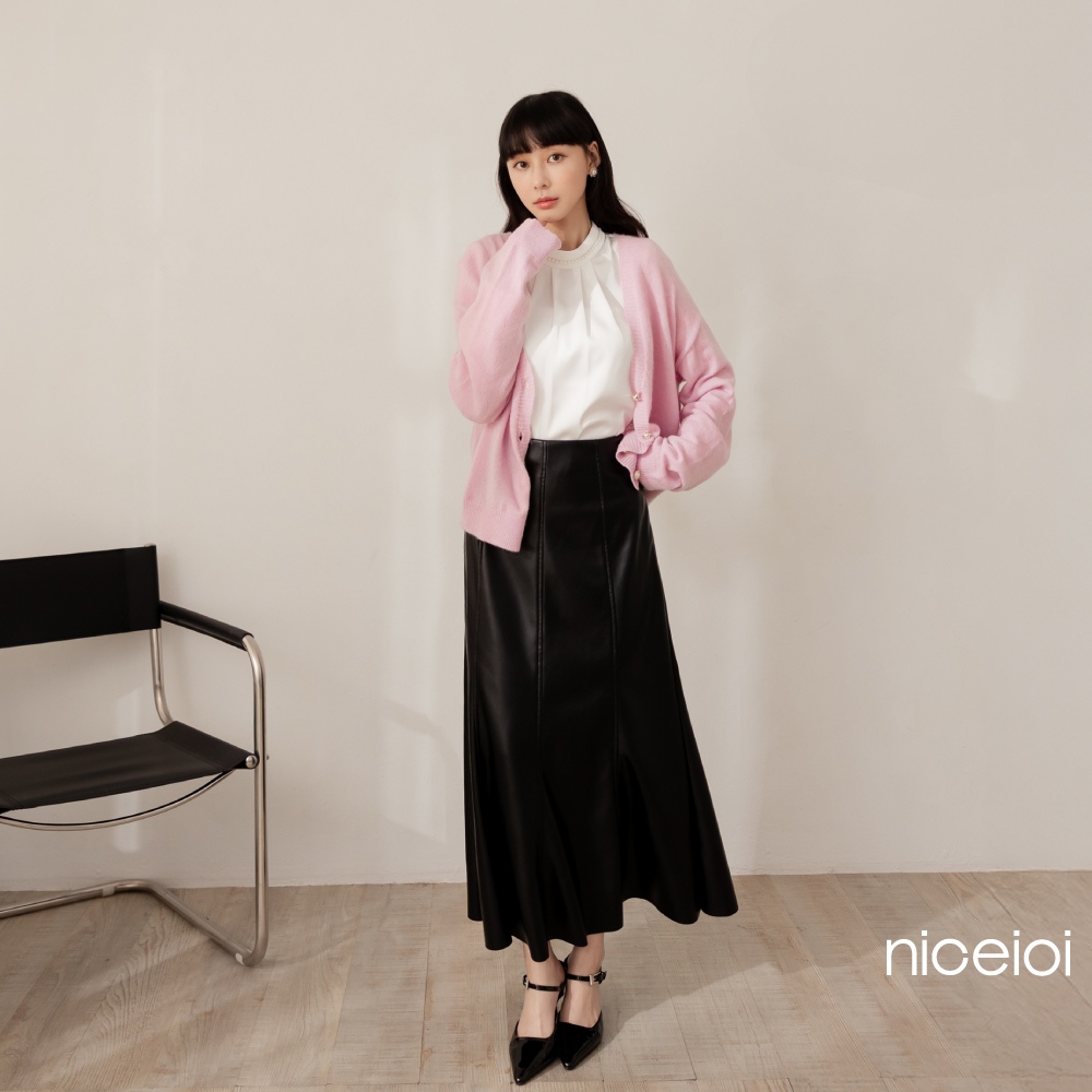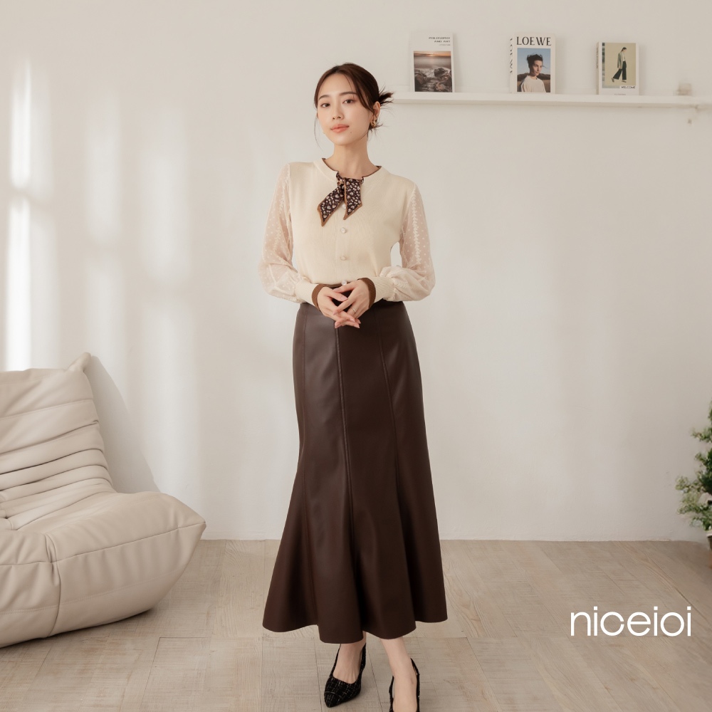 niceioi【特惠】時髦皮革魚尾傘襬長裙 (共2色) 女裝黑,M|黑,L|黑,XL|咖,S|咖,M|咖,L|咖,XL|黑,Sniceioi 官方旗艦店