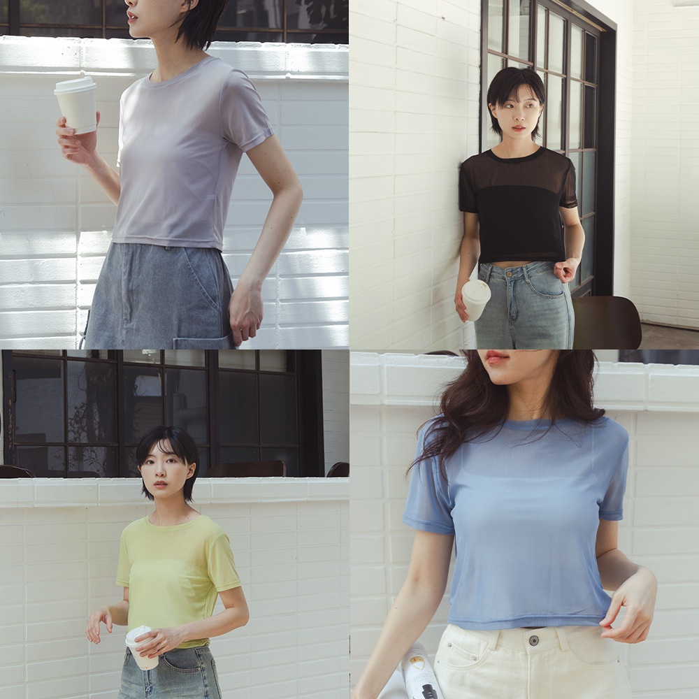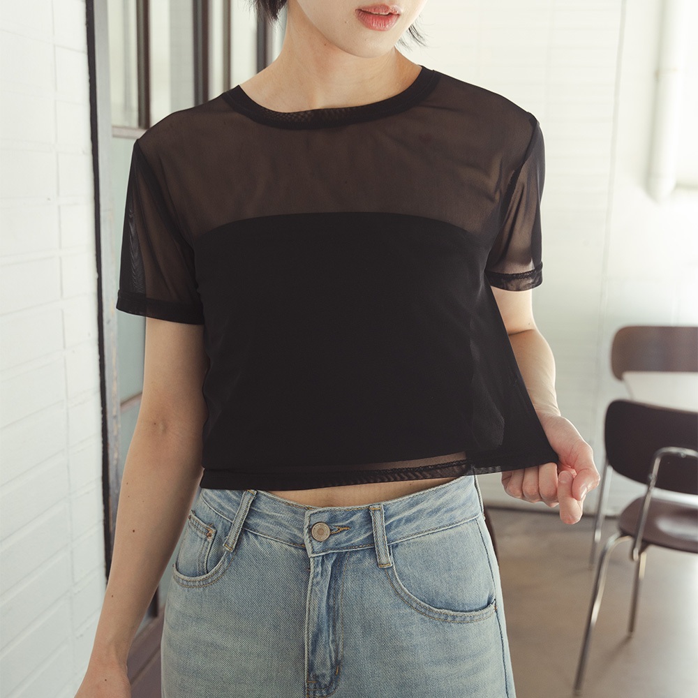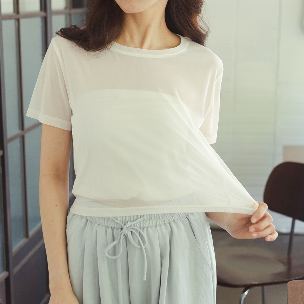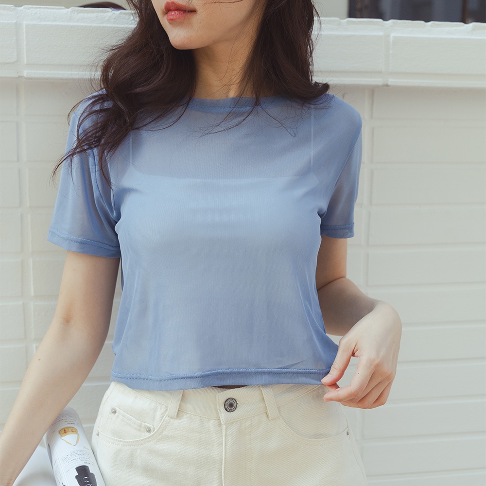 QUEENSHOP_ S 女裝 基本素面透膚短袖上衣 五色售 現+預 【01098836】黑|灰|白|藍|綠OthersQUEENSHOP