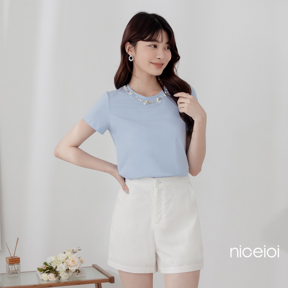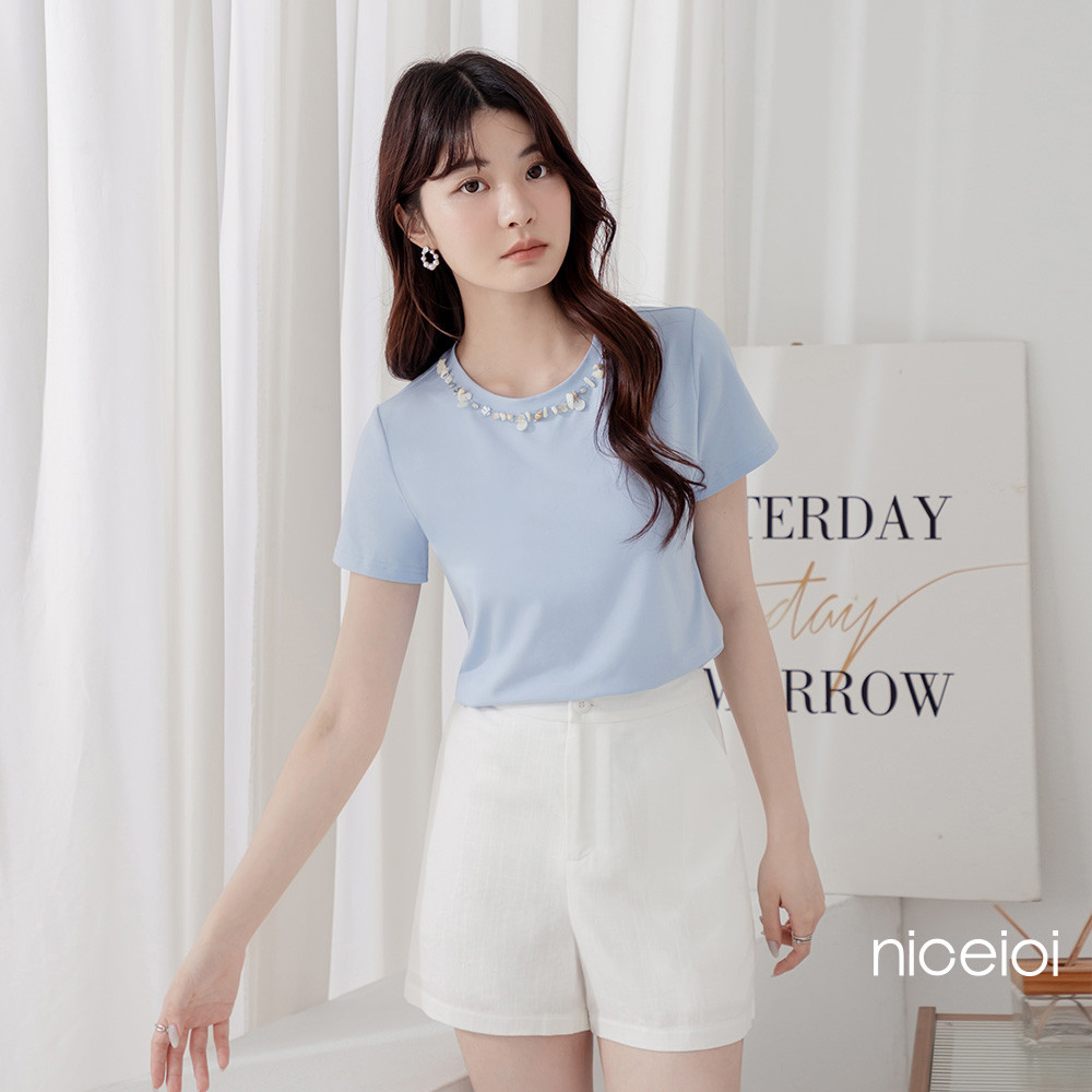 niceioi 涼感上衣 短袖 素t 淺藍色 [浪漫離島貝殼領涼感上衣] (SGS認證) 冰瓷棉 大尺碼上衣 女裝涼感上衣-淺藍,XL|涼感上衣-白,S|涼感上衣-白,M|涼感上衣-白,L|涼感上衣-白,XL|涼感上衣-淺藍,S|涼感上衣-淺藍,M|涼感上衣-淺藍,LT-shirtsniceioi 官方旗艦店