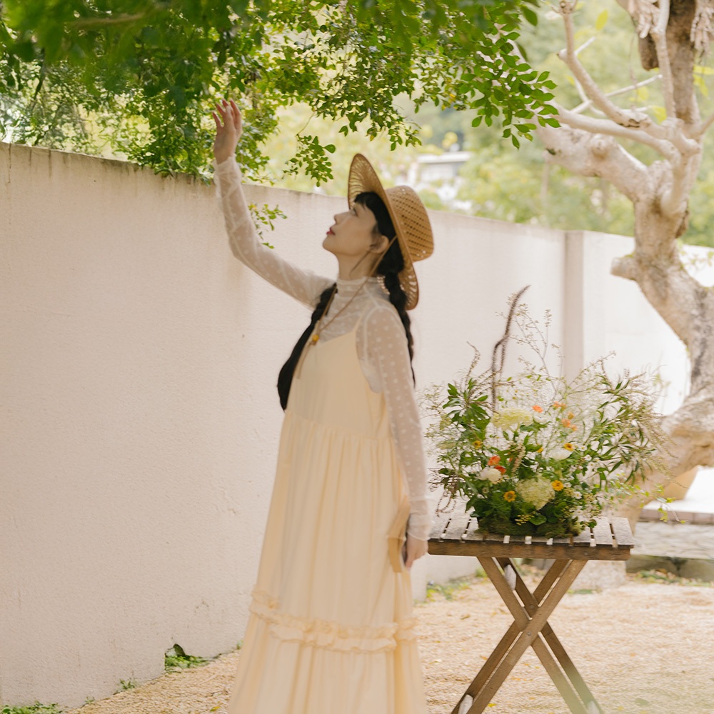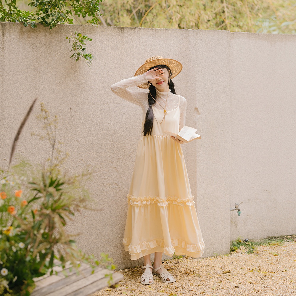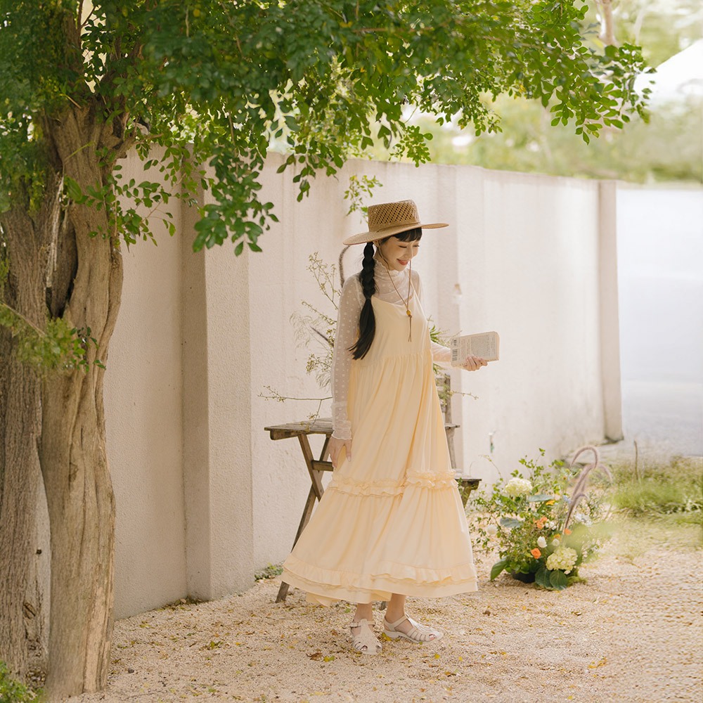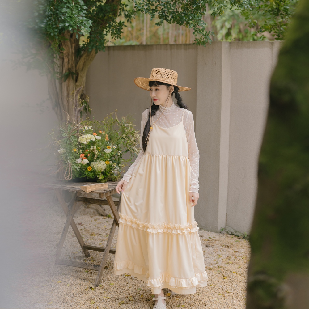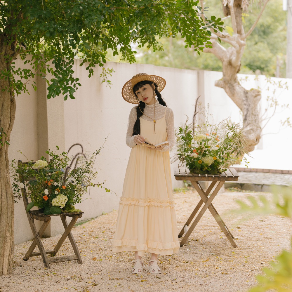 QUEENSHOP_ S 女裝 柏心聯名 蕾絲蛋糕造型細肩長洋裝-黃 S/M 現+預 【01087016】黃S|黃MQUEENSHOP