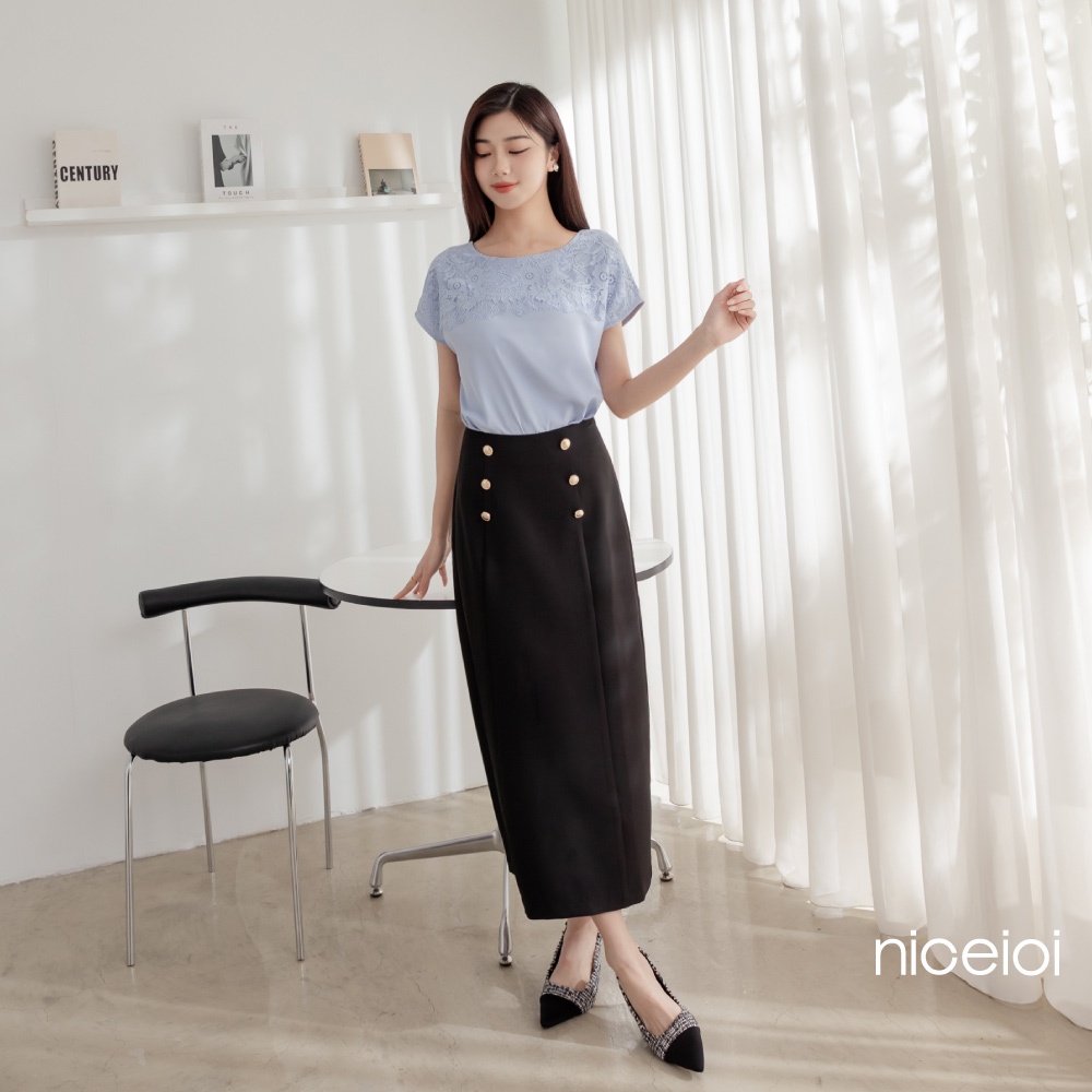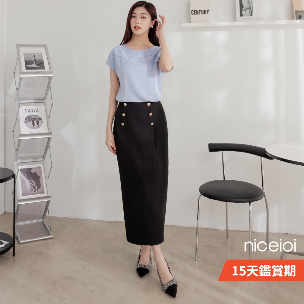 niceioi【特惠】高階主管雙排釦後開衩直筒長裙 女裝黑,S|黑,M|黑,L|黑,XLniceioi 官方旗艦店