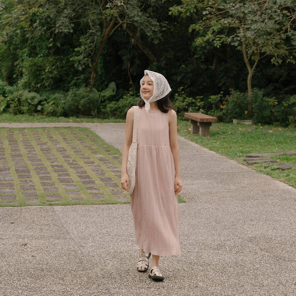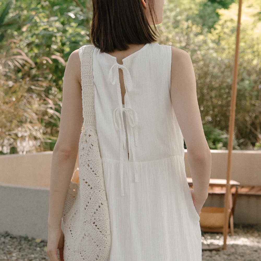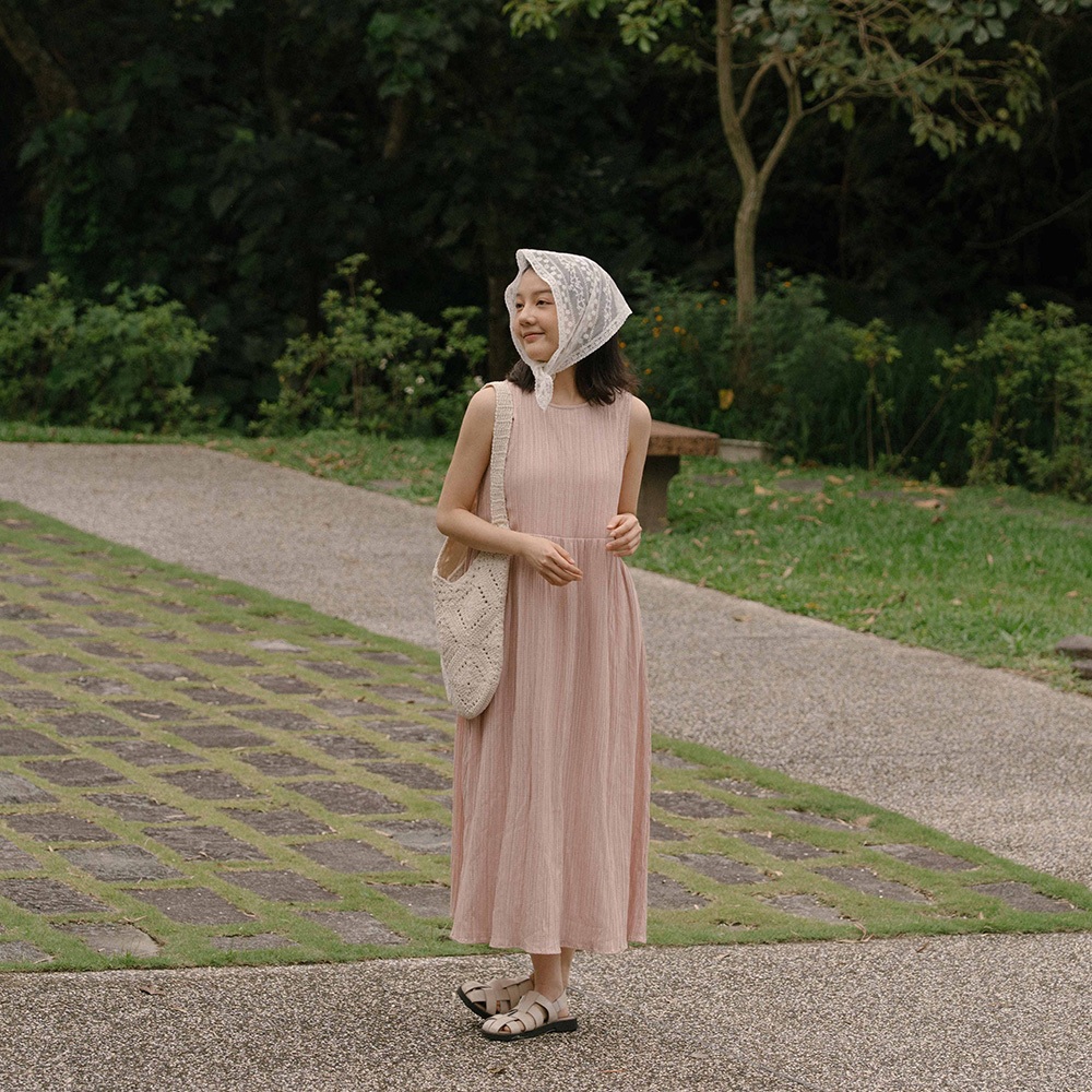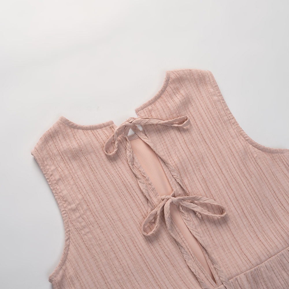 QUEENSHOP_ S 女裝 皺皺直紋後綁帶背心長洋裝 兩色售 現+預 【01087105】粉|米白QUEENSHOP