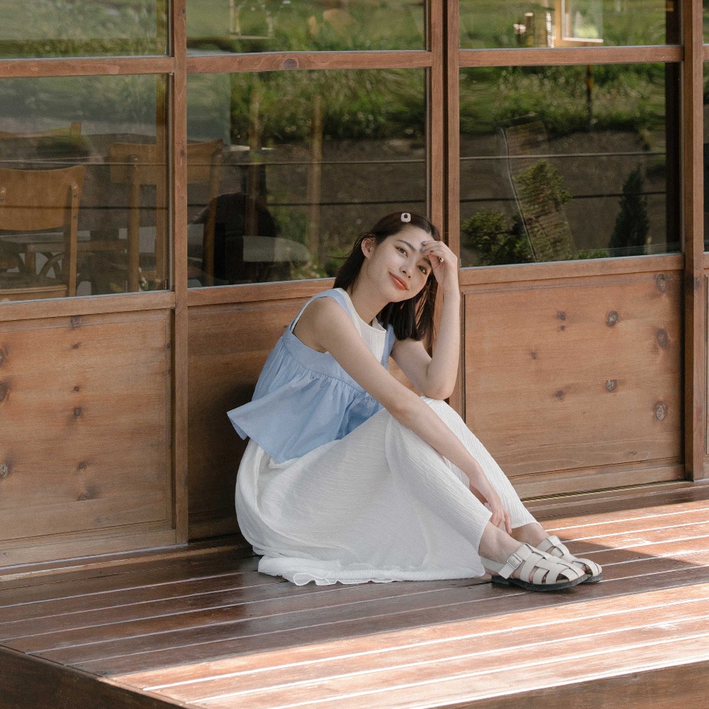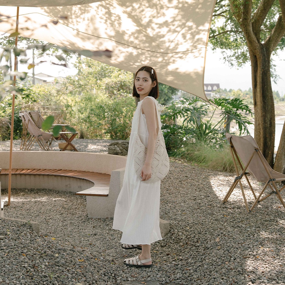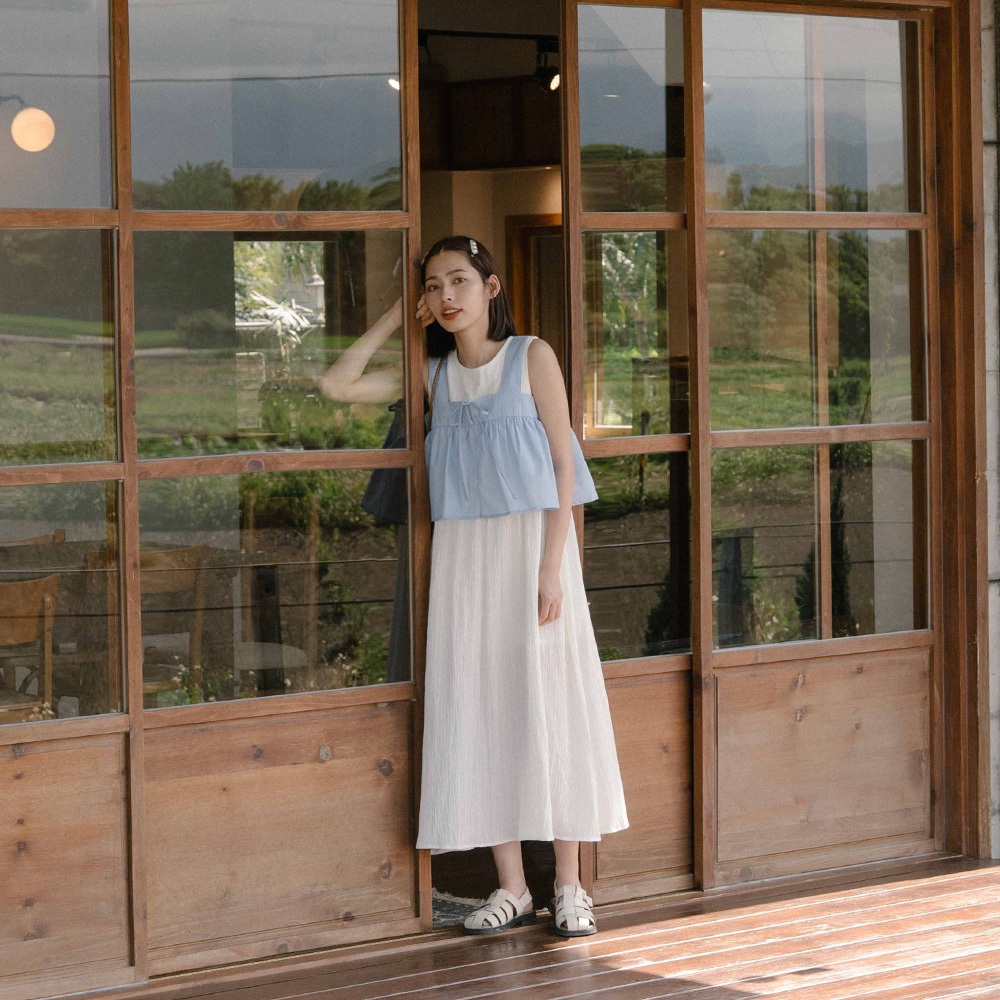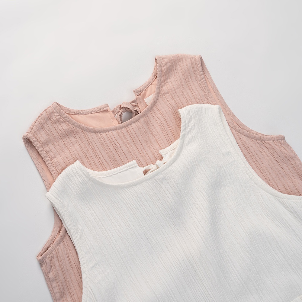 QUEENSHOP_ S 女裝 皺皺直紋後綁帶背心長洋裝 兩色售 現+預 【01087105】粉|米白QUEENSHOP
