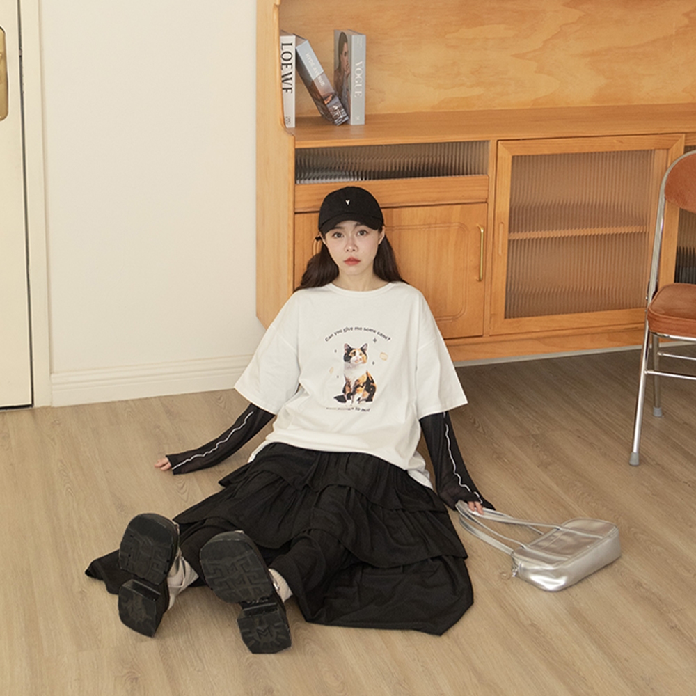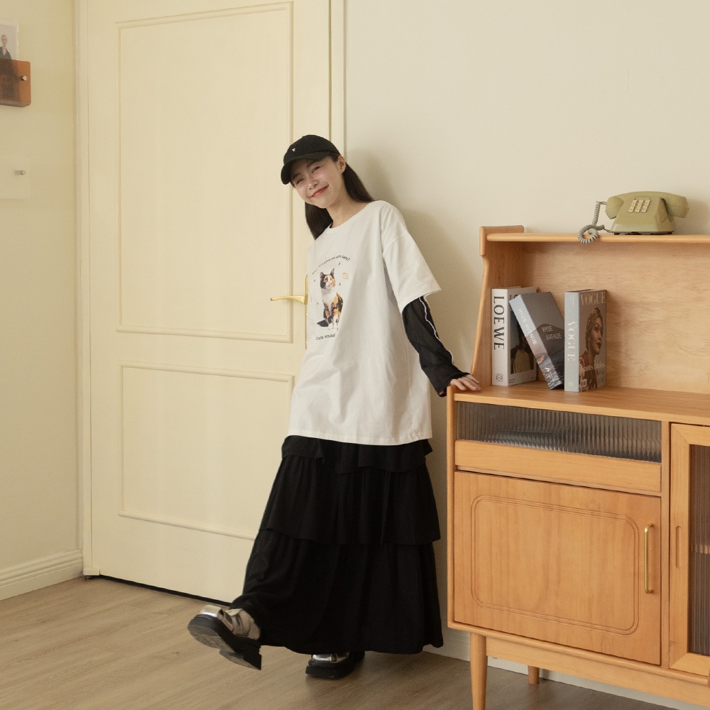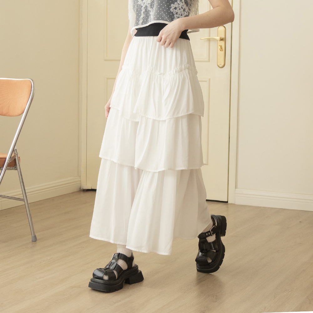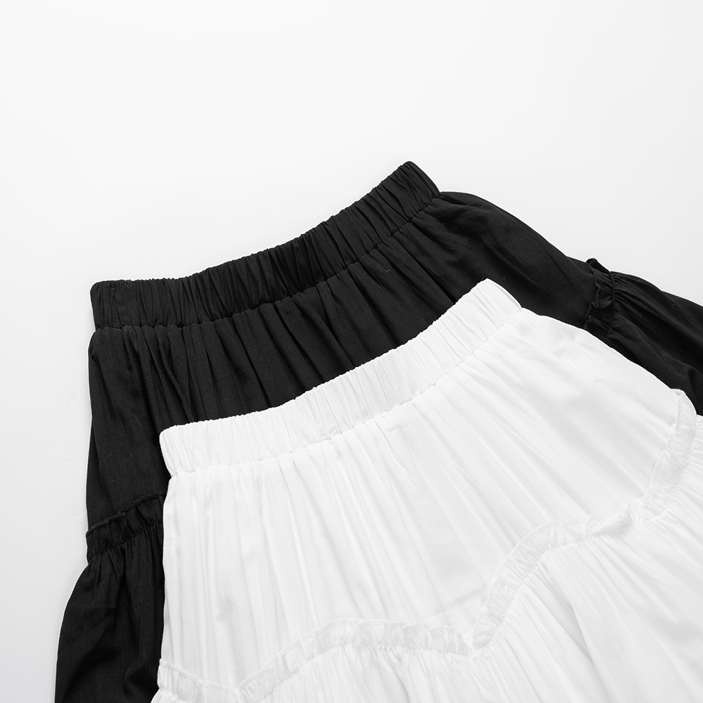 QUEENSHOP_ S 女裝 多層波浪荷葉蛋糕長裙 兩色售 現+預 【03021603】黑|白QUEENSHOP