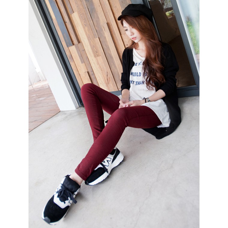 OB嚴選 腰鬆緊輕刷毛彈力窄管色褲 《BA1154》(黑/深咖/駝/暗紅/大紅/橘紅)
