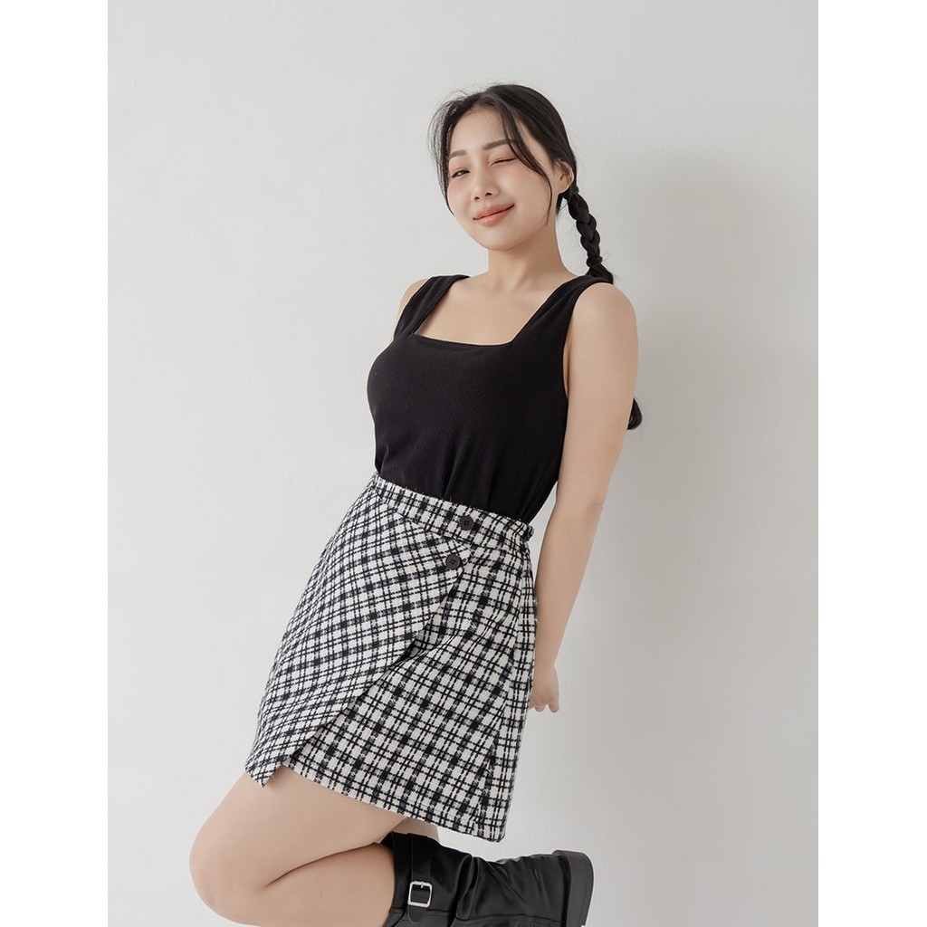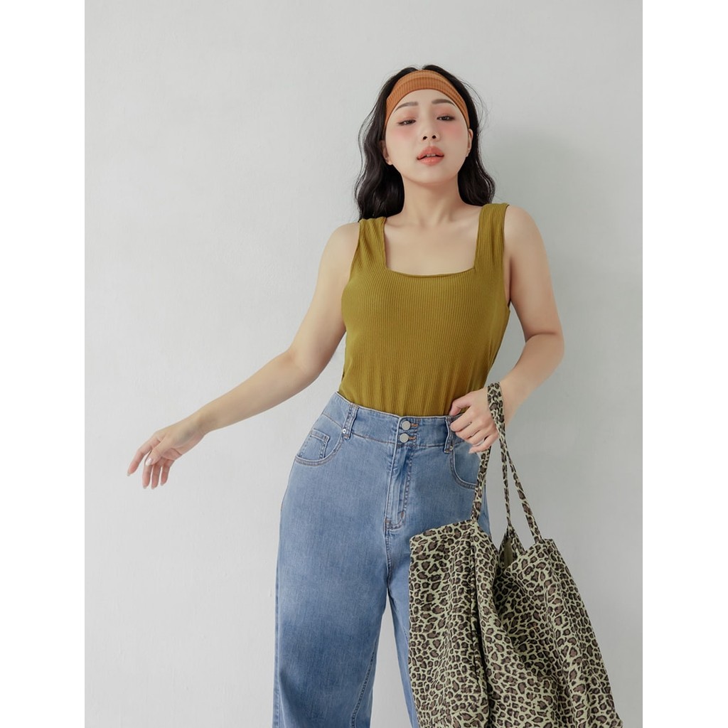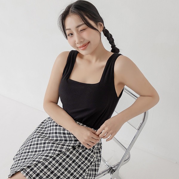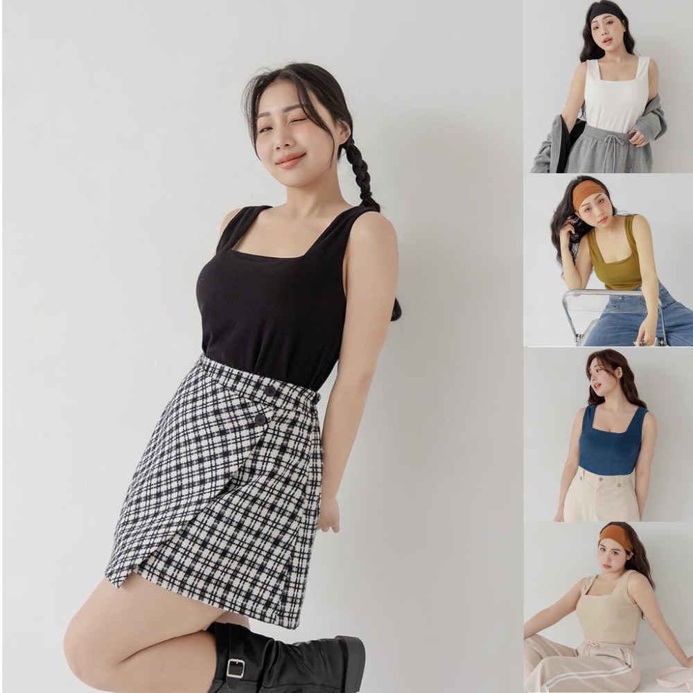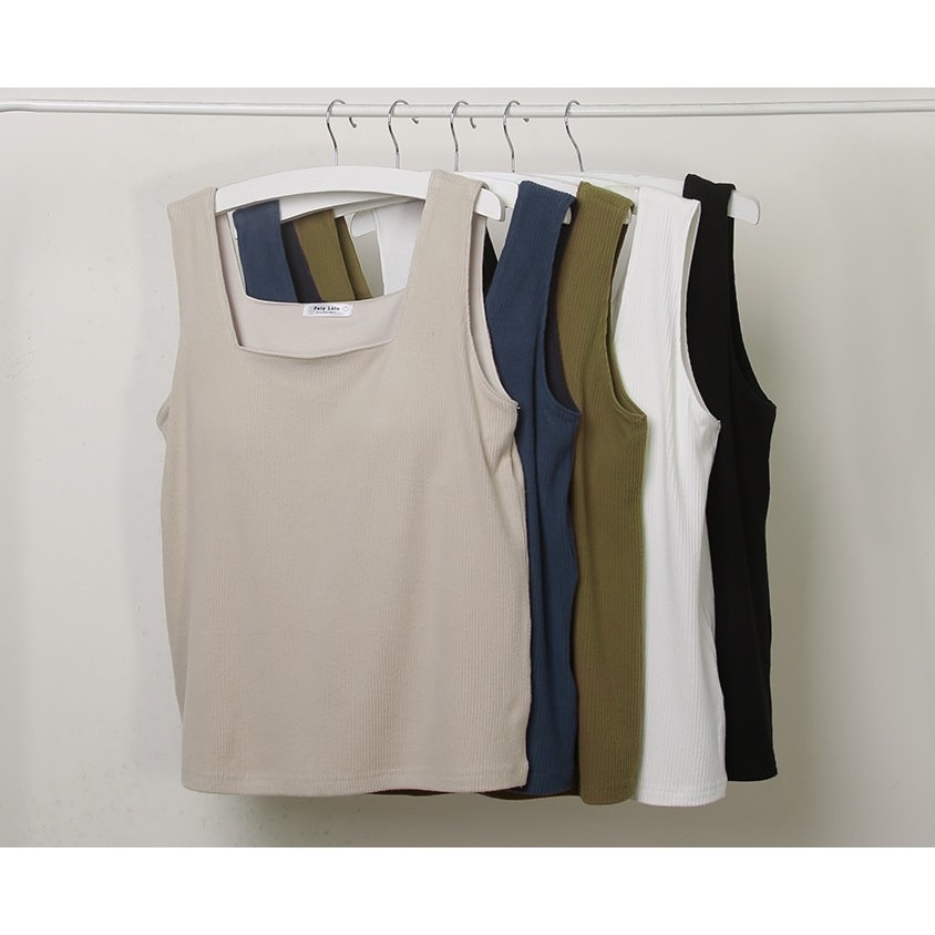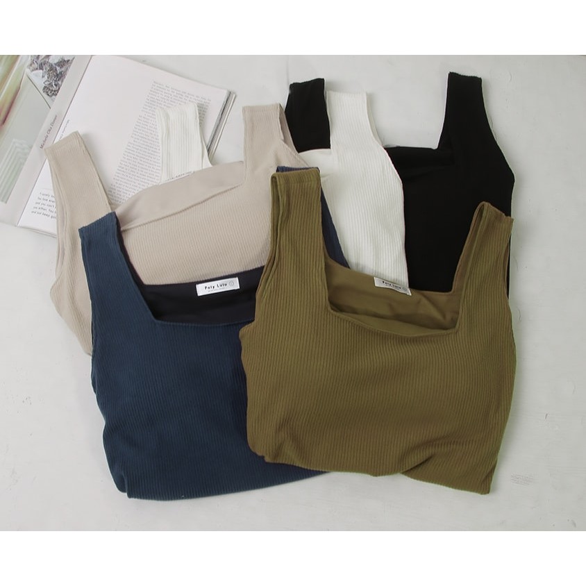 【PolyLulu】 Pobra.多色磨毛坑條方領寬肩背心(附胸墊) 中大尺碼上衣 白/橄欖綠/黑/杏/深藍