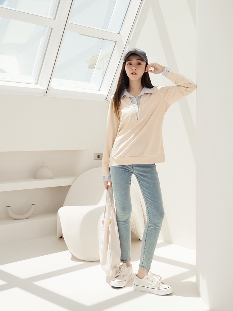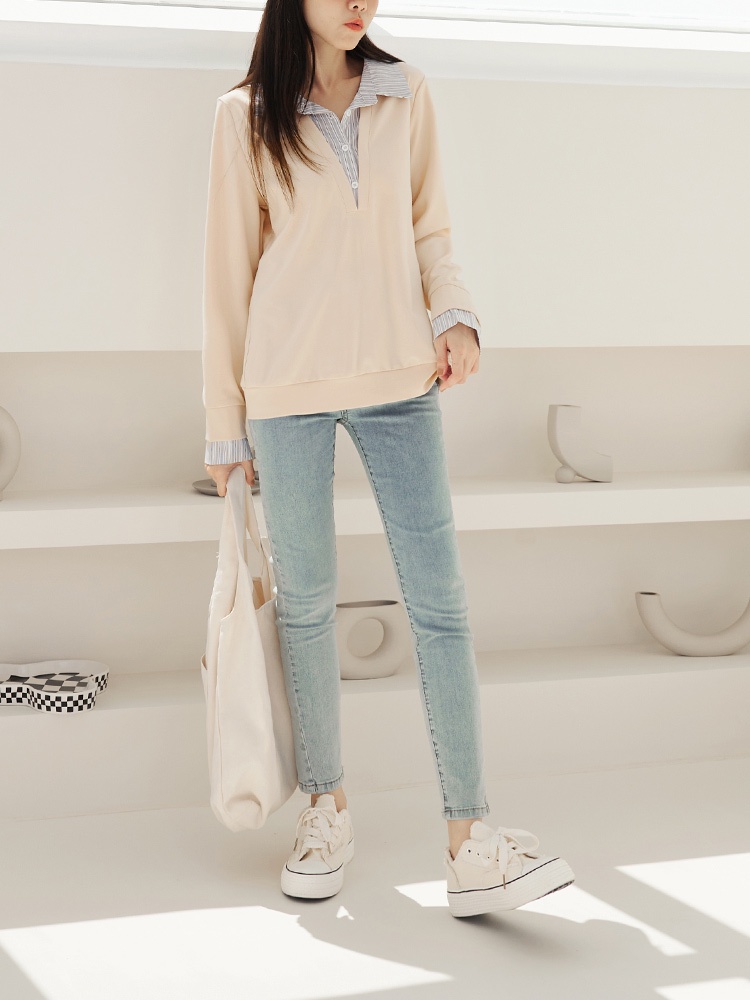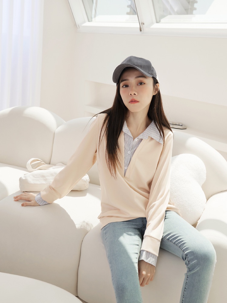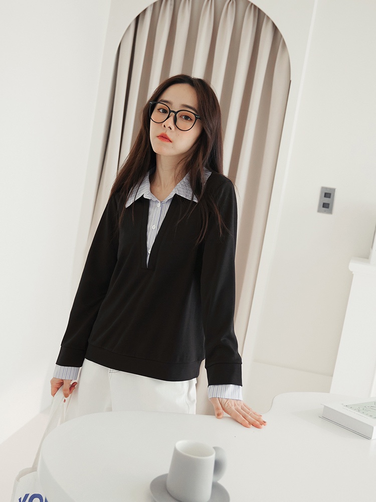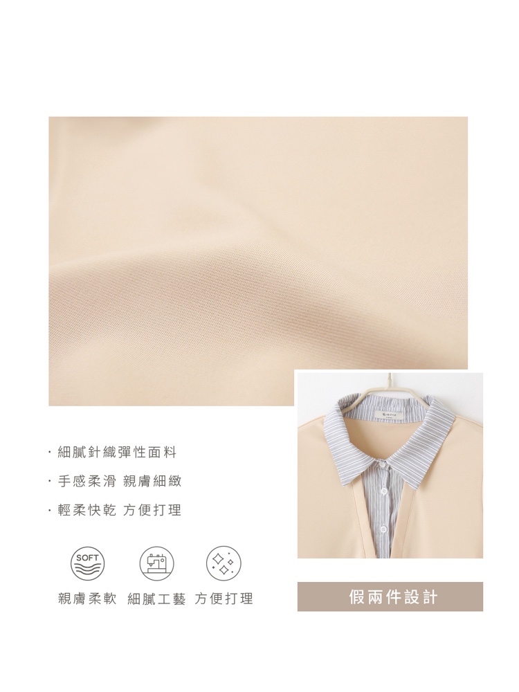 OB嚴選 假兩件針織條紋拼接長袖上衣 《AB18920》大尺碼/現貨/女裝杏,XL|杏,3L|黑,S|黑,M|黑,2L|黑,3L|杏,L|杏,M|杏,2L|黑,L|黑,XL|杏,ST-shirtsOB嚴選官方旗艦店