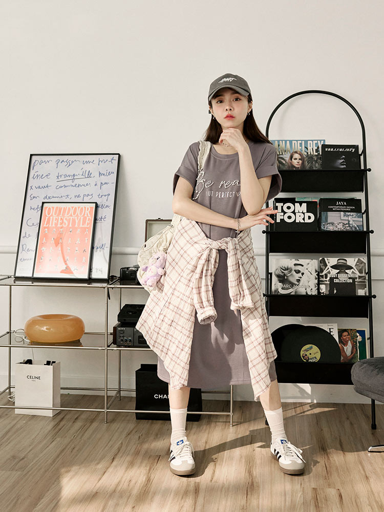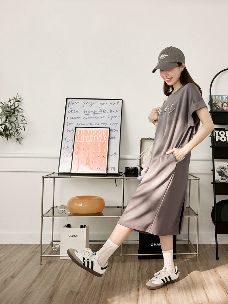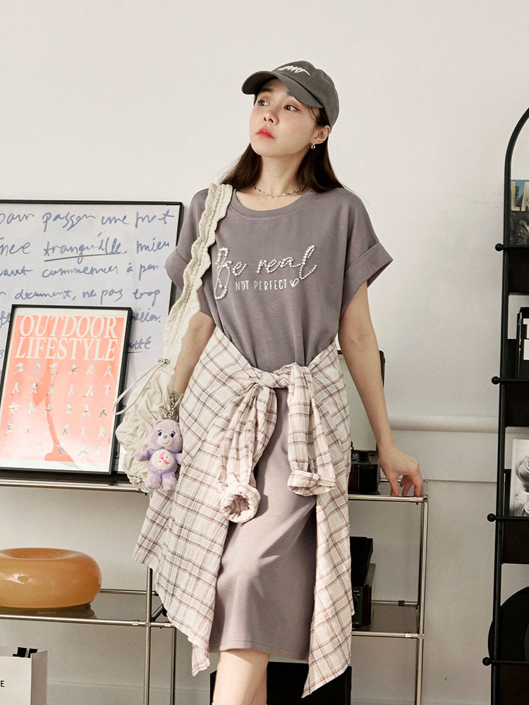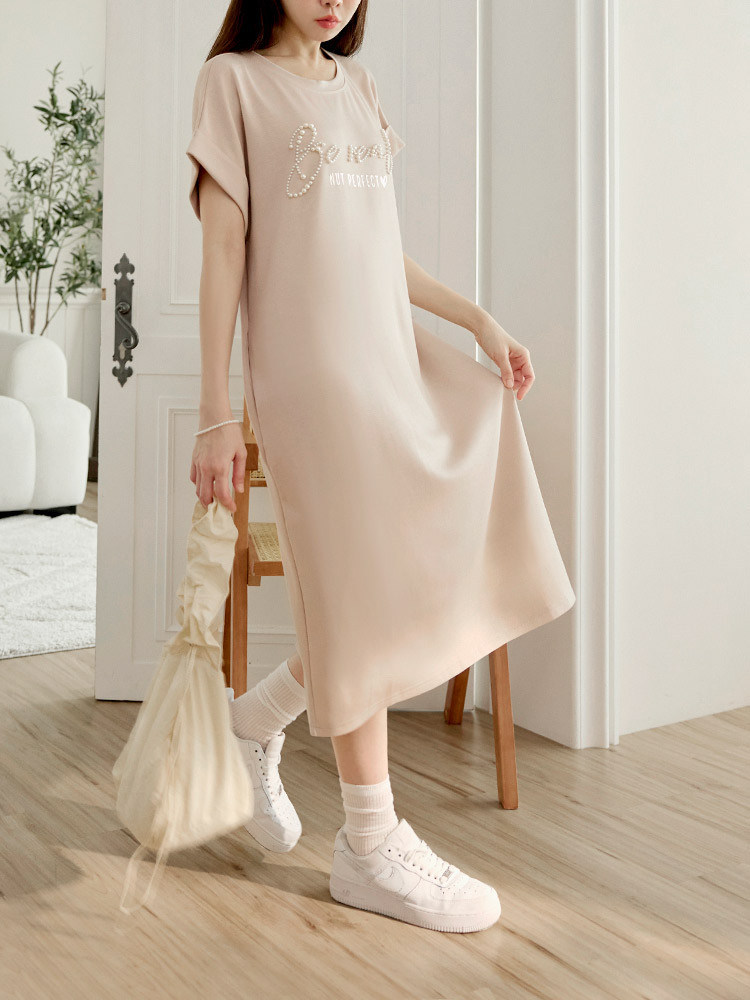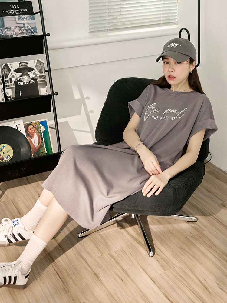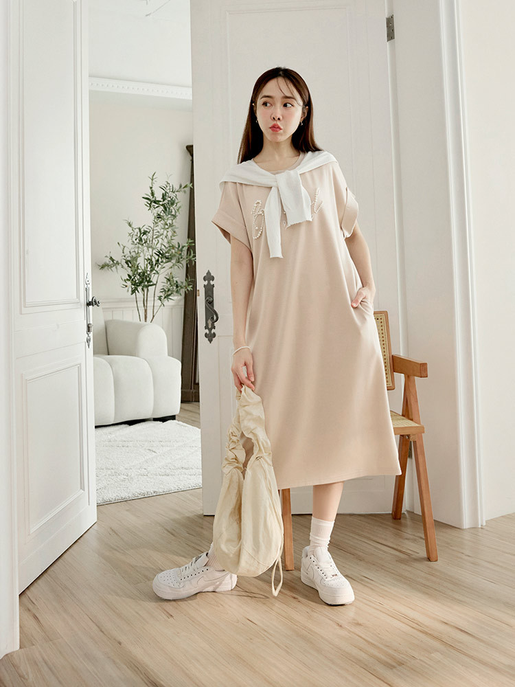 OB嚴選 空氣棉立體串珠字母後開衩短袖洋裝 《DA10555》大象灰,F|大象灰,XL|大象灰,2L|大象灰,3L|杏,F|杏,XL|杏,2L|杏,3LOB嚴選官方旗艦店
