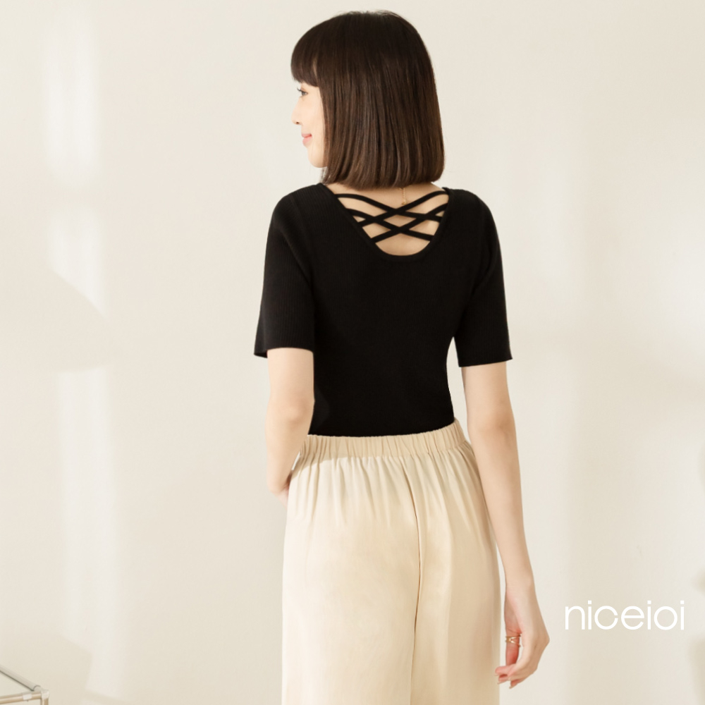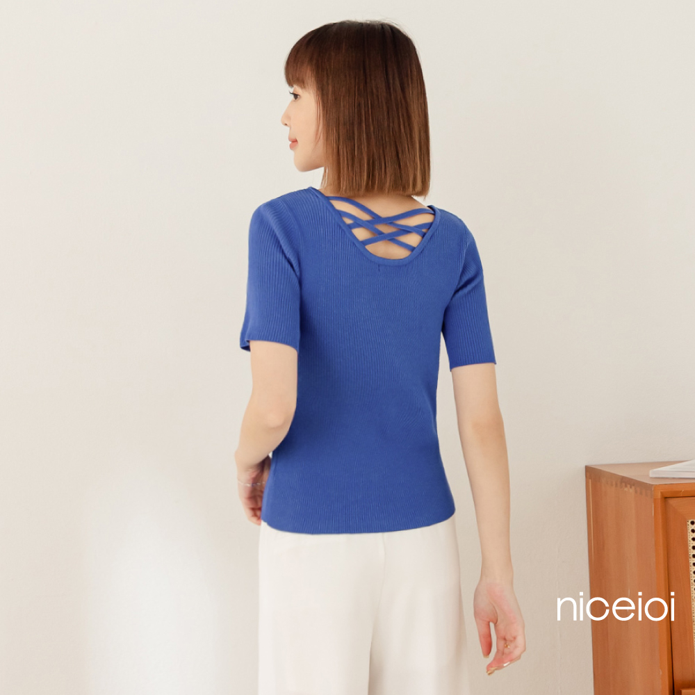 niceioi【特惠】超彈美背坑條紋針織上衣 (共2色) 女裝黑,S|藍,M|藍,L|藍,XL|藍,XS|藍,S|黑,XS|黑,M|黑,L|黑,XLT-shirtsniceioi 官方旗艦店