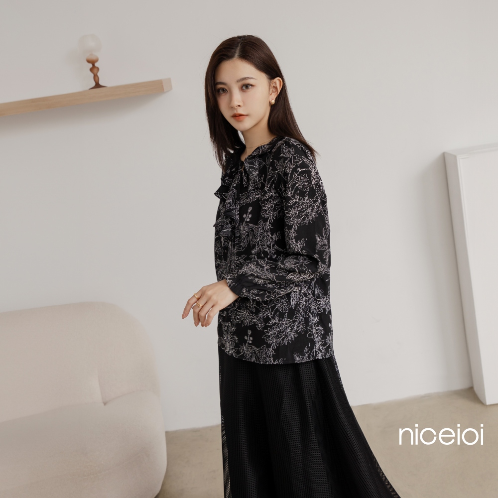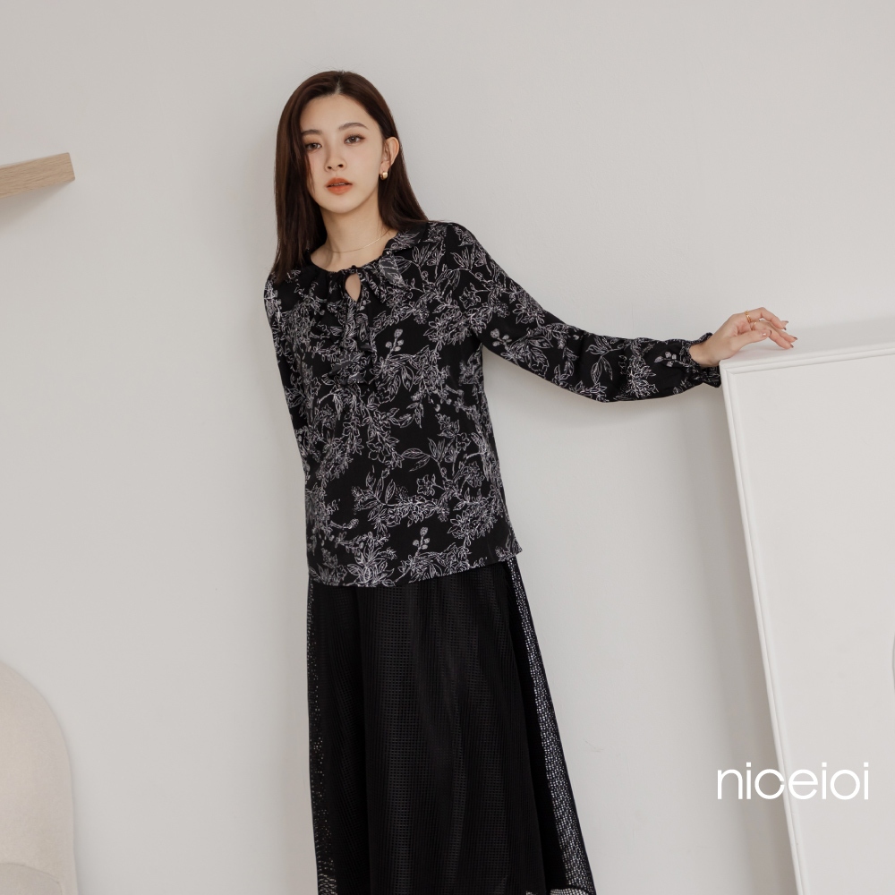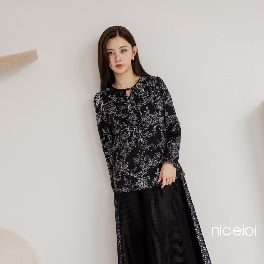 niceioi【特惠】高尚櫻花內加絨荷葉邊綁帶上衣 女裝黑,S|黑,M|黑,L|黑,XLOthersniceioi 官方旗艦店