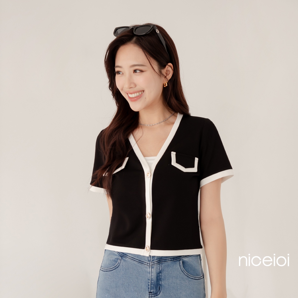 niceioi【特惠】幹練秘書撞色口袋羅馬布上衣 (共3色) 女裝黑,M|黑,L|藍,S|藍,L|藍,XL|白,S|白,M|黑,S|藍,M|白,L|白,XL|黑,XLT-shirtsniceioi 官方旗艦店